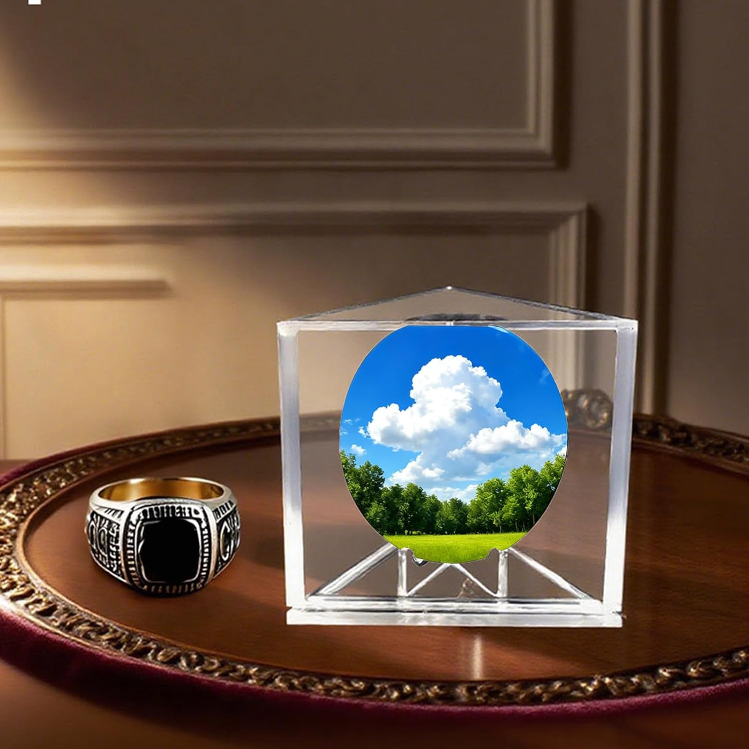 Elevare il display su scrivanie o luoghi di eventi salvaguardando gli oggetti di valore da polvere e danni ambientali Progettato per atleti, allenatori e collezionisti sportivi che cercano una soluzione di archiviazione professionale per anelli da campionato o premi cari Realizzata in acrilico impermeabile resistente al sole, questa vetrina triangolare per anelli da campionato garantisce una protezione a lungo termine per lo sport mentre mostra oggetti da collezione in chiaro chiaro Con scanalature tagliate di precisione, la vetrina acrilica leggera ma resistente offre montaggio e presentazione sicura per anelli o medaglie La sua versatile struttura triangolare funge anche da organizer multifunzionale per monete, chiavi e modelli sportivi in miniatura, mescolando praticità con un'estetica moderna ed elegante
