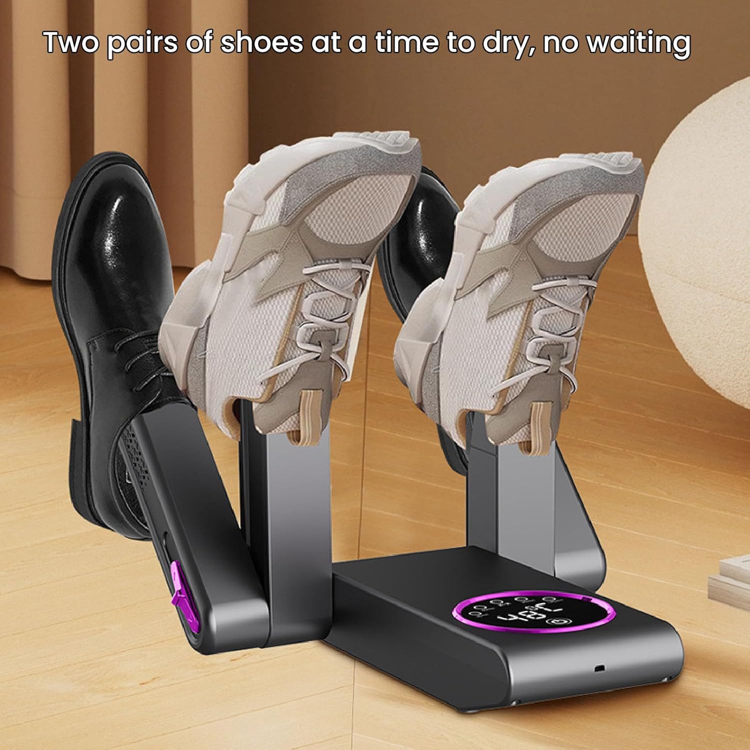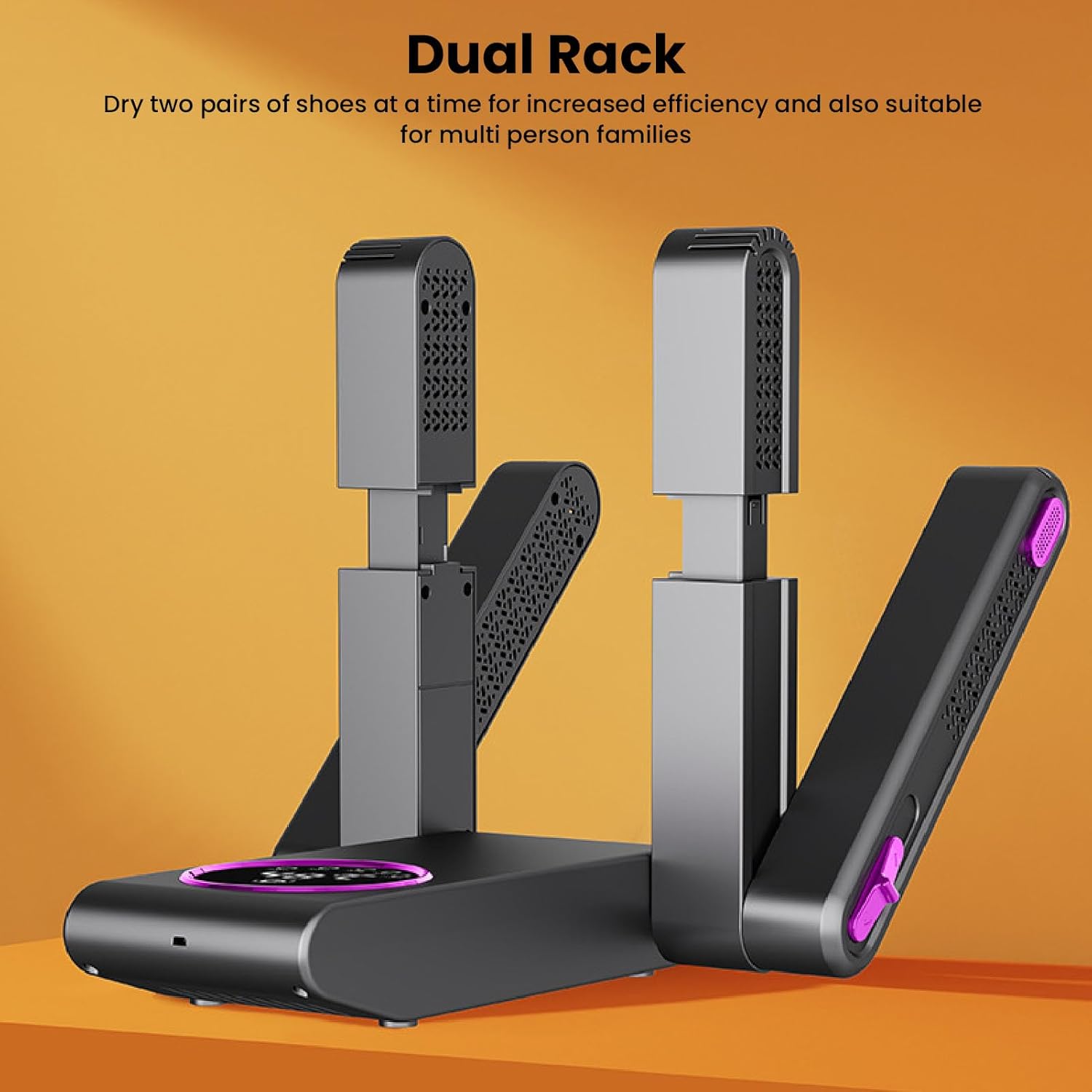 Design a rotazione flessibile: il design di rotazione flessibile consente di regolare gli angoli in base alla forma e alle esigenze di asciugatura delle scarpe, garantendo una distribuzione uniforme del calore per 'essiccazione accurata. Temperatura rapida e costante: con una tecnologia di temperatura costante avanzata, questo asciugacapelli si asciuga rapidamente mantenendo la temperatura stabile, prevenendo danni da calore e fornendo 'ottima protezione per le scarpe. Timer intelligente: il timer incorporato può progettare il tempo di asciugatura secondo necessità per evitare danni alle scarpe causate dall'essiccazione troppo a lungo, garantendo la sicurezza e la tranquillità. Portable e pieghevole: il design leggero e portatile è facile da conservare e trasportare, adatto per viaggiare, attività all'aperto o uso domestico, consentendo di asciugare le scarpe sempre e ovunque. Rapidamente ed efficiente: il design unico a doppio braccio consente di asciugare 2 paia di scarpe contemporaneamente, migliorando significativamente l'efficienza di asciugatura e risparmiando tempo per scarpe asciutte veloci e confortevoli.
