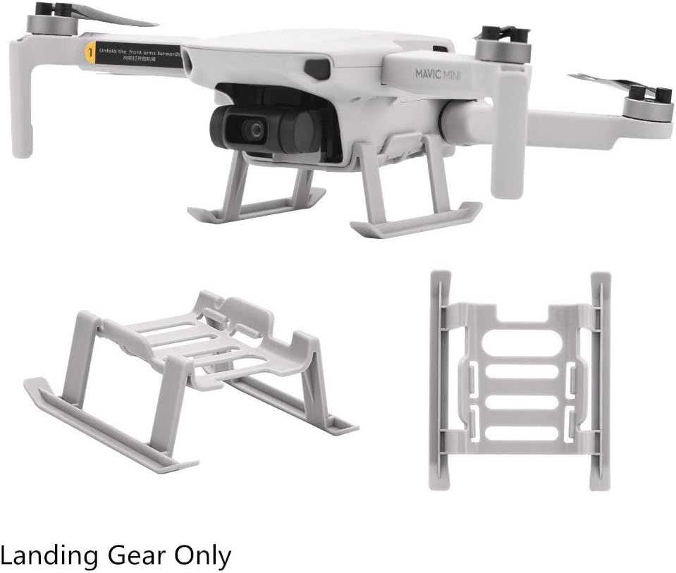 Durante il decollo e l'atterraggio, previene efficacemente i detriti del terreno e altri danni al corpo o alla telecamera PTZ. Questo carrello di atterraggio può effettivamente aumentare l'altezza di 2,2 cm e ridurre la forza d'impatto del corpo e della batteria del Mavic Mini al suolo. Materiale: ABS. Resistente e leggero, non peserà troppo il drone; Facile da rimuovere e installare. Colore: grigio. Dimensioni: 7,1 x 8,7 x 3,2 cm. Peso netto: 9,4 g.