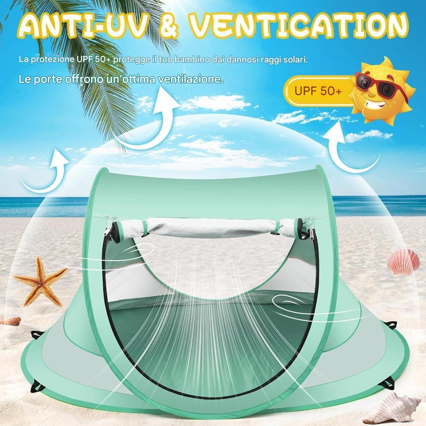 Montaggio semplice e veloce: Grazie al telaio elastico a sgancio rapido, questa da spiaggia per bambini si monta in pochi secondi e si sposta senza sforzo da interno a esterno, ideale come temporaneo per ogni occasione Stabilità Immediata: Montaggio veloce combinato con componenti anti-e struttura rinforzata assicurano prestazioni affidabili in scenari outdoor diversi, mantenendo compattezza nella borsa inclusa. Schermo Solare Ottimale: Grazie a UPF 50+ e schermo solare ad alta densità, assicura la massima difesa creando una barriera UV che blocca la luce solare diretta per la sicurezza della pelle sensibile Materiale Premium: ventilazione 360 regola temperatura efficientemente, ottimizza circolazione aria creando ambiente confortevole e protetto per bambini, esclude insetti e irritanti con tessuto delicato sulla pelle Portabilità Ottimale: Realizzata per praticità, questa da spiaggia leggera si ripiega in un profilo ultrasottile, consentendo ai genitori di trasportarla facilmente in qualsiasi borsa e allestire un'area di gioco spaziosa per bambini ovunque vadano