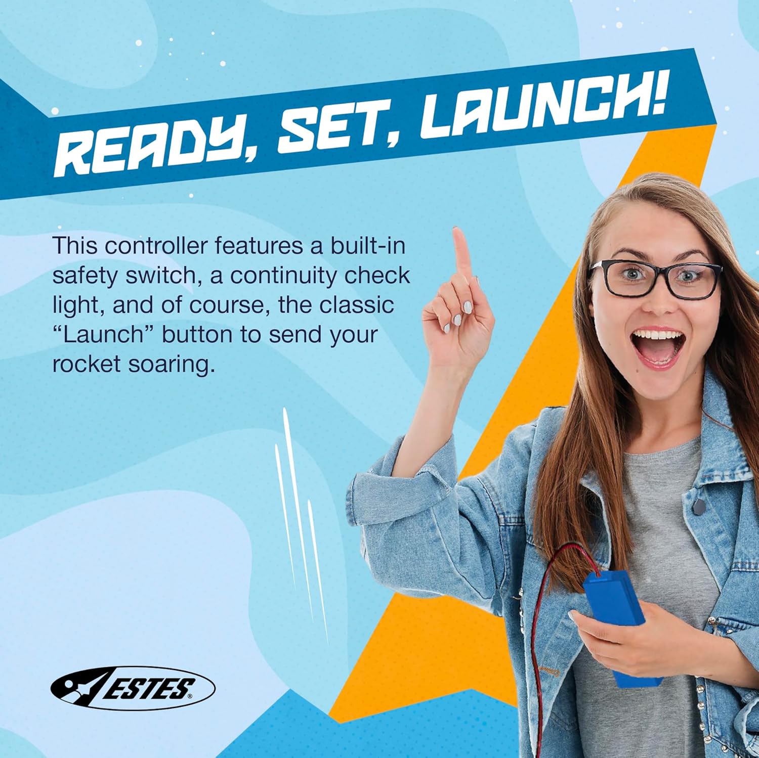 Controller di lancio per razzi alimentati a E Viene fornito completamente cablato. Include una chiave di sicurezza e 30 ' di cavo Batterie Aa necessarie per il controller La supervisione di un adulto è consigliata per chiunque sotto i 18 anni.