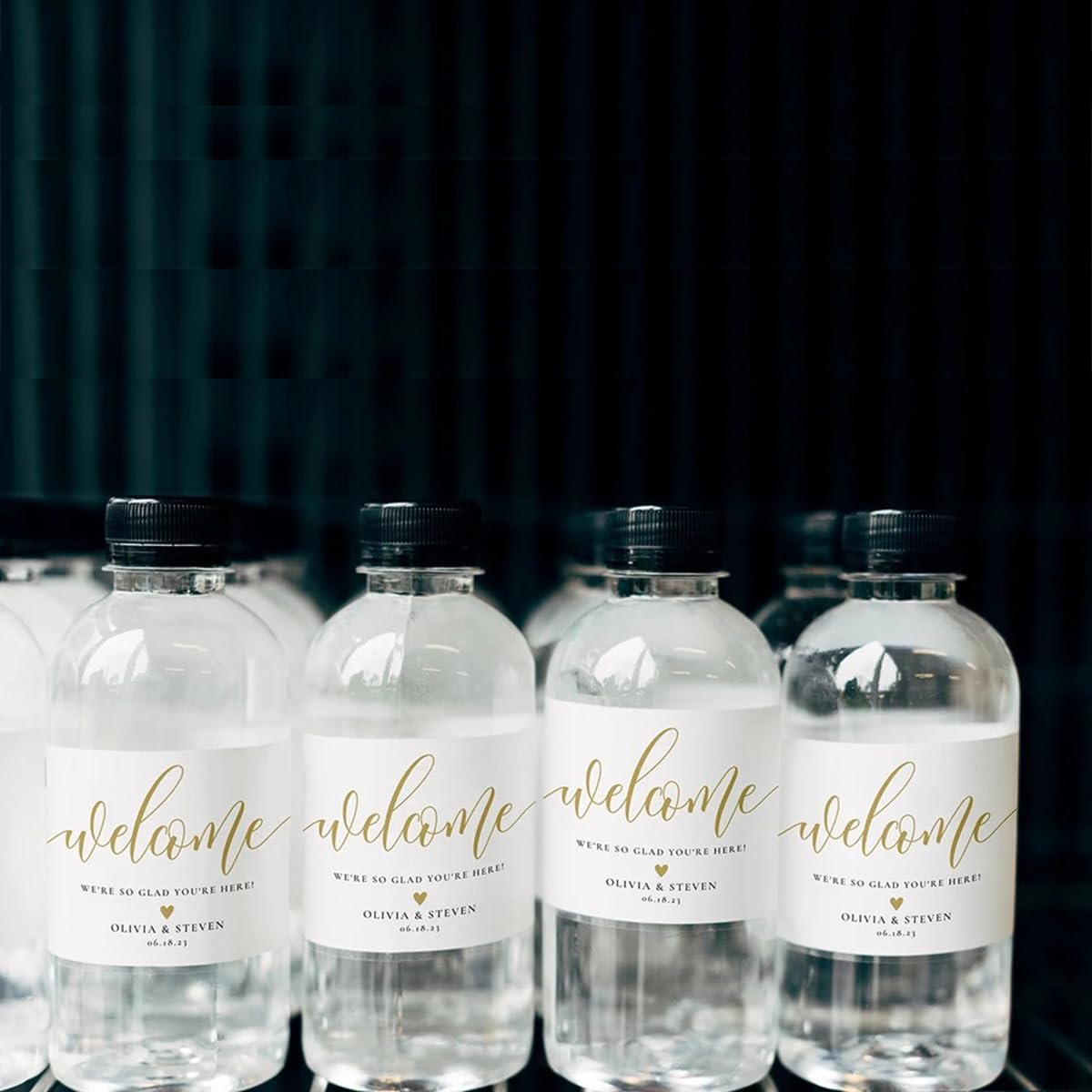 Etichette personalizzate per bottiglie d'acqua perfette per matrimoni, compleanni e addio al nubilato Adesivi impermeabili e resistenti, ideali per l'uso quotidiano Personalizza con nomi, date o loghi per un tocco unico Ideale come regalo di ringraziamento per feste o decorazioni per matrimoni Facile da applicare e rimuovere senza lasciare residui