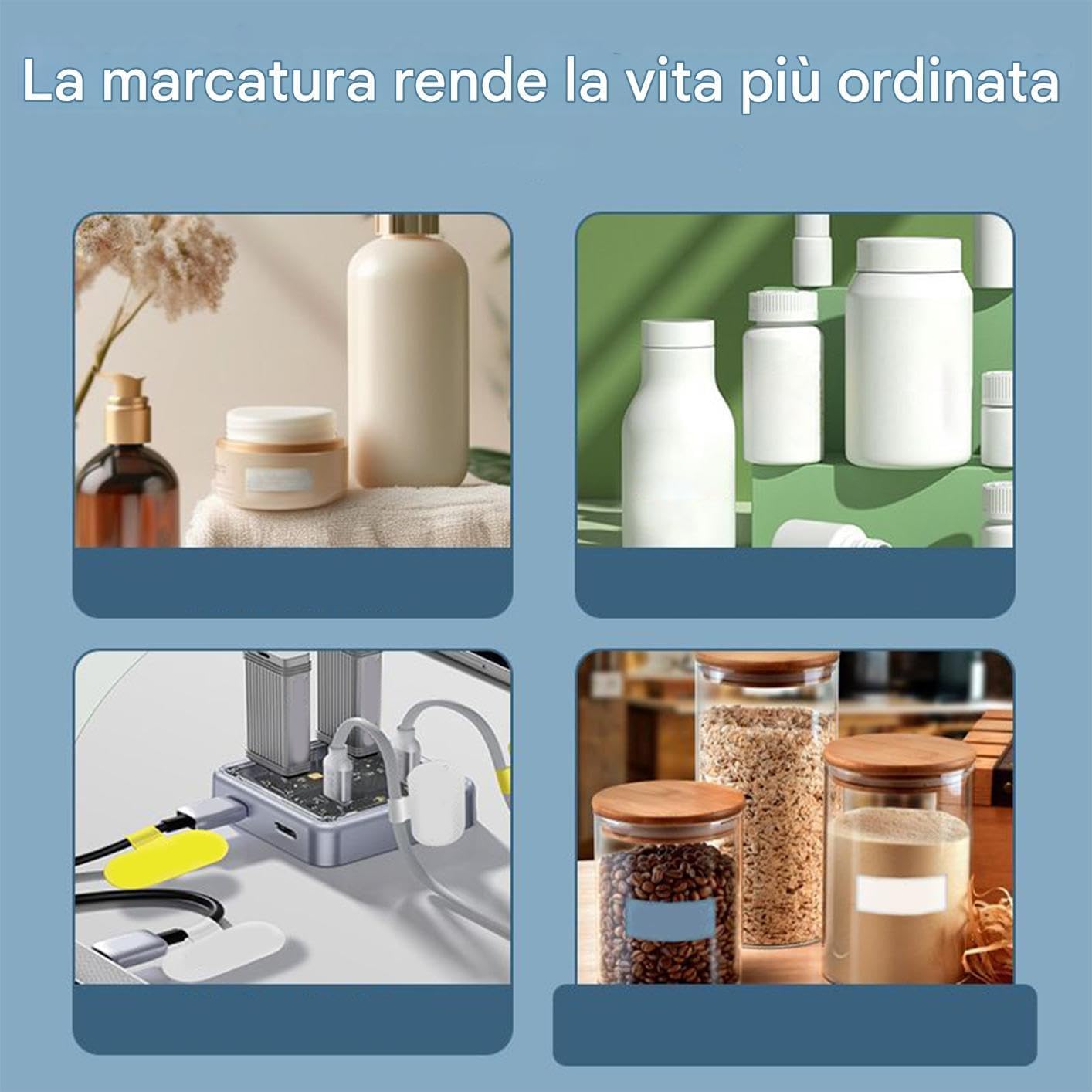 Stampa di etichette senza inchiostro: la stampante per etichette è dotata di un modulo di stampa termica integrato che utilizza la tecnologia termica senza inchiostro, garantendo l'imaging diretto attraverso i cambiamenti di temperatura per stampe uniformi e chiare eliminando la necessità di sostituzioni disordinate 'inchiostro Creazione versatile di etichette: dotata di un chip di elaborazione dati intelligente, la macchina etichettatrice con nastro garantisce una rapida produzione di etichette in diversi formati, supportando ambienti frenetici come i reparti di spedizione o la pianificazione di eventi fornendo una stampa efficiente Portabilità senza sforzo: caratterizzata da un fattore di forma compatto e leggero, questa stampante per etichette di spedizione si inserisce comodamente in una borsa, offrendo una comodità senza pari durante il trasporto da un luogo all'altro; la sua capacità di occupare spazio minimo migliora l'efficienza del flusso di lavoro Ampia applicazione: con la stampante per etichette per piccole imprese, gli utenti possono contrassegnare i prodotti in modo distinto, garantendo una corretta identificazione che aiuta i processi di smistamento logistico e riduce al minimo gli errori nelle impostazioni operative ad alto volume Accoppiamento wireless semplice: l'etichettatrice è dotata di tecnologia wireless che consente l'accoppiamento semplice con dispositivi intelligenti, consentendo la modifica e la stampa istantanea di etichette per studi domestici o piccole imprese per modernizzare le attività 'organizzazione in modo efficiente
