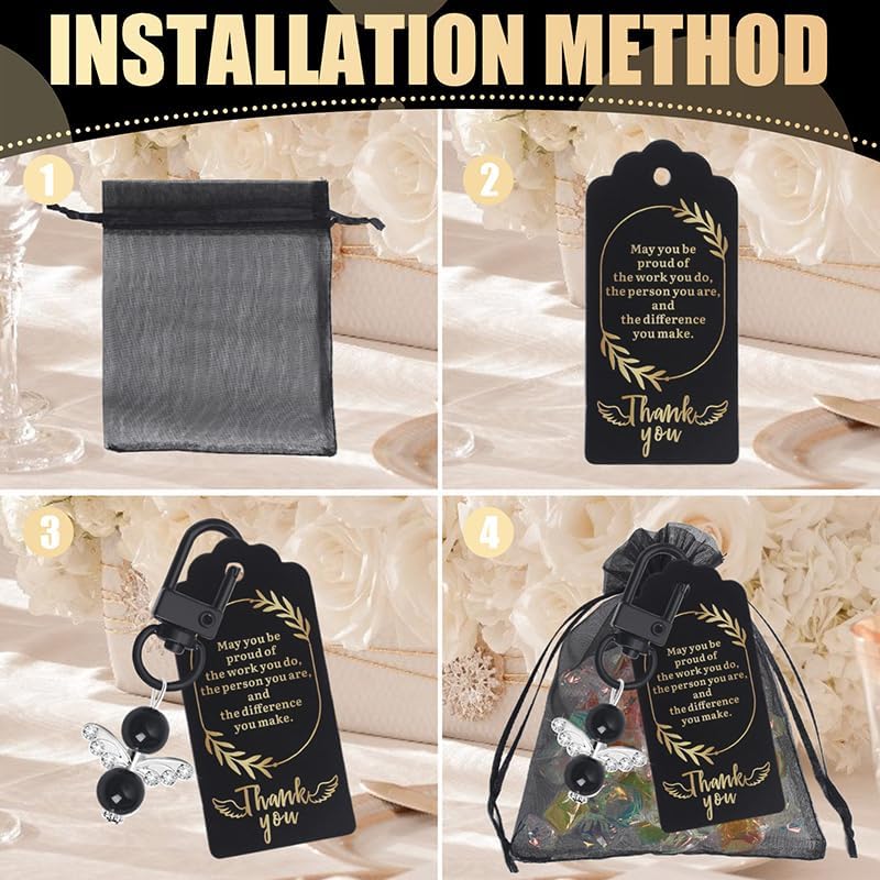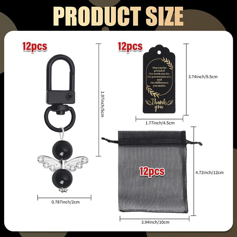 1. Set di ciondoli angelo custode: include 12 ciondoli angelo custode, 12 catenelle di carta e 12 sacchetti di organza 2. Qualità premium: è realizzato in robusta lega di zinco di alta qualità e non è facile da graffiare e sbiadire, i motivi non sbiadiscono facilmente, la qualità della borsa a rete è molto buona, può contenere piccoli regali, caramelle e piccoli oggetti 3. Design ragionevole: l'etichetta della carta misura 9,5 cm x 4,5 cm, la borsa di organza è 12 cm x 10 cm, un regalo ideale per gli ospiti con una dimensione perfetta 4. Buon significato come bomboniera: il set di ciondoli con angelo custode può essere utilizzato come bomboniera temporanea e accessorio regalo, anche come portachiavi; un regalo per gli ospiti per colleghi di lavoro, addio all'asilo e regali per i clienti, può decorare qualsiasi cosa, con questi ornamenti a forma di angelo può in realtà non solo essere un pratico portachiavi, ma anche un souvenir speciale 5. Occasioni: Ideale per molte occasioni, come matrimonio, baby shower, battesimo, anniversario, Natale, laurea, regali di addio, regali per gli invitati al matrimonio, bomboniere per cresima di comunione, souvenir, ecc.