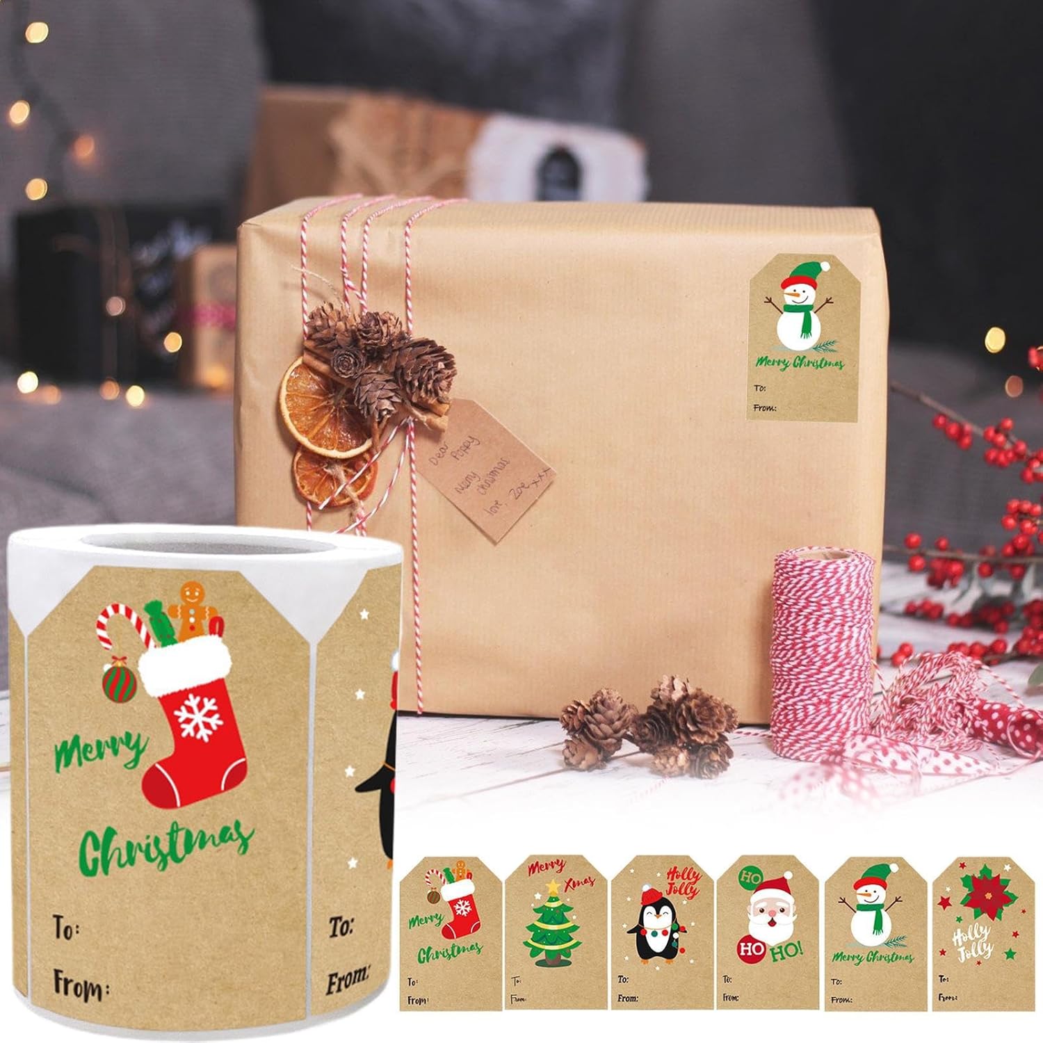 Uso intuitivo: queste etichette natalizie combinano funzionalità ed estetica in modo armonioso, con campi Da e A prestampati che le rendono perfette per decorare regali fatti a mano e creare momenti memorabili durante le festività natalizie. Il loro design pratico facilita l'etichettatura e aggiunge un tocco personale a ogni presente, ideale per le celebrazioni festive, consentendo un uso fluido e piacevole senza particolari abilità necessarie. Affascinanti motivi per le vacanze: Dotate di sei incantevoli disegni a tema natalizio, queste etichette adesive trasformano i regali in sorprendenti sorprese. Ideali per decorare regali, calze di Natale o ghirlande, garantiscono un'atmosfera coinvolgente e durante le festività di vacanza. I loro motivi festivi aggiungono un tocco visivo , rafforzando il Natale e rendendo ogni presente memorabile e attraente per le riunioni familiari Applicazioni Varie e Festive: Le etichette del nome di Natale aderiscono a più superfici, migliorando scatole regalo e carte con una decorazione festiva che attira i migliori complimenti. Sono perfetti per imballaggio, attività creative e progetti a tema holiday, grazie alla loro versatilità e adesione. Il loro uso trasforma ogni dettaglio in un'occasione speciale, aggiungendo il alle celebrazioni. Migliora l'attrazione dei regali: le etichette natalizie in carta con texture rustica naturale e motivi festivi aggiungono fascino ai regali offrendo allo stesso tempo spazio scrittabile per messaggi personali. Questa funzione migliora la presentazione in occasioni festive come riunioni familiari o scambi di amici, migliorando l'esperienza di disimballaggio durante le feste. Pratica funzione pelabile: progettata per comodità, queste etichette per il nome di Natale combinano facilità di peeling con superfici anti-sbavature, compatibilità con molteplici strumenti di scrittura per modernizzare le attività di etichettatura durante le festività, con un design che consente un utilizzo rapido e senza sforzo per identificare gli articoli durante gli eventi festivi.