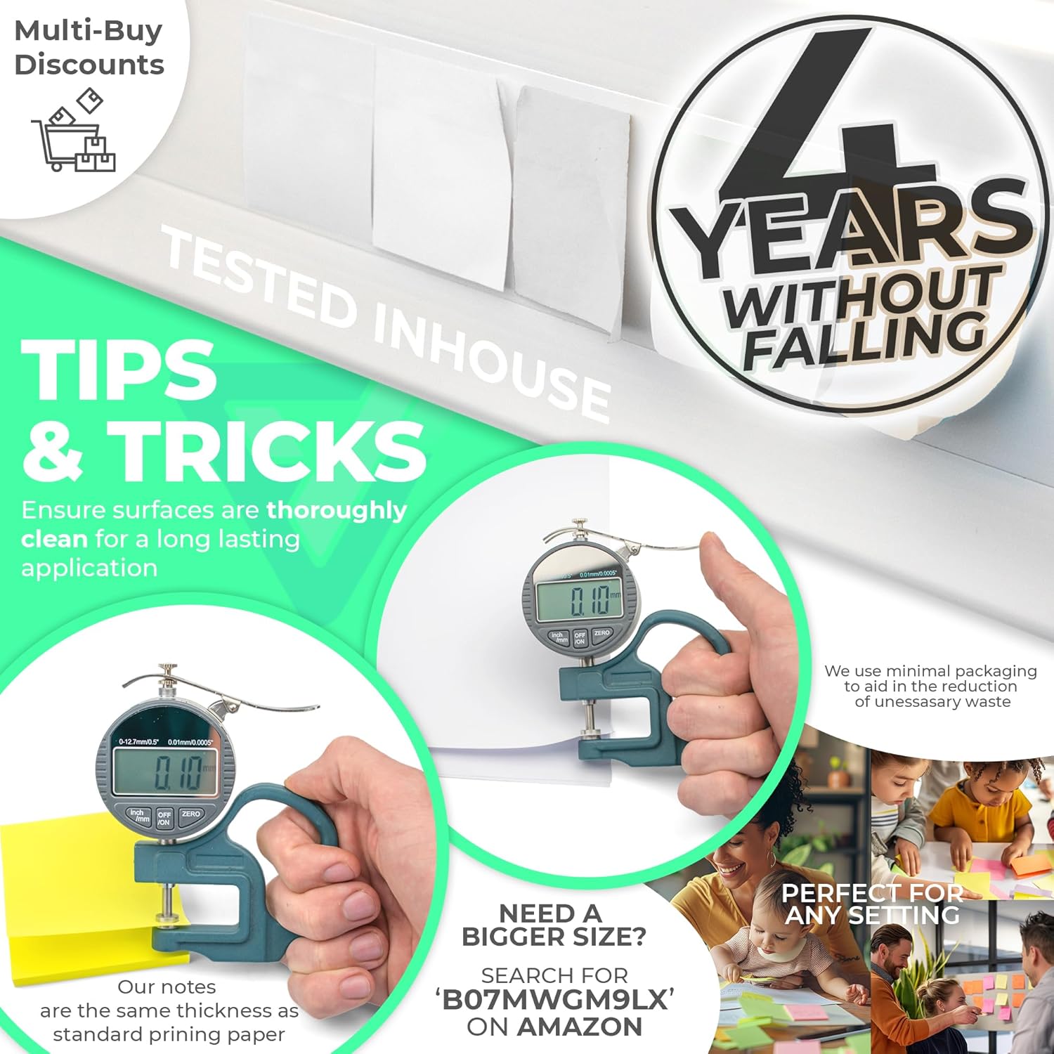 Design pulito e minimalista: a differenza dei tradizionali foglietti adesivi colorati, questi foglietti adesivi bianchi forniscono una tela fresca e pulita per i tuoi appunti, promemoria e idee. Perfetto per coloro che preferiscono un look minimalista nel proprio spazio di lavoro o a casa. Ideale per uso professionale: il colore bianco neutro aggiunge un tocco di professionalità al tuo ufficio. Che si tratti di annotare appunti di riunioni, elenchi di cose da fare o di lasciare messaggi per i colleghi, questi foglietti adesivi si integrano perfettamente in qualsiasi ambiente d'ufficio. Perfetto per la creatività organizzata: ideali per sessioni di brainstorming, questi foglietti adesivi bianchi consentono ai tuoi pensieri e alle tue idee di brillare senza distrazioni. Usali per la pianificazione creativa, la mappatura di progetti o lo storyboard con un aspetto pulito e ordinato. Aderenza forte, rimozione facile: questi foglietti adesivi sono dotati di un adesivo rimovibile che aderisce saldamente alla maggior parte delle superfici ma si stacca facilmente senza lasciare residui. Ideale per spostare note, riorganizzare elenchi o promemoria temporanei. VERSATILE PER MOLTEPLICI USI: Che si tratti di appunti di studio, organizzazione di attività, lasciare rapidi promemoria o anche segnare pagine di libri, questi foglietti adesivi bianchi da 76 x 76 mm forniscono una tela bianca per mantenere i tuoi pensieri e le tue attività chiaramente visibili e ben organizzati.