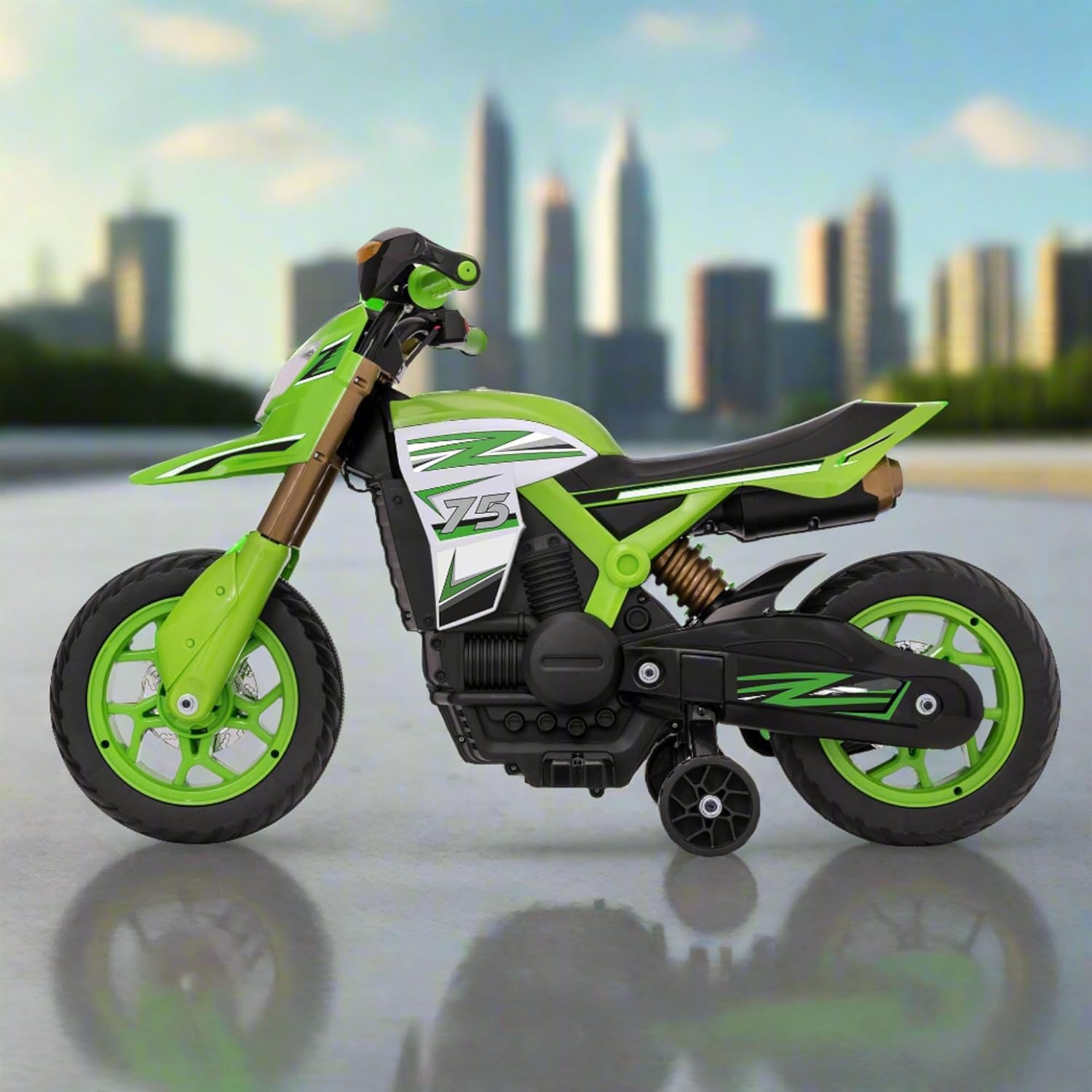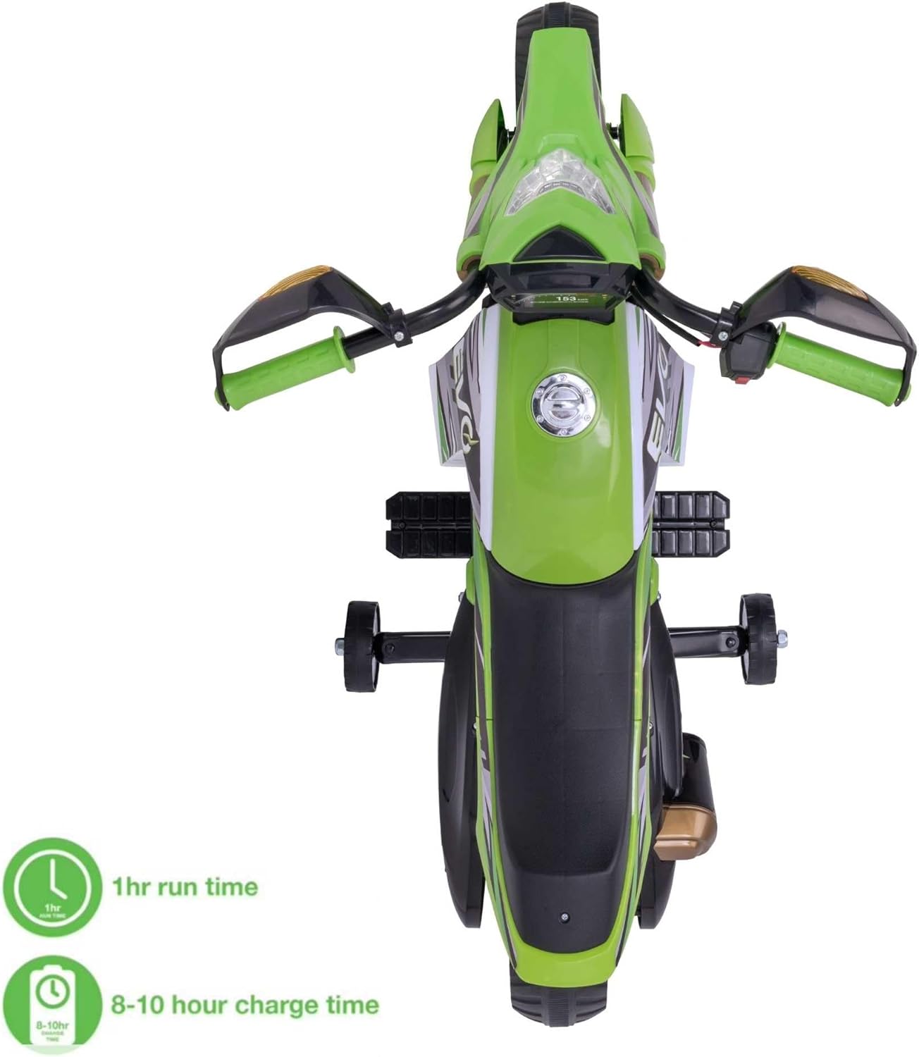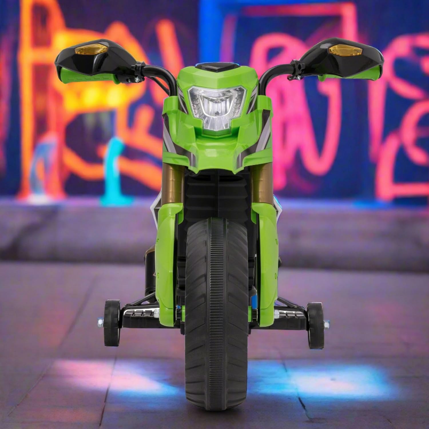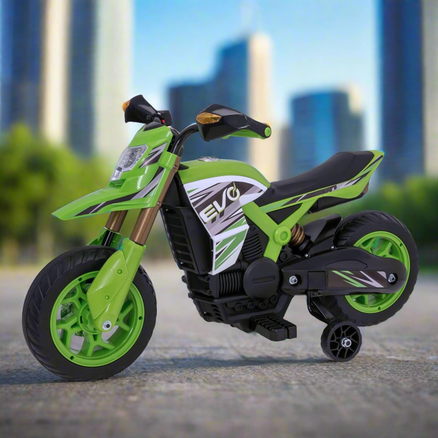 EVO MOTO VERDE VENOM ELETTRICO – Lasciate che il vostro bambino corra nell'avventura! Trasforma il tuo giardino in una pista e scatena l'amore del tuo bambino per il divertimento all'aperto con il Evo Electric Venom Green Motorcycle Ride-On - la scelta migliore per i giovani amanti del brivido! Questa divertente, resistente ed elegante moto alimentata a batteria è costruita per l'avventura e progettata per dare a bambini e bambini l'emozione di guidare come un vero motociclista. Rifinita in un accattivante design da rally verde e nero, questa mini moto elettrica combina sicurezza, eccitazione e caratteristiche interessanti come fari funzionanti, poggiapiedi e stabilizzatori rimovibili, aiutando il tuo bambino a guadagnare equilibrio e sicurezza man mano che cresce. Sia che il tuo bambino sogni di moto da cross, scooter o addirittura diventare la prossima superstar delle corse, questo cavalcabile realizza quei sogni. Caratteristiche principali della moto elettrica Evo Venom Design realistico: look audace da rally con stile sportivo, specchietti retrovisori posteriori e fari a LED funzionanti per un gioco coinvolgente e fantasioso. Ruote da allenamento rimovibili: gli stabilizzatori in acciaio regolabili e rimovibili offrono ai giovani piloti l'equilibrio extra di cui hanno bisogno mentre imparano a guidare in modo indipendente. Controlli adatti ai bambini: il manubrio facile da impugnare con un pulsante di accelerazione rende semplice andare avanti, basta premere e partire! Base stabile a quattro ruote: l'innovativo design a quattro ruote offre una maggiore stabilità senza compromettere l'aspetto fresco di una vera moto. Comfort e sicurezza: include poggiapiedi e un baricentro basso per garantire passeggiate sicure e confortevoli per bambini e bambini. Regalo perfetto per i bambini che amano le moto Che si tratti di un compleanno, Natale o una sorpresa speciale, la moto elettrica Evo è un regalo fantastico per i bambini appassionati di moto, scooter o auto da corsa. Progettato per ragazzi e ragazze dai 3 anni in su, è ottimo per sviluppare capacità motorie, coordinazione, equilibrio e fiducia, il tutto divertendosi. Perfetto per gli appassionati di biciclette RC, moto da cross, scooter elettrici, monster truck, balance bike, mini quad e auto da cavalcare per bambini. Specifiche del prodotto include: 1 x Evo a batteria Venom Green Rally Moto, 1 x caricabatterie, 1 x set di ruote da allenamento rimovibili. Batteria: batteria ricaricabile da 6 V. Peso massimo: 30 kg. Tempo di ricarica: fino a 1 ora. Tempo di ricarica: 8-10 ore. Dimensioni del prodotto: 60 cm x 43 cm x 102 cm (altezza x larghezza x profondità). Adatto per: bambini dai 3 anni in su Parte della gamma Evo di HTI Esplora l'intera collezione Evo - un'entusiasmante gamma di scooter, bici senza pedali, cavalcate elettriche, mini bici da cross e giocattoli a tema come autopompe dei pompieri, auto unicorno e veicoli della polizia. Progettata per bambini e bambini dai 2 anni in su, la gamma Evo porta la gioia del gioco all'aperto e dell'avventura nella vita di ogni famiglia. Dai al tuo bambino la libertà di guidare, esplorare e giocare con la Evo Electric Venom Green Motorbike - dove iniziano viaggi epici e piccoli motociclisti diventano grandi avventurieri! 100%
