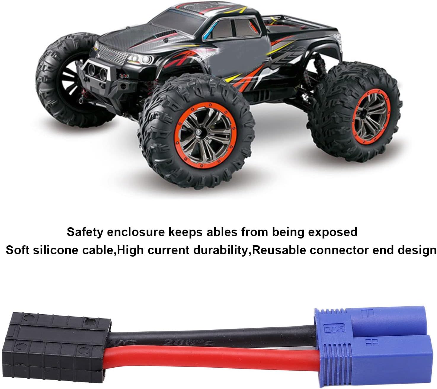 [Design di conchiglie di sicurezza]: il guscio di materiale di alta qualità fornisce contro l'esposizione e potenziali danni all'alimentazione, garantendo la sicurezza per gli utenti. [Fine del connettore riutilizzabile]: con una connessione forte, il design riutilizzabile del cavo maschile EC5 consente inserimenti multipli e rimozioni dall'alloggiamento. [Forte compatibilità]: appositamente progettato per il collegamento di batterie ed ESC, questo cavo maschile EC5 è perfetto per varie auto a telecomando, aerei e navi. [Endurance ad alta corrente]: con eccezionali capacità di resistenza corrente, l'adattatore cavo maschile EC5 salvaganda i giocattoli da cortocircuiti e influenze esterne. [Cavo in silicone altamente flessibile]: vanta un cavo in silicone super morbido e resistente alla corrosione con alta piegabilità, robustezza e durata, il cavo è di circa 95 mm di lunghezza.