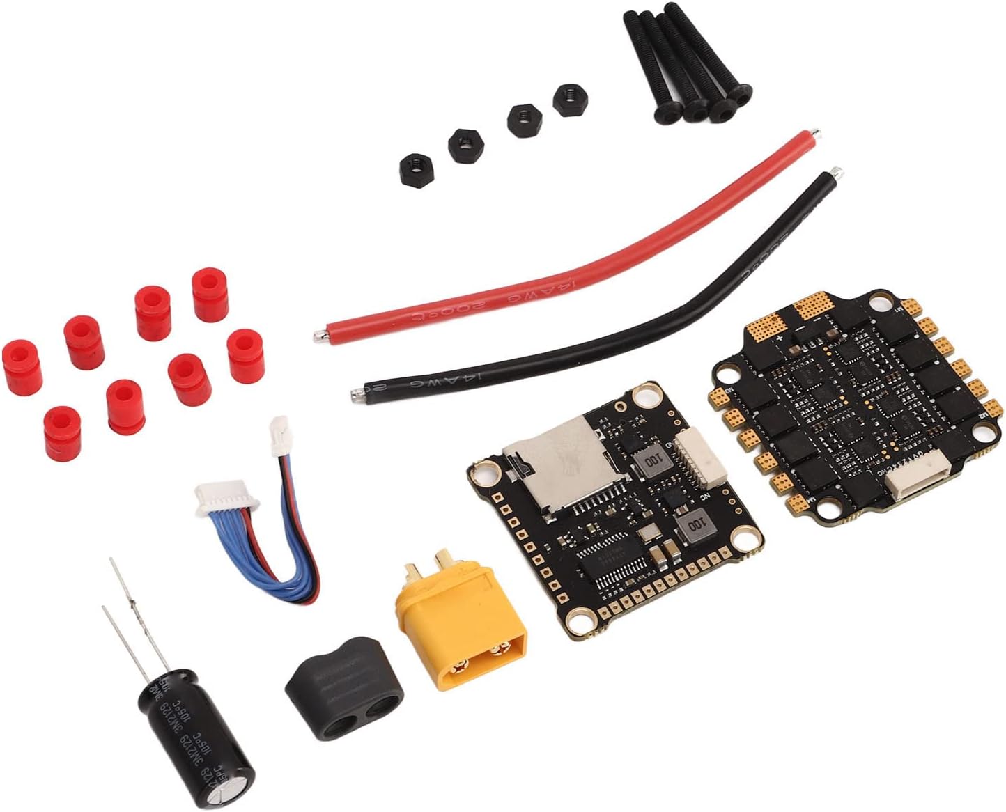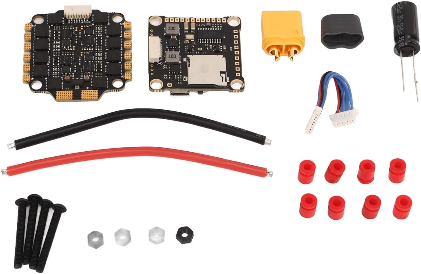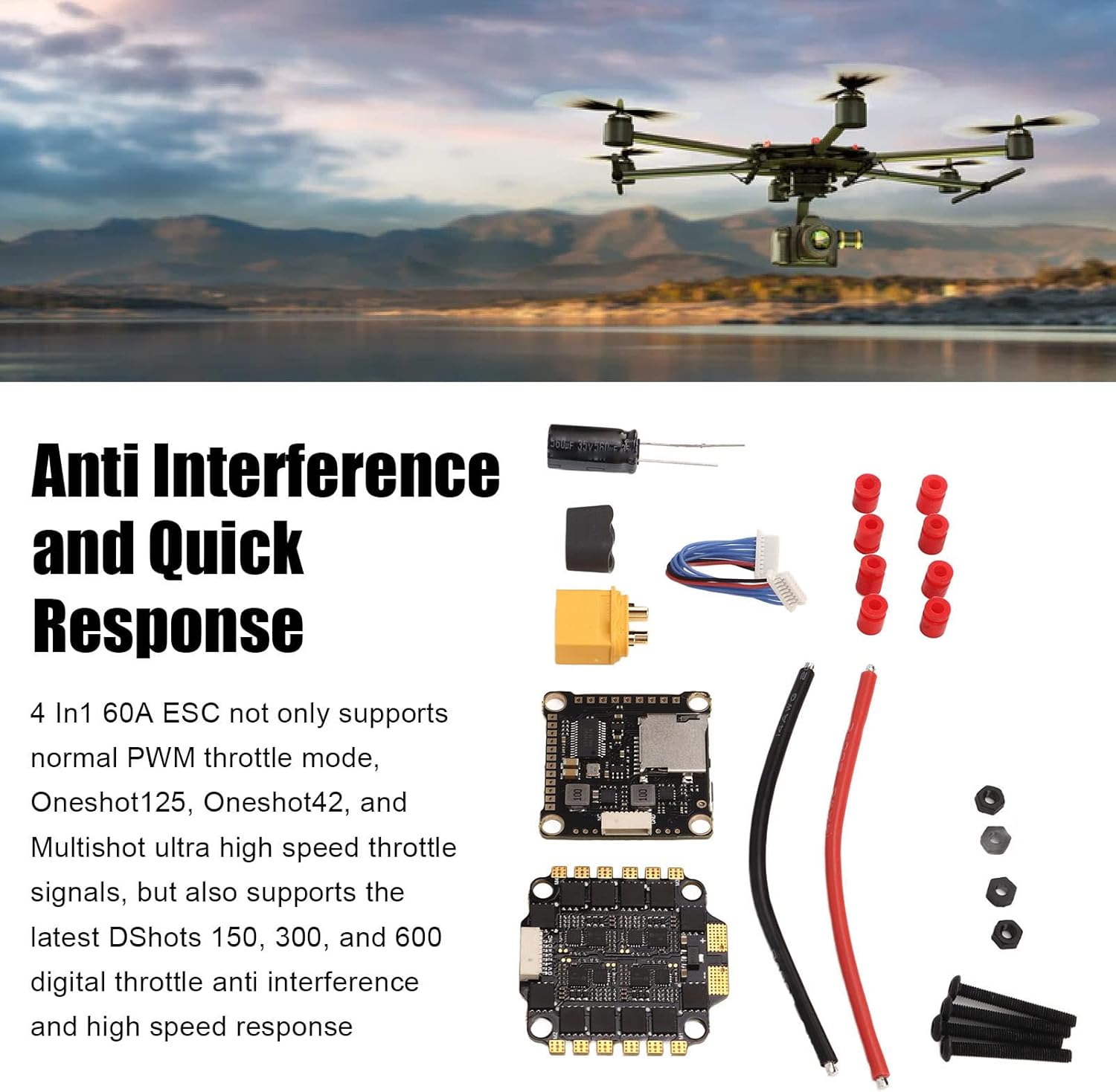 60A Brushless ESC: integrare altamente ESC 60A ad alte prestazioni. A causa di una così alta integrazione e dello stesso volume delle macchine a maglia piane, l'installazione e il cablaggio diventeranno molto semplici. Interferenza anti e risposta rapida: 4 in 1 60A ESC non solo supporta la normale modalità di farfalla PWM, Oneshot125, OneShot42 e segnali a farfalla ad alta velocità MultitHot, ma supporta anche le ultime dshots 150, 300 e 600 interferenza anti -altezza digitale e risposta ad alta velocità. Caratteristiche ricche: utilizzando il firmware di Blheli, ha una potenti e funzionalità ricche e supporta diversi modi per impostare i parametri ESC o aggiornare il firmware ESC (come attraverso il cavo del segnale acceleratore, utilizzando altre schede di sviluppo o utilizzando Cleanflight o impostazione o aggiornamento del firmware Betaflight per ESC). F4 V3S Plus Controller di volo: PCB adotta un foglio di rame addensato 8 strato di fascia alta, con una maggiore capacità di sovracorrente e una buona dissipazione del calore. Restringa MOS ad alta corrente: F4 V3S Plus Flight Controller Board adotta MOS ad alta corrente, con una lunga durata di servizio e una forte capacità di carico.