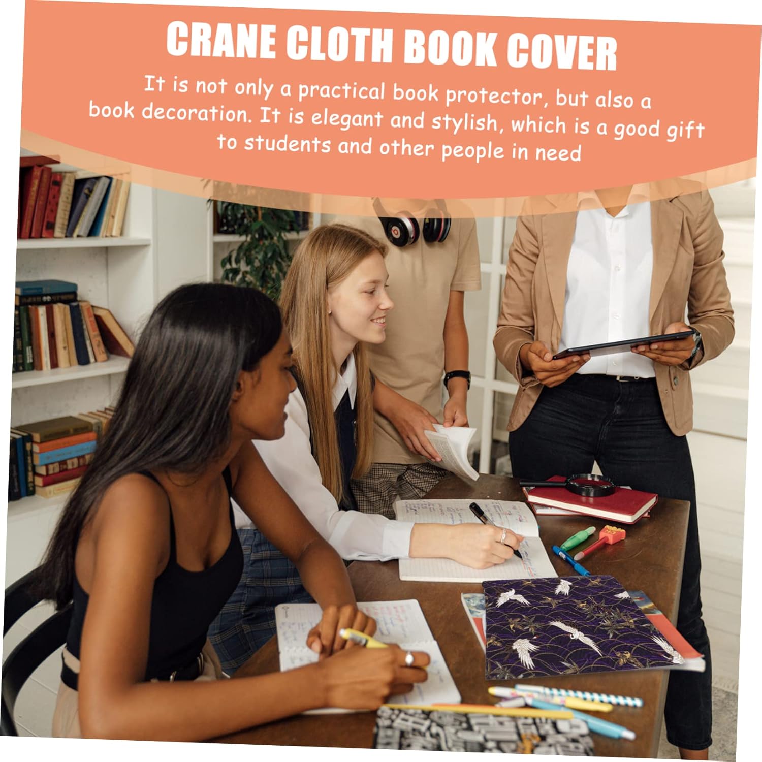 Copertina del libro in stoffa: realizzata in tessuto di alta qualità, resistente e robusta. con un design unico, ti porterà un ottimo umore. Protettore per libri con design a gru: 📔📓📒la copertina del libro è facile da mettere sul libro, molto comoda e veloce. Copertina del blocco note: il motivo creativo e la trama fine ne garantiscono praticità e popolarità. Copertina del libro: design delicato, comodo per trovare il libro. ai tuoi figli piacerà. Copertine per libri elastiche: un aiuto efficace per aiutarti a proteggere quaderni, cartelle, libri, libri di testo, quaderni, pianificatori, .