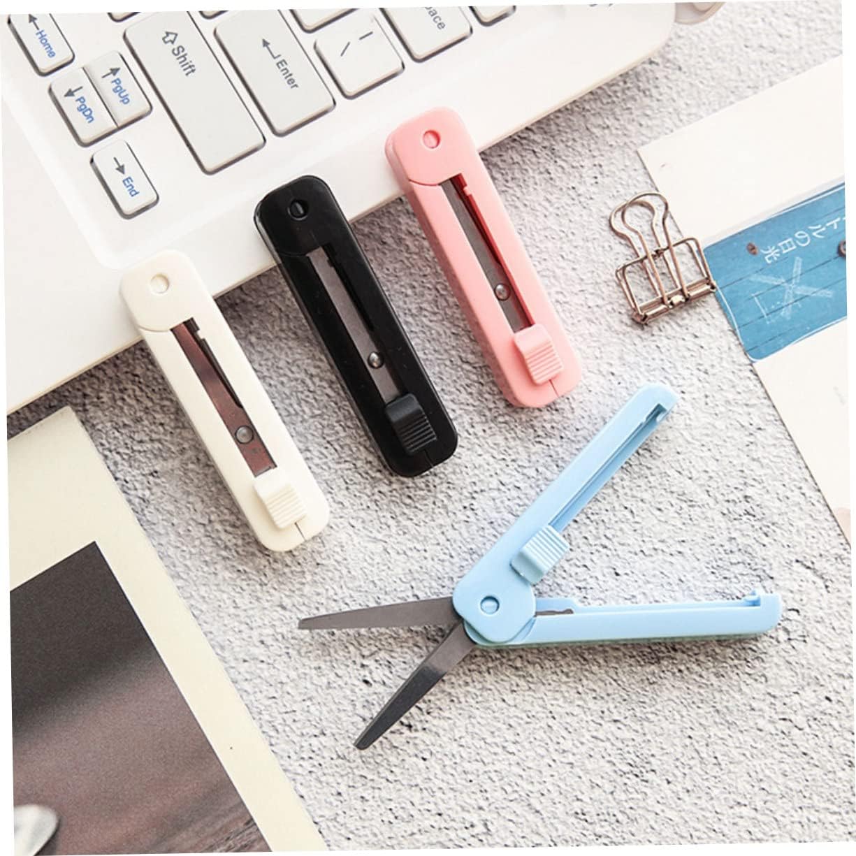 Forbici per bambini: le forbici sono realizzate in acciaio inossidabile, molte cose tranne il metallo spesso, forbici per cancelleria per bambini Forbici multiuso: queste forbici possono piegarsi, nascondere la lama, sono molto sicure quando non le usi, evitano anche il potenziale pericolo per i bambini, rotondo in filo metallico Forbice portatile: tutti i bordi e gli angoli sono levigati in modo molto scivoloso, la forbice non farà male alle dita, strumento di taglio Forbici pieghevoli: ottime per la cucina, l'artigianato, l'aula e lo scrapbooking, forbici di sicurezza Forbici portatili: piccole forbici con bordi sicuri adatte per riduzioni di foto, immagini, carta, ecc., forbici telescopiche