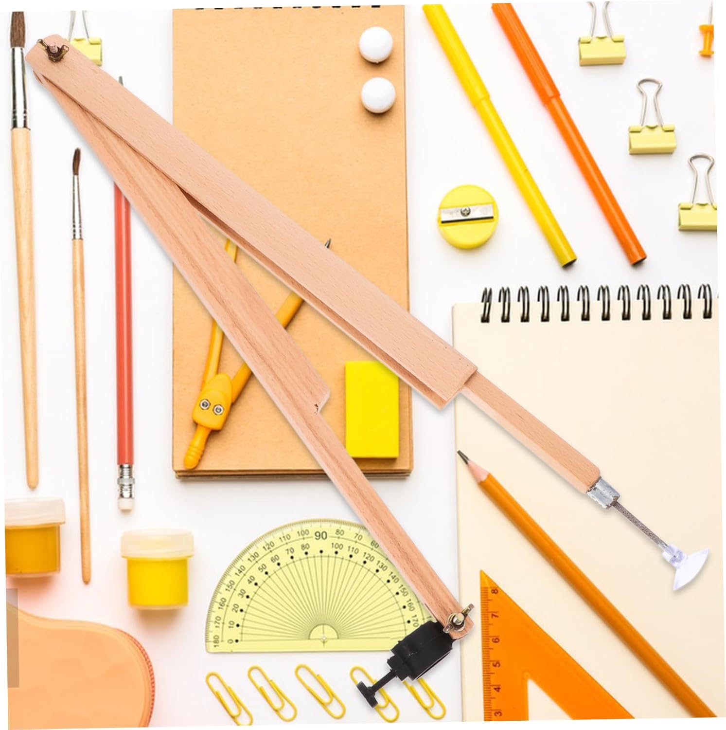 Cancelleria didattica: realizzata in legno, questa strumentazione è progettata per durare e resistere all'uso frequente in contesti educativi, per l'insegnamento della matematica Strumento per la creazione di cerchi: questo versatile compasso è pensato per gli insegnanti di matematica, consentendo loro di creare figure geometriche precise sulle lavagne con facilità, compasso da disegno per l'arte Per la matematica: uno strumento indispensabile per gli educatori, migliora significativamente la chiarezza e l'efficacia delle lezioni e della stesura dei materiali scolastici Strumento per tracciare in metallo: questo grande compasso è specificamente progettato per scopi didattici, rendendolo ideale per disegnare cerchi estesi e forme geometriche complesse in contesti scolastici, architettura del compasso Compasso da disegno: realizzato in legno robusto, questo compasso è progettato per un uso a lungo termine, resistendo a deformazioni e danni per mantenere la sua affidabilità nel tempo, compasso circolare