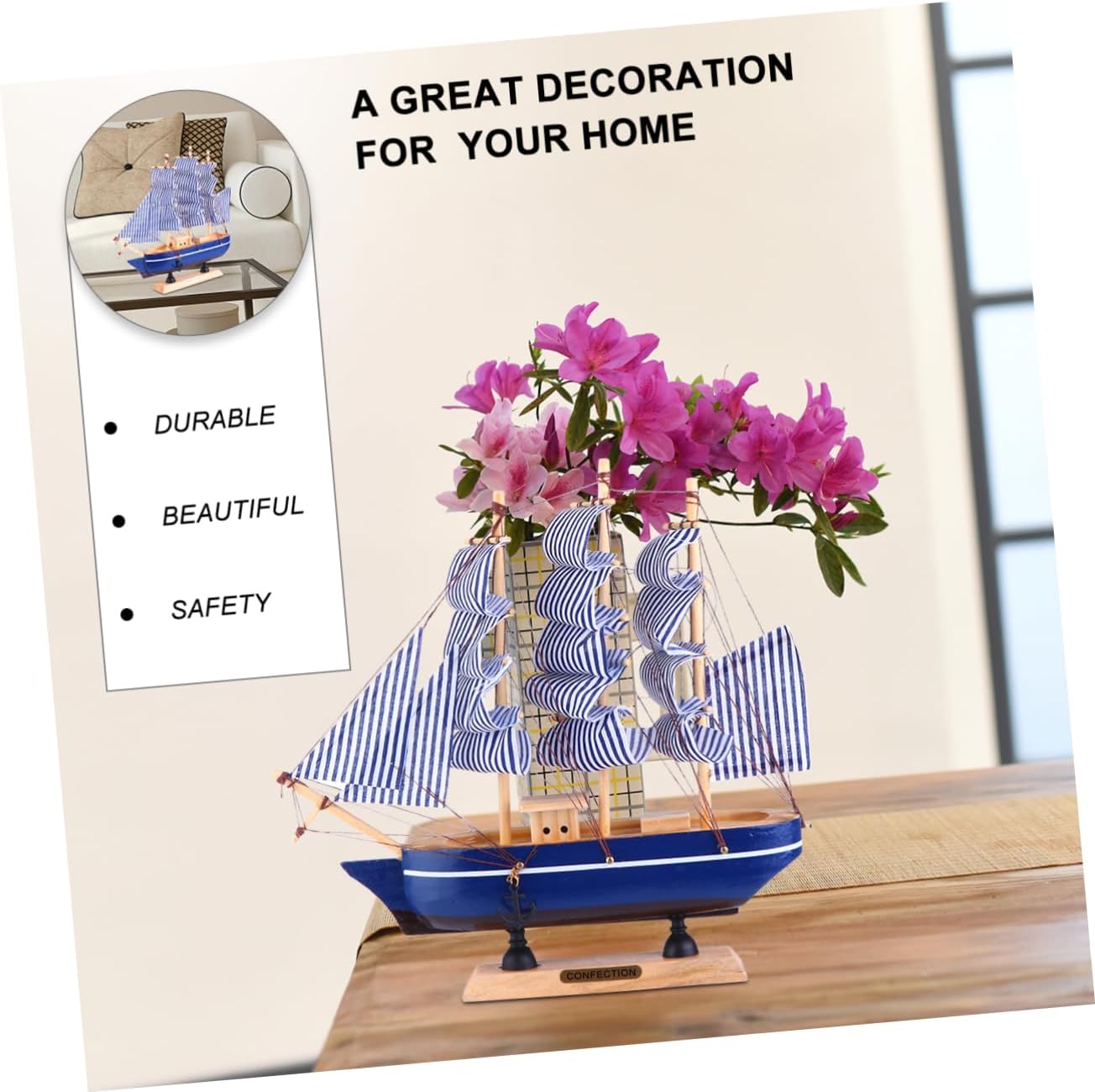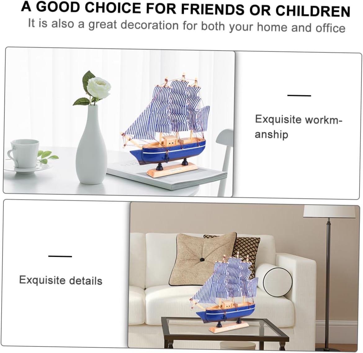 Modello creativo di barca a vela: realizzato in legno e tessuto di qualità, sicuro e decorativo. Modello di nave in legno: perfetto nautico per amici o ospiti della festa, per banchetti, ricevimenti, riunioni o qualsiasi festa o evento nautico. Mini barca a vela in legno: realizzata in legno e tessuto di qualità, sicura e decorativa. Barche a vela vintage fatte a mano-- da usare: grazie al modello di veliero vintage è realizzato in legno e tela di qualità, che è robusto e resistente, rende il modello molto leggero e non fragile e non modella facilmente, ha un Barca a vela in legno: lavorazione squisita e dettagli squisiti, ne garantiscono praticità e popolarità.