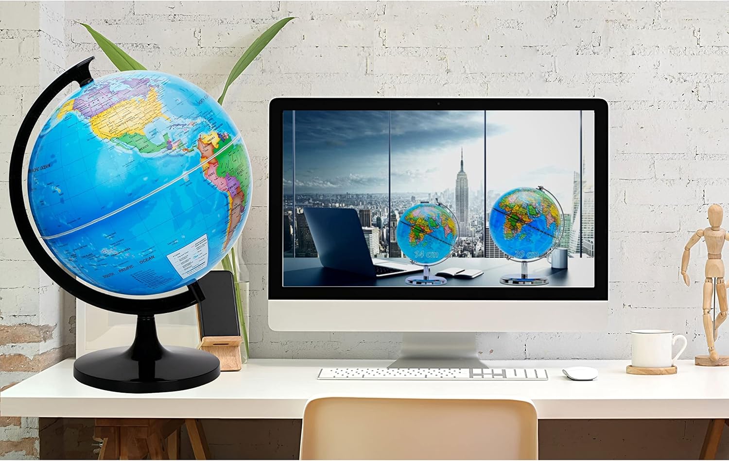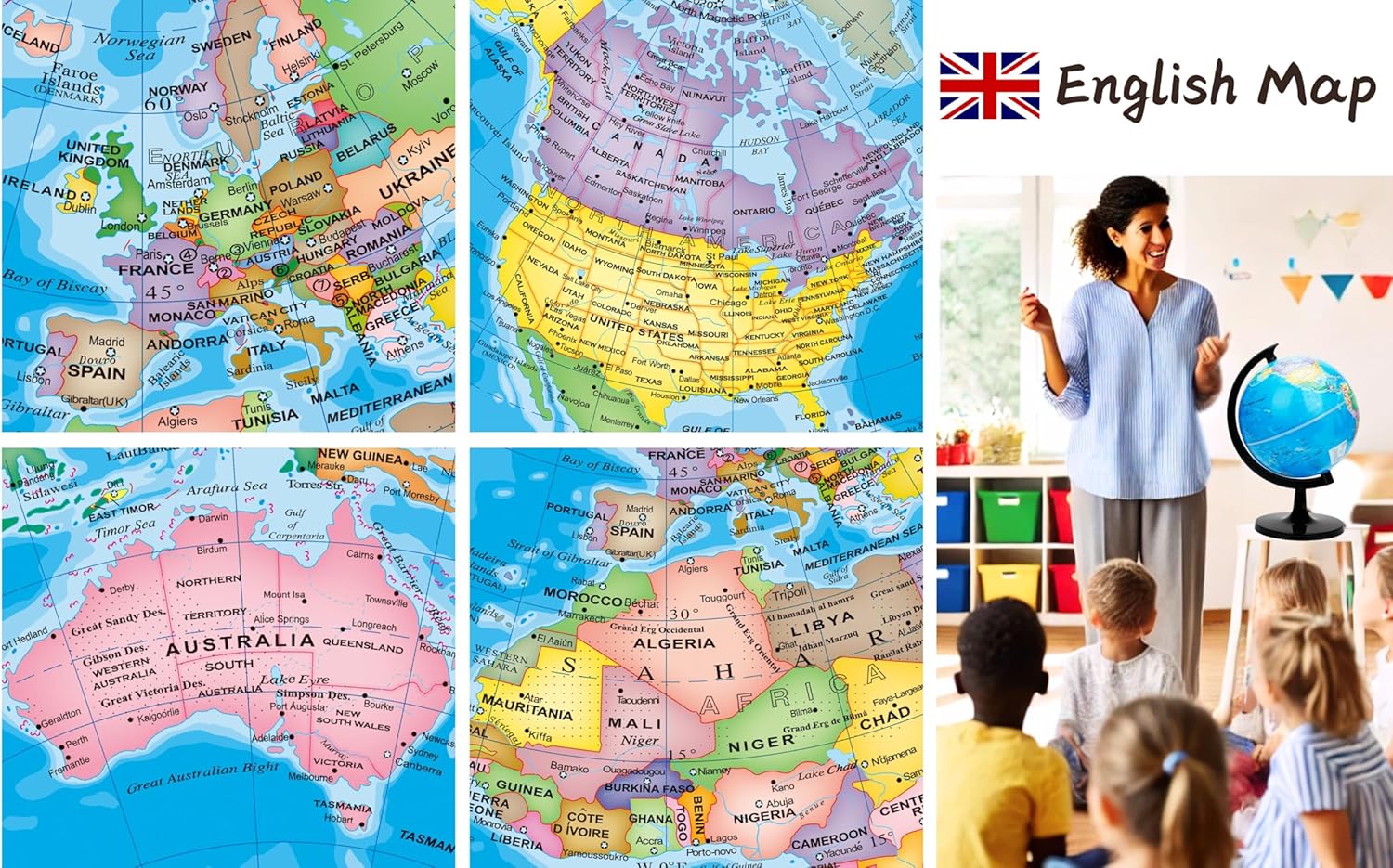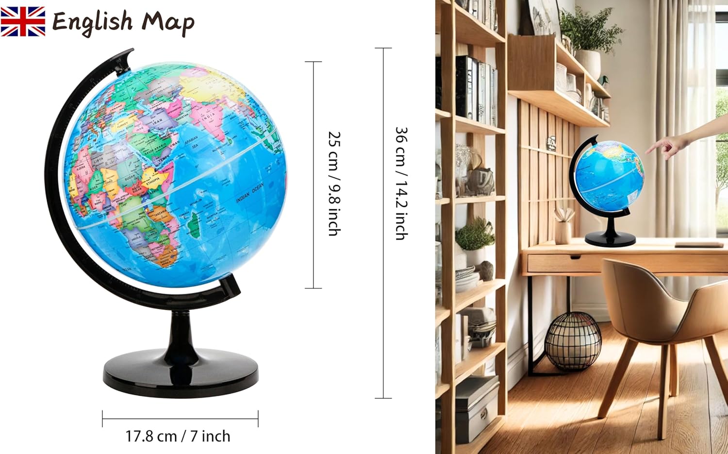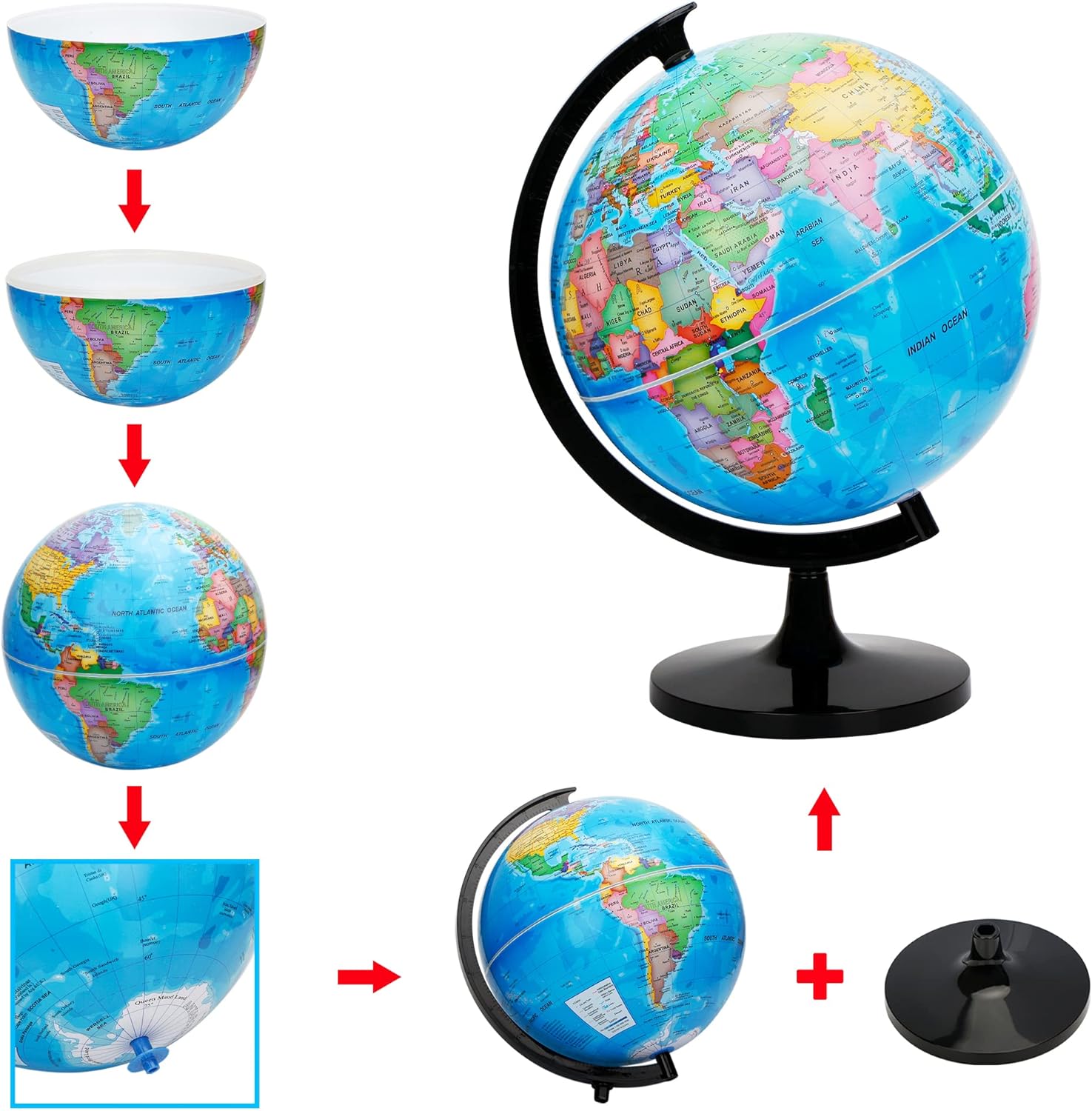 ASSEMBLAGGIO DIVERTENTE: costruisci il tuo mappamondo educativo (diametro 25 cm) seguendo le istruzioni passo-passo incluse nella confezione. L'intero processo è semplice ma soddisfacente. EDUCATIVO: il nostro globo ha informazioni e dati aggiornati, incoraggia i bambini curiosi a esplorare il mondo della scienza con le proprie mani e i propri occhi. CLASSICO: bellissimo mappamondo classico accattivante. Mostra paesi, confini politici, capitali, città principali e altro ancora, sentiti libero di usarlo ogni giorno e di farvi riferimento in qualsiasi momento. Il nostro mappamondo può essere visualizzato sui sostegni desiderati o diventare indipendente. Questo globo è perfetto per la decorazione della casa e dell'ufficio, come un look moderno ed elegante, o semplicemente per abbinarsi al colore del punto che hai scelto. ALTA QUALITÀ: il prodotto stesso ruota su un supporto robusto, altezza Supporto incluso: 36 cm. Utilizziamo il miglior materiale che possiamo utilizzare nel settore, che include ABS (plastica acrilonitrile-butadiene-stirene), inchiostro di alta qualità. La nostra stampa di alta qualità, fine e chiara, ha portato a un'esperienza molto semplice e piacevole quando si legge la sfera geografica. REGALO: confezione in scatola artigianale di prima qualità, idea regalo perfetta per quasi tutte le occasioni. Perfetto per chi ama il fai-da-te, ama l'autoassemblaggio. Compleanno di bambini, Natale, evento di amici, apertura di un nuovo ufficio, sei più che benvenuto per essere creativo. Ad esempio, regalare a qualcuno che vorrebbe decorare uno studio, un soggiorno, uno studio o in un bar come pezzo straordinario.