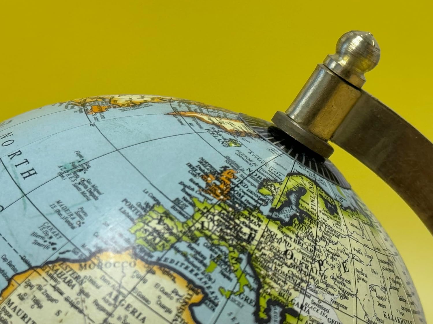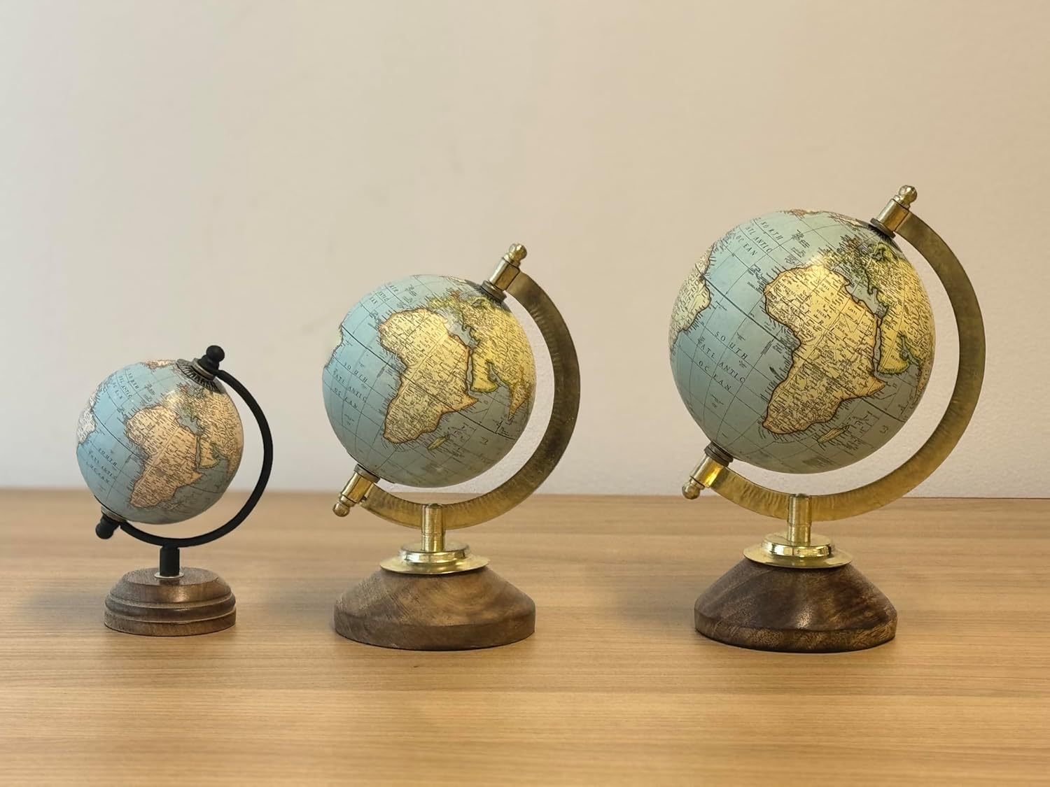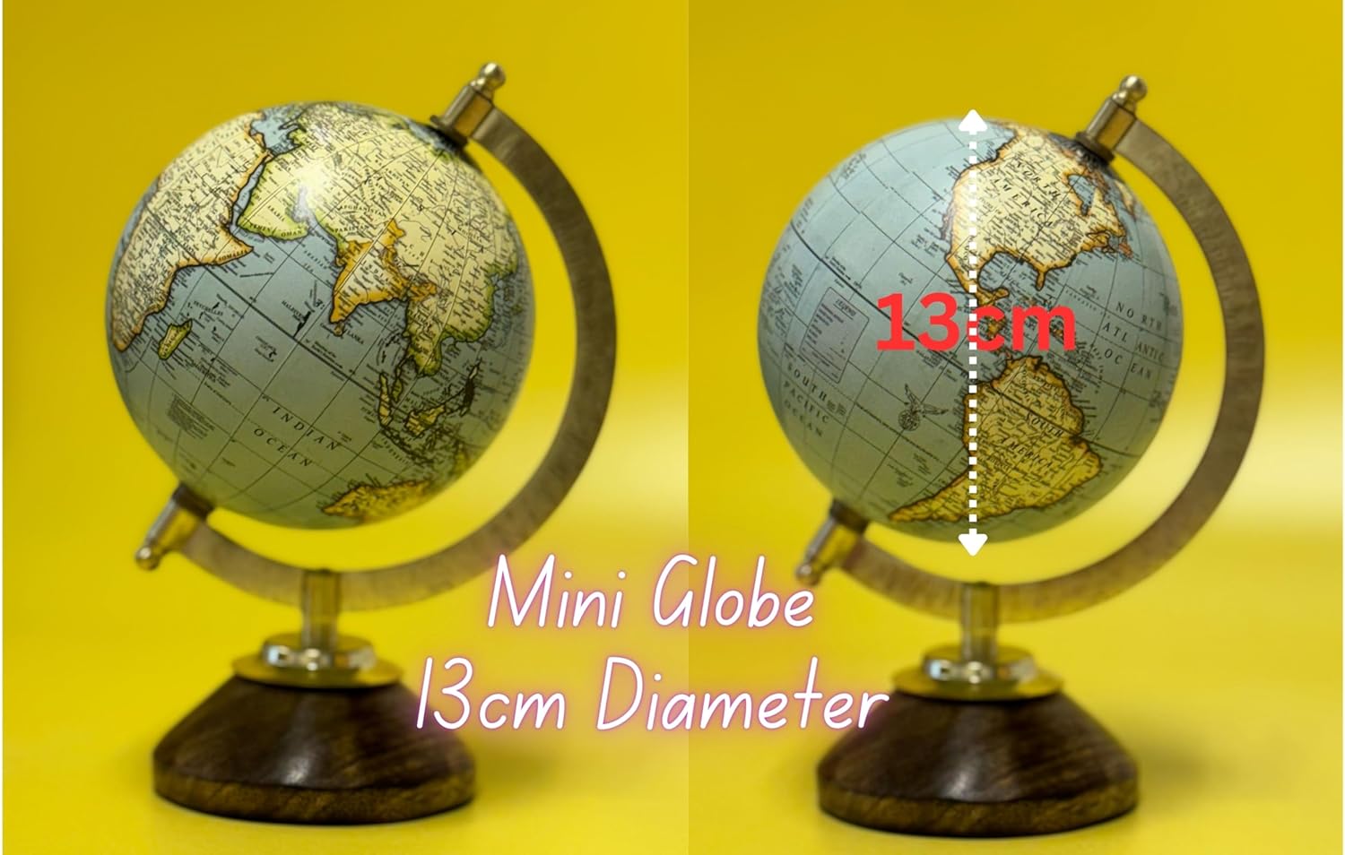 EXERZ globo artigianale dall'aspetto antico con base in legno e sfera blu Diametro: 13 cm, sfera geografica facile da leggere Divertente ed educativo: incoraggia i bambini curiosi a esplorare il mondo della scienza Globo dall'aspetto antico con base in legno, perfetto per la decorazione di casa e ufficio (personaggi vintage) Non adatto a bambini di età inferiore a tre anni, adatto a bambini di età superiore a 3 anni