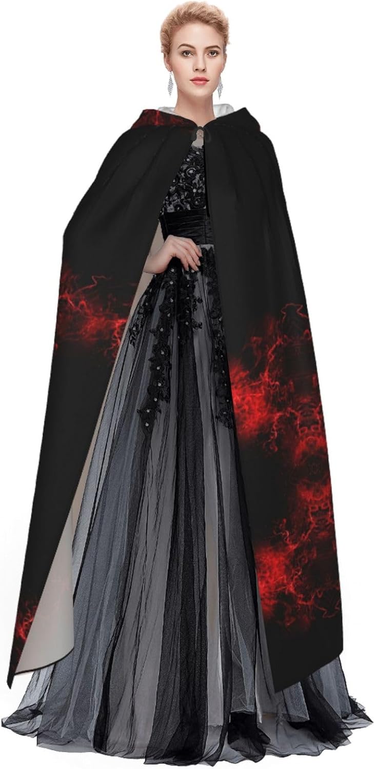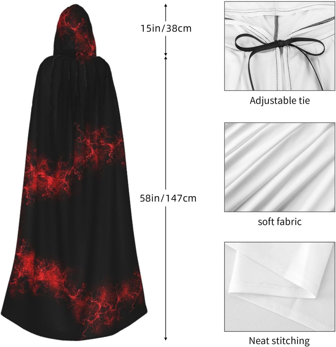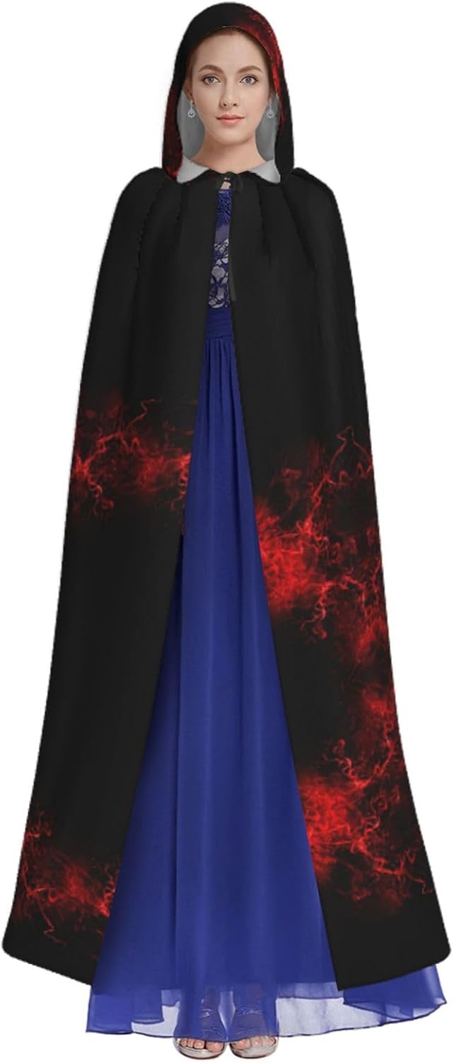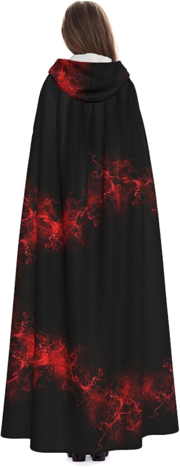 Explosion Burst - Mantello lungo con cappuccio, stampa rossa e nera, per adulti, per Natale, Halloween, feste a tema, giochi di ruolo