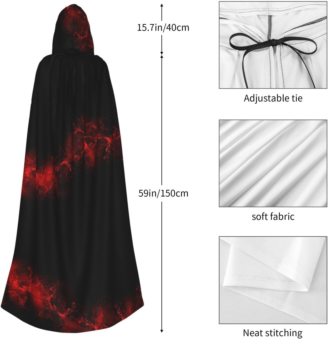 Stampa HD, mantello unisex con cappuccio, mantello a lunghezza intera per feste in costume di Halloween, immagine vivida, per offrirti un'esperienza nuova di zecca. Progettato per donne adulte, il mantello unisce magnificamente moda e funzionalità. È realizzato in 100% poliestere, promette longevità e morbidezza sulla pelle. Il design del mantello, caratterizzato da un cappuccio oversize, è perfetto per aggiungere un'aria di mistica al tuo outfit. La lunghezza e la larghezza generose offrono una vestibilità ampia e fluida, mentre il cappuccio alto 45,7 cm offre un'ampia copertura. Il mantello non si limita alle celebrazioni di Halloween. È abbastanza versatile per varie occasioni: pensa a giochi di ruolo, feste in costume, balli in maschera e persino convention a fumetti. Prendersi cura di questo accattivante mantello è un gioco da ragazzi poiché è lavabile in lavatrice e altamente resistente. Vestiti con stile con il nostro incredibile mantello con cappuccio.