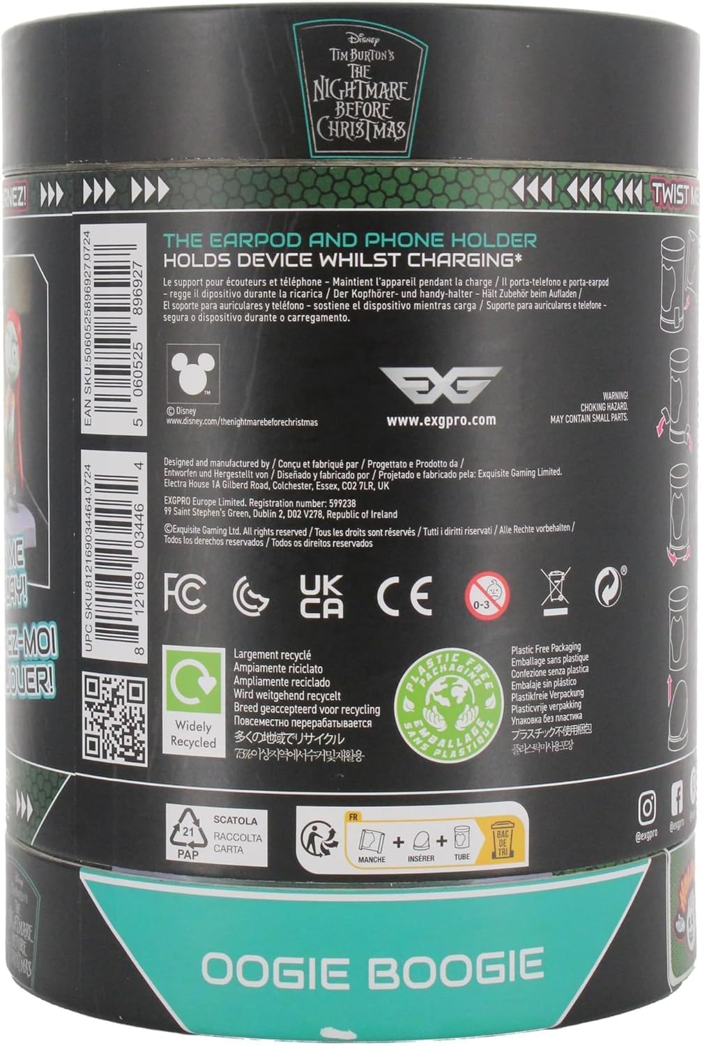 Culla per telefono o auricolari: Holdems – sapientemente realizzati per contenere il telefono o gli auricolari. Dall'iconico personaggio Oogie-Boogie di Nightmare before Chirstmas. Accessorio tecnico a forma di figura da 10,2 cm: miniatura in PVC resistente e base robusta per tenere le tue cose senza ribaltarsi. Figura di Nightmare Before Christmas alta 10,2 cm. MINI FIGURA DA COLLEZIONE: la perfetta combinazione di funzionalità e design: migliora la tua esperienza di gioco oggi e goditi una configurazione senza disordine con questo accessorio innovativo. Figura pratica e giocosa: l'accessorio Holdems è una soluzione versatile per gestire auricolari, telefoni, orologi, chiavi, penne e altro ancora. Collezione con licenza ufficiale: i tuoi personaggi preferiti della cultura pop - con uno scopo! Il regalo perfetto per ogni fan di Nightmare Before Christmas.