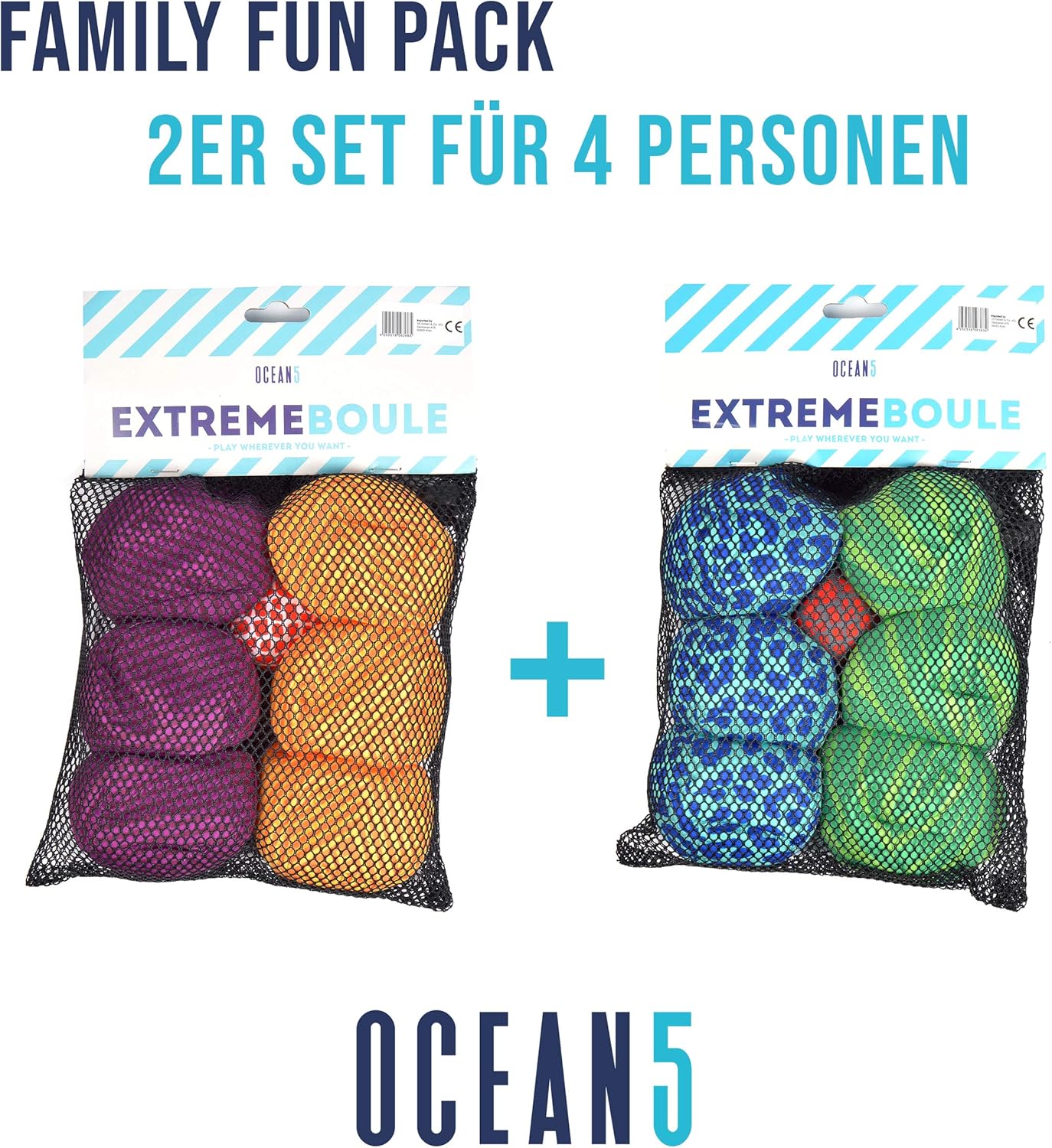 SPORT DI TENDENZA: Extreme Boule ti sorprende con tante diverse varianti del gioco delle bocce, per giocare al chiuso o all'aperto a partire da 2 giocatori DIVERTIMENTO GARANTITO: Sono i giocatori a decidere dove cominciano a giocare a bocce e in che direzione tirano. Qualsiasi tecnica di lancio è concessa. Nel gioco Extrem Boule si è completamente liberi VERSATILE: In giro per la città, in vacanza, sulla spiaggia, in montagna, sulla neve - Gara Cross Country - Le bocce entrano in qualsiasi borsa e ci si può giocare ovunque al chiuso e all'aperto PER GIOVANI E ANZIANI: Le regole da gioco delle bocce sono semplicissime da imparare. Il gioco di abilità per un divertimento al 100% senza limiti di età! Qualità TOP con sacca: questo gioco di lancio comprende una sacca + 6 bocce morbide con due diversi e straordinari design e un boccino, il tutto nell'ottima qualità del marchio Ocean8