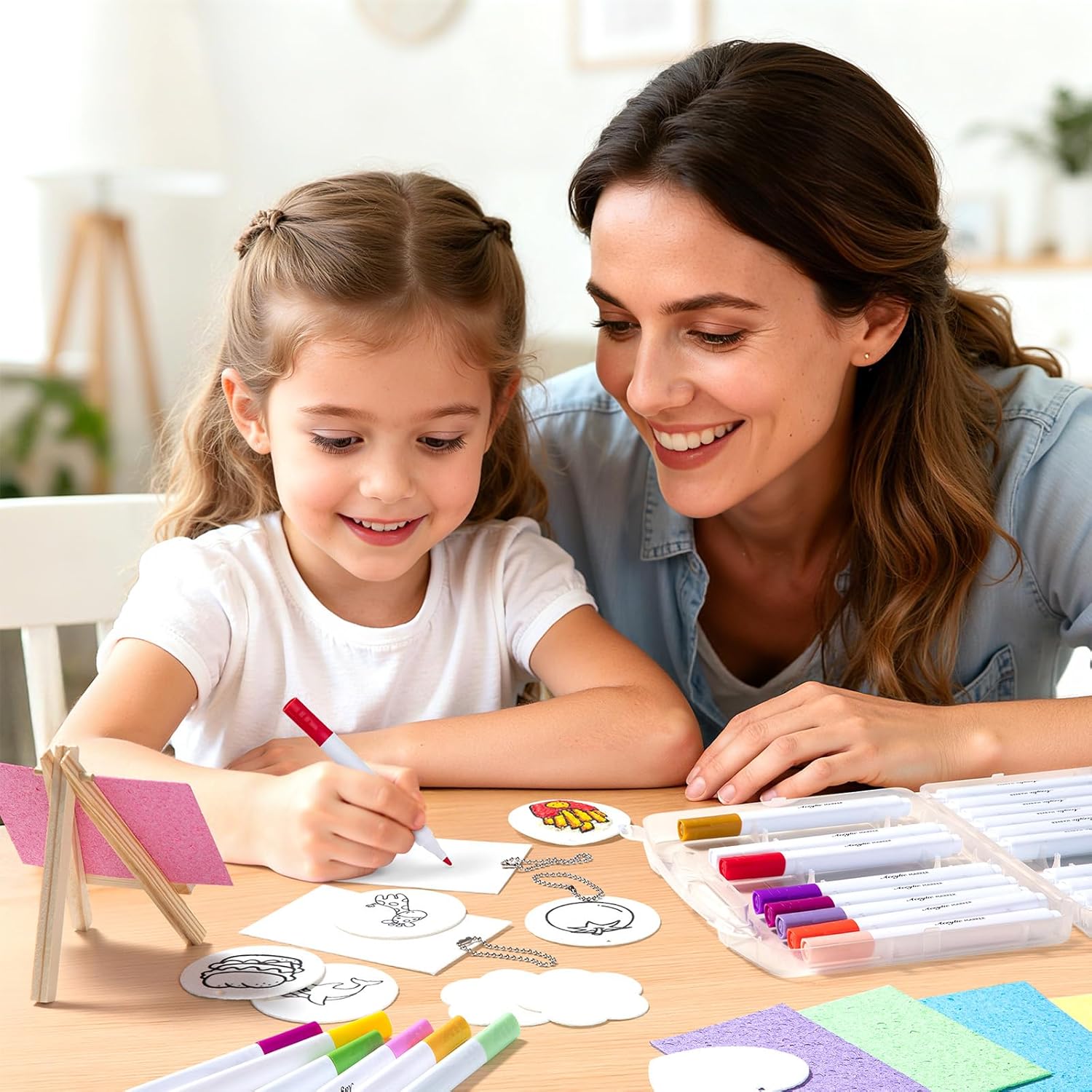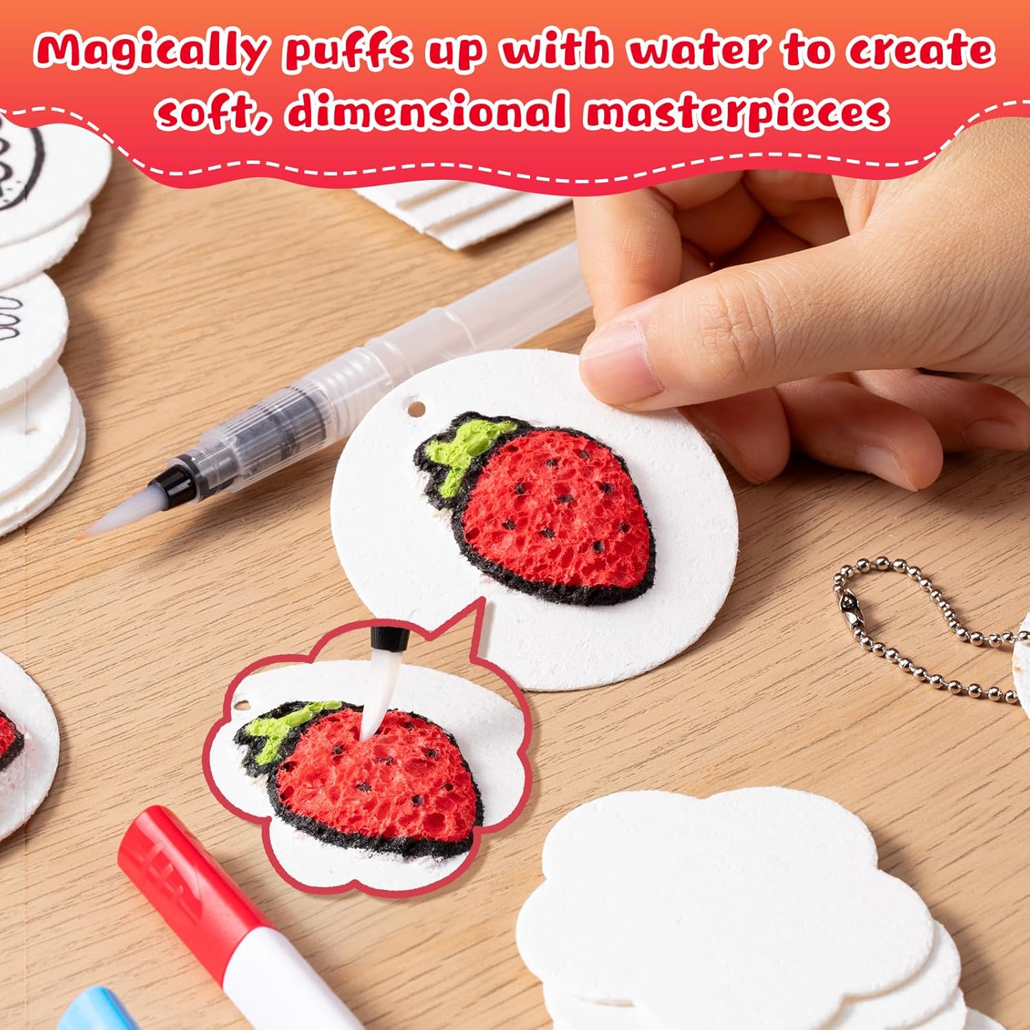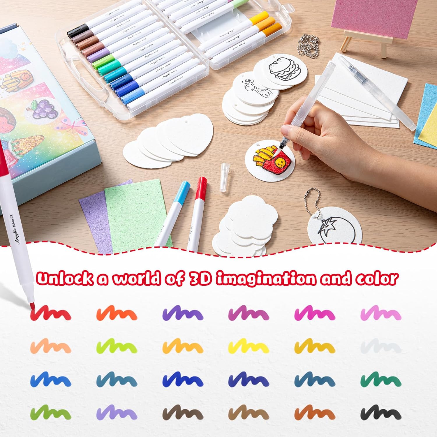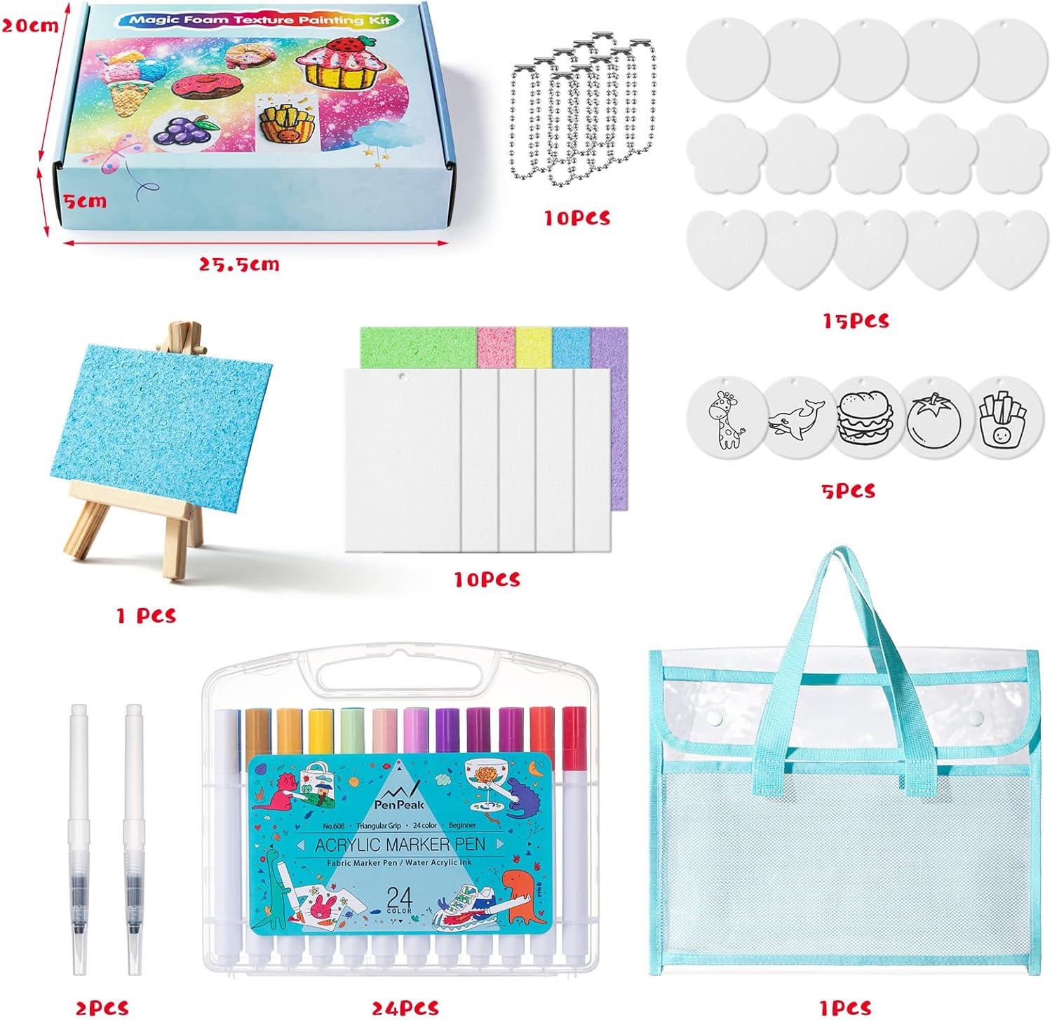Set creativo completo: Il set di pittura gonfiabile Puffy Paint offre tutto per i giovani artisti dai 3 ai 12 anni: 30 carte in schiuma 3D uniche da dipingere, 24 pennarelli vivaci, 10 collane di perle, 2 pennelli ad acqua, un mini cavalletto e un pratico astuccio. Un pacchetto completo per ore di divertimento pittorico e lo sviluppo dei talenti artistici. Effetto magico 3D: Vivi la magia della pittura 3D! Il nostro innovativo materiale in schiuma si gonfia a contatto con l'acqua e trasforma disegni piatti in opere d'arte 3D morbide e soffici. Un'esperienza visiva e tattile unica che promuove la creatività e l'interesse per l'arte nei bambini. Facile da usare: Nessuna conoscenza preliminare necessaria! Basta dipingere le carte in schiuma e inumidirle con il pennello ad acqua per attivare l'impressionante effetto 3D gonfiabile. Promuove in modo giocoso la motricità fine, la percezione del colore e l'espressione artistica nei bambini. Materiali sicuri: Tutti i componenti sono rigorosamente certificati per la sicurezza, non tossici e inodori. La texture morbida e resistente agli strappi dopo il gonfiaggio e i colori durevoli e brillanti garantiscono un divertimento pittorico sicuro e sano per il tuo bambino. Versatile e regalo: Questo set d'arte fai da te è perfetto per i lavoretti dei bambini, le decorazioni natalizie, i biglietti di auguri e i progetti educativi. È compatibile con la maggior parte degli strumenti di pittura ed è un ottimo regalo per compleanni, Natale o semplicemente come attività creativa per tutta la famiglia.