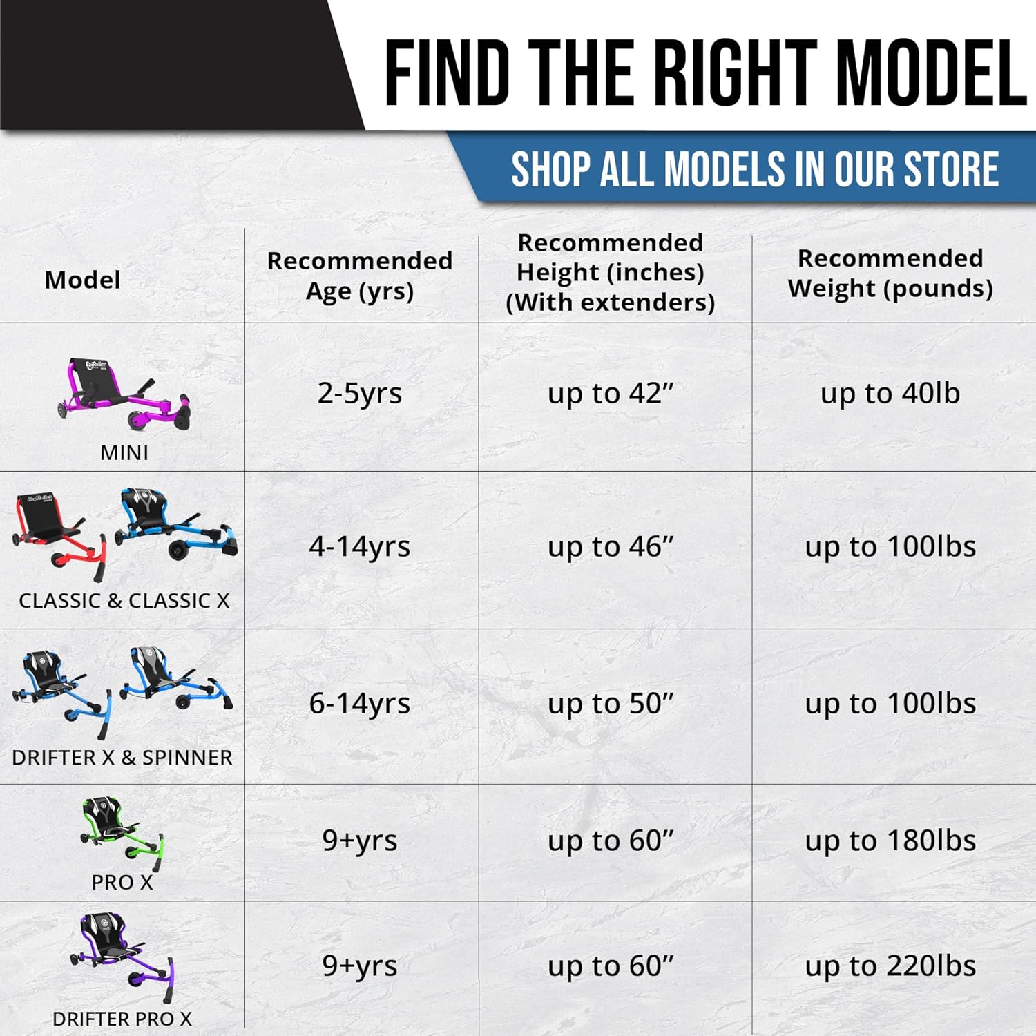 Con l'Ezyroller Mini della società neozelandese con lo stesso nome, è divertente per i bambini di circa 2-4 anni garantiti. La particolarità di Ezyroller Mini sono le sue dimensioni più piccole a differenza dell'Ezyroller Classic. Come nel classico, i movimenti del serpente vengono utilizzati per guidare il veicolo per bambini. Così i piccoli ottengono rapidamente il controllo del veicolo e presto guideranno con esso come se avessero invaso l'Ezy Scooter. Oltre al divertimento del movimento con il triciclo, il veicolo per bambini porta anche un allenamento della mobilità di tutto il corpo. Questo è puro piacere di guida per i bambini in cui si incoraggia anche la coordinazione e la destrezza. Il Trike per bambini è costruito con un robusto telaio in tubo d'acciaio dotato di ruote testate e facili da usare. Il conducente si siede comodamente su un sedile in tessuto di plastica resistente e a causa del basso centro di gravità è quasi impossibile ribaltare il veicolo. Ezy Roller Mini è adatto per bambini di circa Da 2 a 4 anni ed è stato premiato con numerosi premi come Giocattoli dell'anno. Il robusto telaio in acciaio del veicolo per bambini è progettato per un peso massimo del conducente di 25 kg.