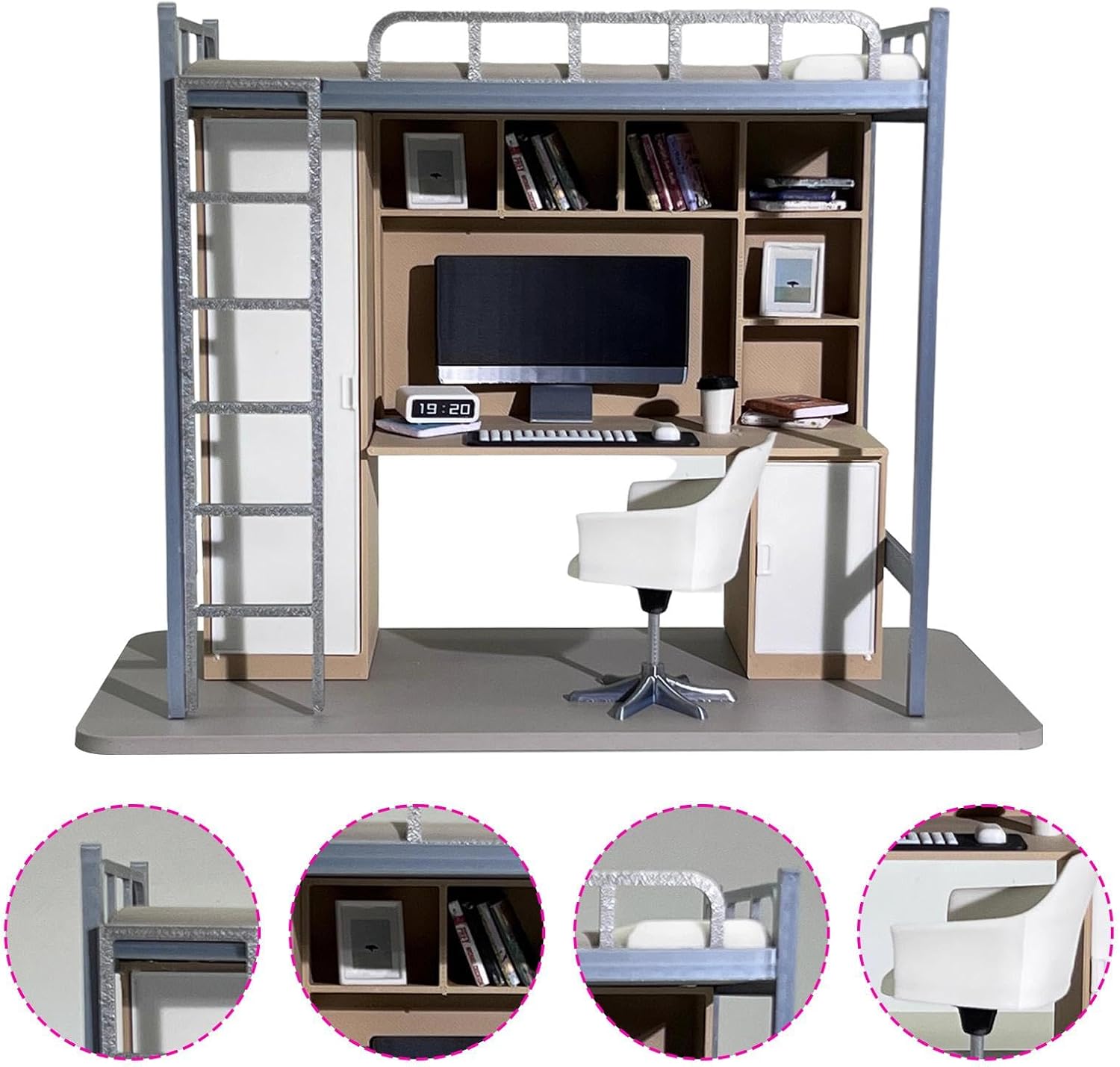 * 【Design】: Include un mini letto da dormitorio, un computer, una sedia da scrivania, due foto, una sveglia e persino una tazza di tè al latte per un tocco di fascino in più * 【Idea regalo unica】: i mobili per case delle bambole sono un regalo creativo per studenti, laureati o appassionati che pezzi da collezione in miniatura o i temi nostalgici della vita in dormitorio. * 【Materiale】: mobili sono realizzati in materiale PP, non si deformano facilmente e possono essere utilizzati a lungo. * 【Accessorio per casa delle bambole】: mobili per accessori per casa delle bambole in scala 1:12, renderanno la tua casa delle bambole più realistica. * 【Modello dettagliato di stanza del dormitorio in miniatura】: modello di dormitorio universitario in miniatura in scala 1/12 con sedia, letto e altro, che è realistico