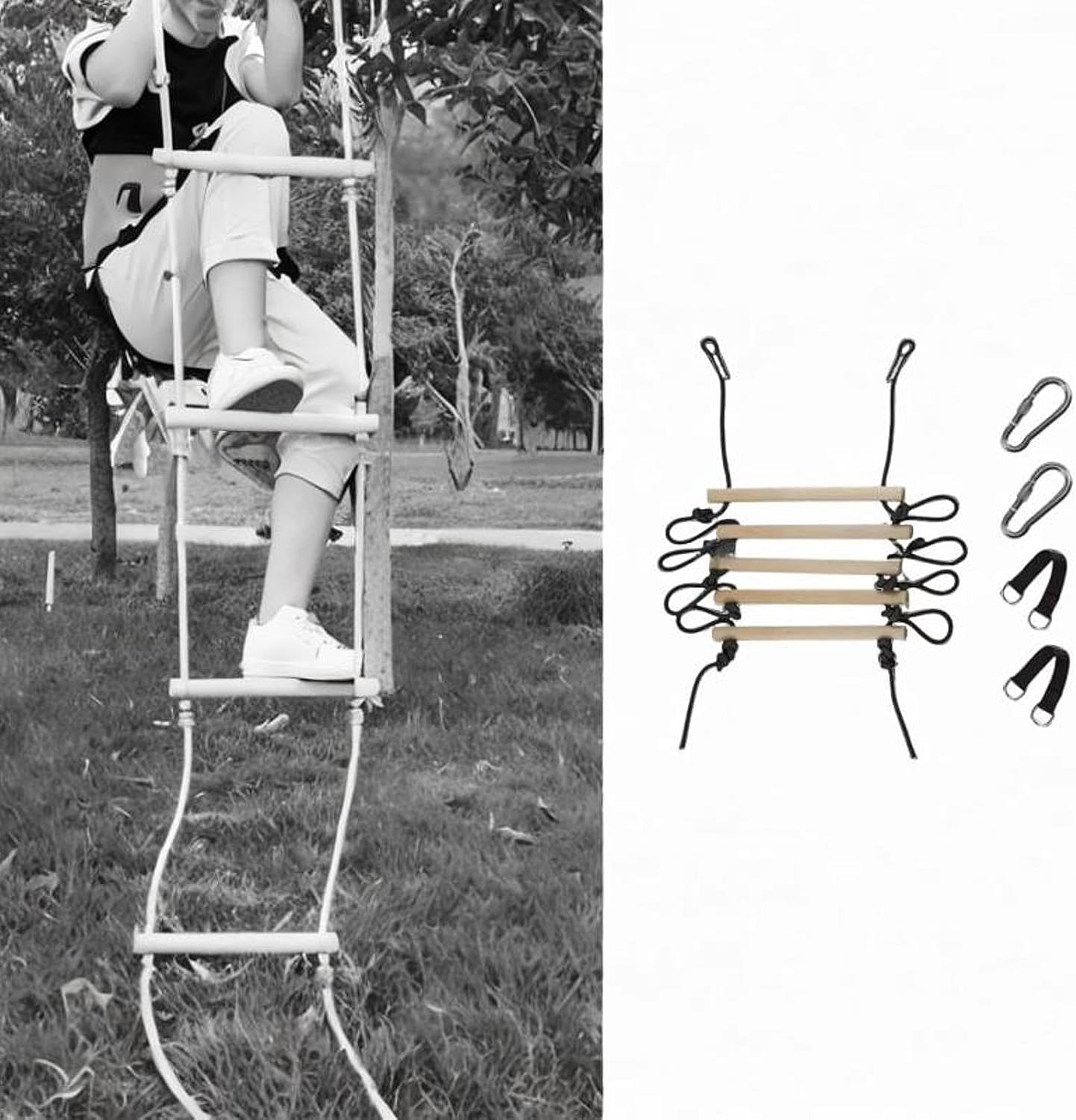 * 【Costruzione】: Realizzata in legno, questa scala da arrampicata per esterni è progettata per resistere agli elementi e offrire un'esperienza di gioco robusta e sicura per i bambini. * 【Divertimento versatile all'aperto】: ideale per varie attività all'aperto come percorsi a ostacoli o altalene, questa scala da arrampicata in legno aggiunge e avventura a qualsiasi area di gioco * 【Migliora la forma fisica】: questo set da arrampicata incoraggia i bambini a impegnarsi in giochi attivi, promuovendo lo sviluppo della e l'agilità all'aperto * 【Dimensioni】: Con dimensioni di 160x30 cm, questo set da arrampicata è ideale per i giovani avventurieri, offrendo per migliorare il loro sviluppo fisico e la coordinazione * 【Set completo incluso】: il pacchetto include tutto il necessario per l'installazione, tra cui una scala di corda, due moschettoni e due cinghie, garantendo un'installazione sicura nel tuo cortile o parco giochi