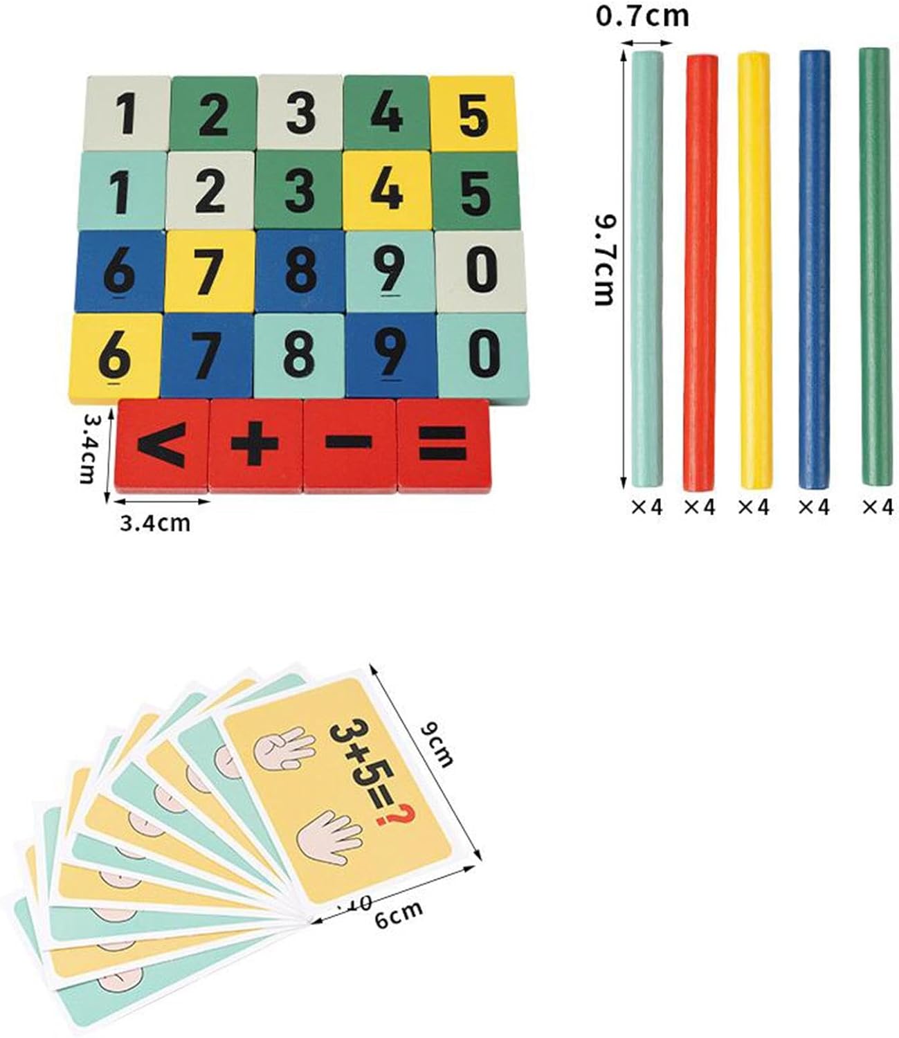 * 【Giocattolo per l'apprendimento precoce】: questa lavagna in legno stimola la curiosità del tuo bambino. il conteggio con le dita, l'aritmetica di base e il riconoscimento dei numeri in un'esperienza coinvolgente e pratica, rendendola la base perfetta per le competenze prescolari e dell'asilo. * 【Materiale di alta qualità】: realizzato in legno robusto e di qualità, resistente alle deformazioni, questo giocattolo per l'apprendimento della matematica è costruito per durare. Ogni bordo è levigato per essere delicato sulle manine dei più piccoli, mentre i colori brillanti e resistenti catturano l'attenzione del bambino. * 【Giocattoli educativi】: il tavolo da gioco in legno aumenta il divertimento della tavola piena di attività. Esercizi di addizione e sottrazione abili coltivano il pensiero logico, esplorano le relazioni numeriche, imparano le regole dei numeri, aggiungono e sottraggono numeri entro 10 e confrontano i numeri * 【Giocattolo interattivo】: i bambini possono comprendere intuitivamente addizioni e sottrazioni entro il 10, confrontare numerici e sviluppare il pensiero logico attraverso operazioni pratiche e intelligenti. Il set include carte bifacciali con diverse equazioni, offrendo ore di pratica efficiente e divertente per costruire solide basi matematiche. * 【Bel regalo】: il tavolo da gioco per bambini con giocattoli sensoriali in legno è un bel regalo per bambine e bambini in occasione di compleanni e feste, sviluppa le capacità di apprendimento della matematica