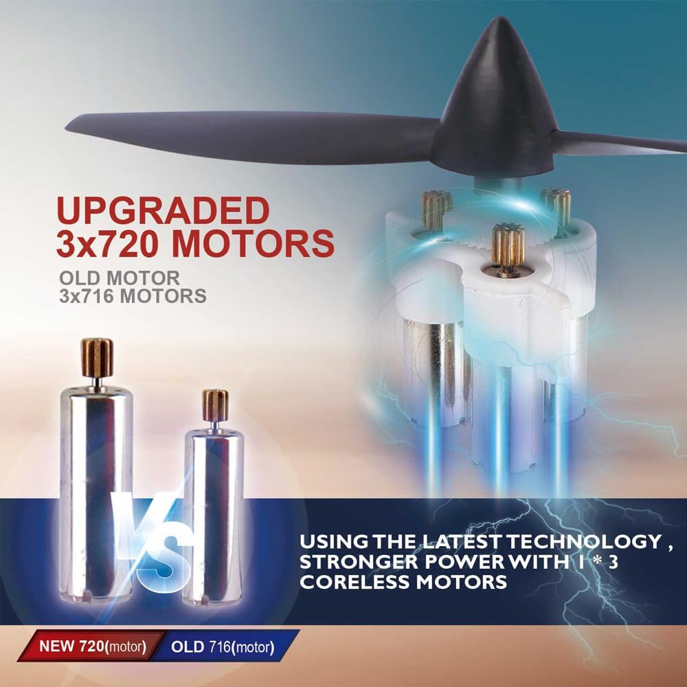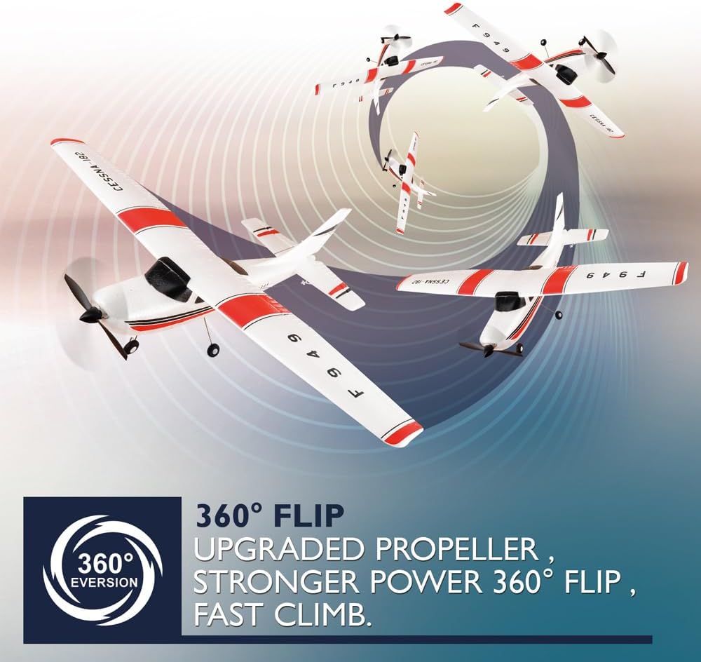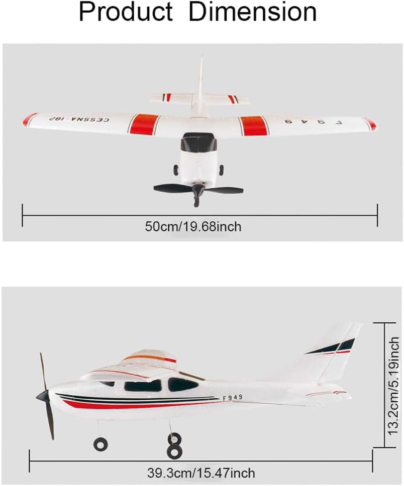 MATERIALE. L'aereo F949 telecomandato si basa sul modello originale Cessna-182 e colpisce per il suo design accattivante. L'aereo telecomandato ad ala fissa è realizzato in materiale composito EPP, leggero, a basso impatto e facile da pilotare. GIROSCOPIO INTEGRATO. Il giroscopio a 6 assi integrato garantisce un volo più stabile. Per impostazione predefinita, l'aereo è in modalità giroscopio, che consente un volo regolare e manovre facili e flessibili. DISTANZA DEL VOLO. Telecomando LCD da 2,4 GHz con lunga distanza di controllo e distanza di volo fino a 200 metri. MOTORE 720 AGGIORNATO. Combinazione di tre motori coreless per una maggiore potenza motrice. Dotato di una batteria ad alta capacità da 500 mAh, il velivolo telecomandato può essere utilizzato per circa 25 minuti dopo essere stato completamente caricato. CARICATORE USB A 4 FORI Rispetto al tradizionale caricatore a foro singolo, il nostro caricatore USB può caricare quattro batterie contemporaneamente con una maggiore efficienza di carica.