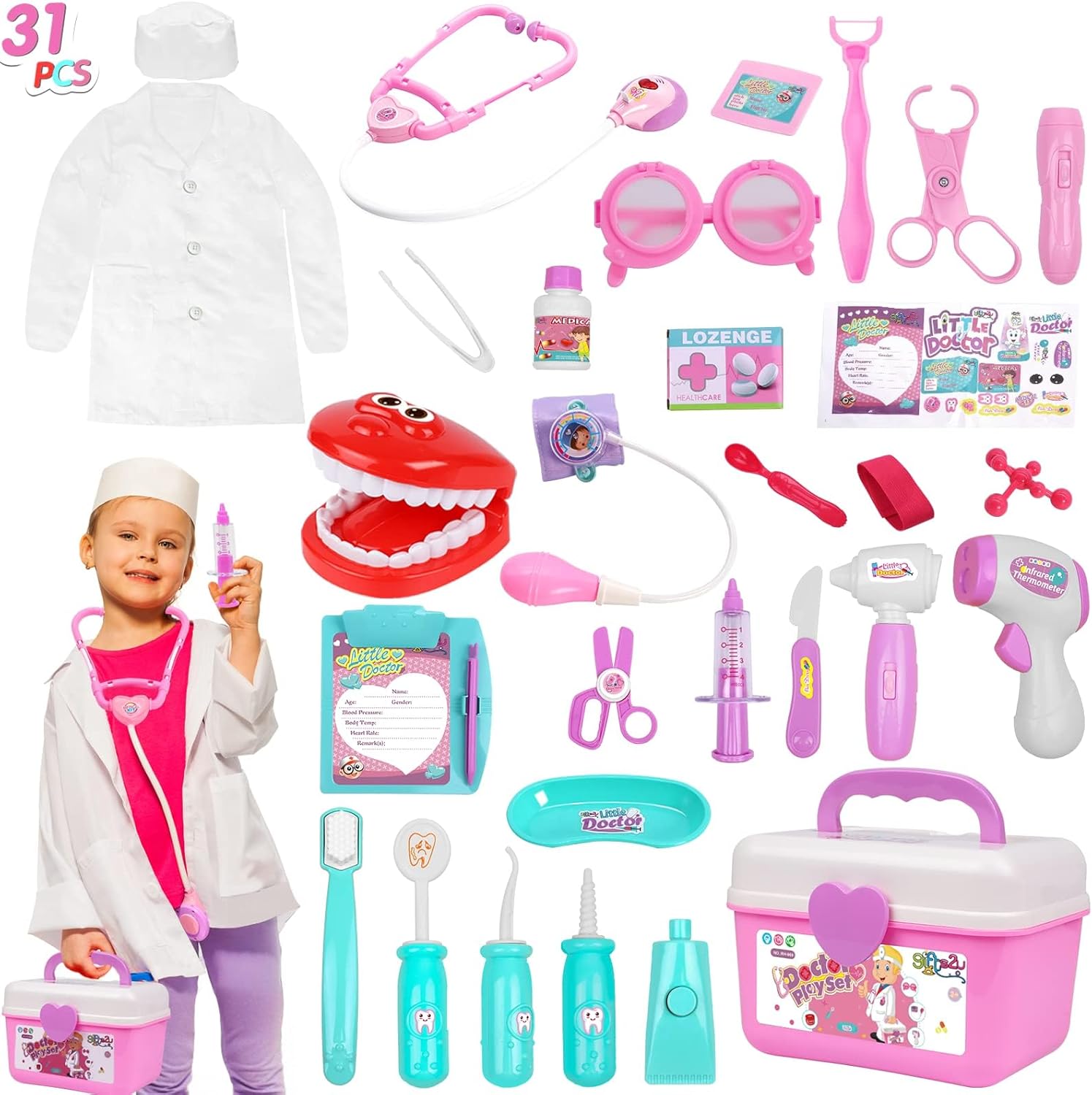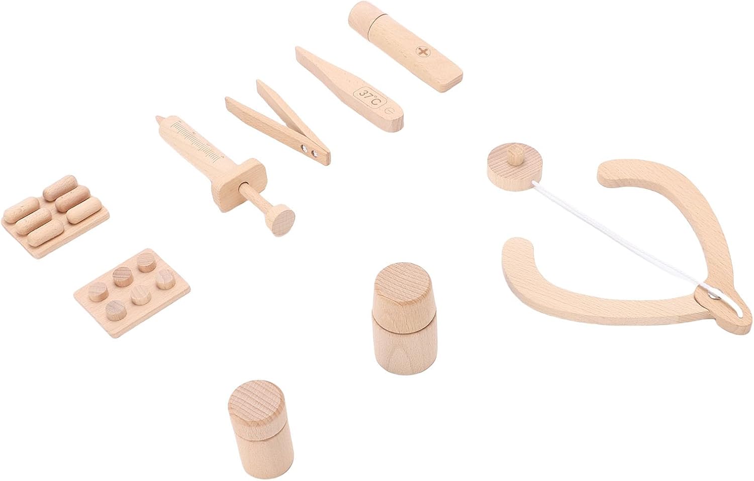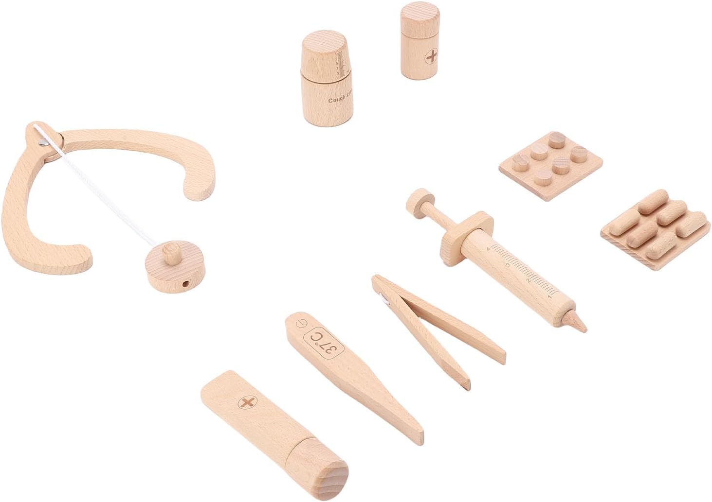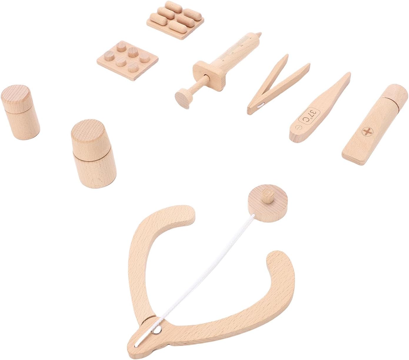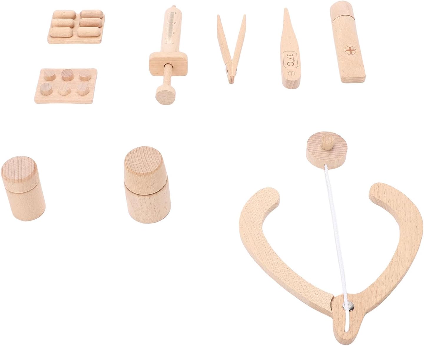 [MIGLIORA L'IMMAGINAZIONE CREATIVA] Lascia che tuo figlio assuma il ruolo di un medico con questo set da gioco in legno che incoraggia la creatività e il gioco fantasioso. [PROMUOVE LE COMPETENZE SOCIALI] Incoraggia il gioco cooperativo e l'empatia quando ti travesti e partecipi a giochi di ruolo interattivi da dottore. [MATERIALE SICURO E DUREVOLE] Questo set di giocattoli è realizzato in legno di faggio, garantendo sicurezza e atossicità per i bambini dai 2 ai 6 anni. [EDUCATIVO E DIVERTENTE] Insegna ai bambini i concetti medici di base con lo stetoscopio e i dispositivi medici per promuovere la comprensione della salute. [MIGLIORA LE CAPACITÀ MOTORIE FINE] Coinvolgi le piccole mani in attività stimolanti con blocchi di legno e accessori visivamente accattivanti per migliorare la coordinazione occhio-mano.