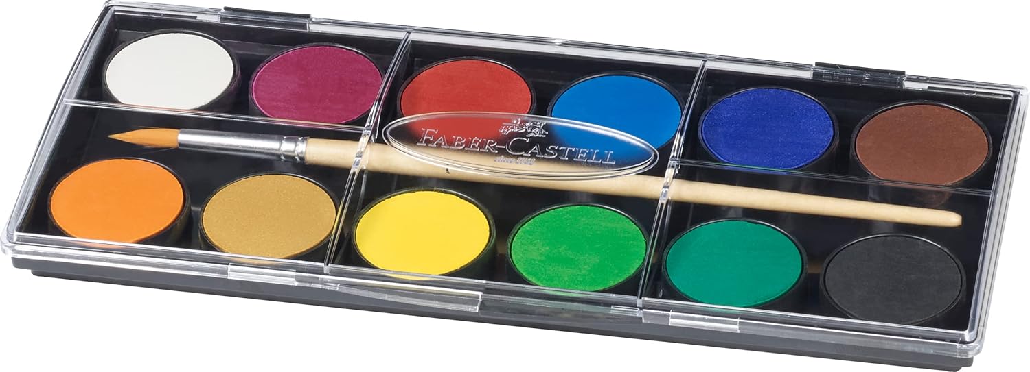 Pastiglie di tempera acquerellabili con colori brillanti e coprenti Diametro di 30 mm Lavabili con acqua e sapone Ottima resistenza alla luce La confezione dispone anche di un pennello