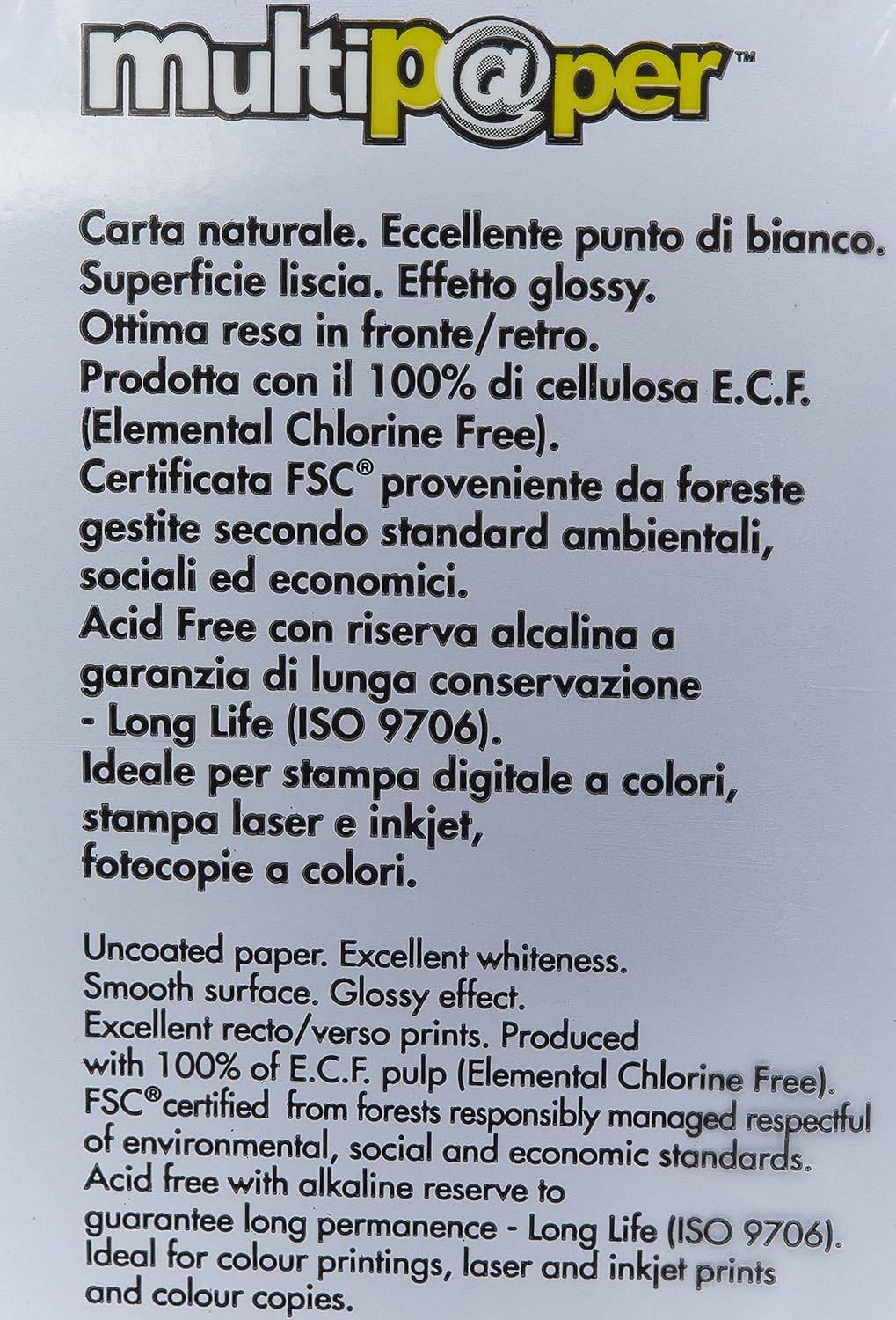 Adatto a tutti i tipi di stampanti Carta bianca non patinata Eccellente bianchezza Superficie liscia lucida Senza acidi