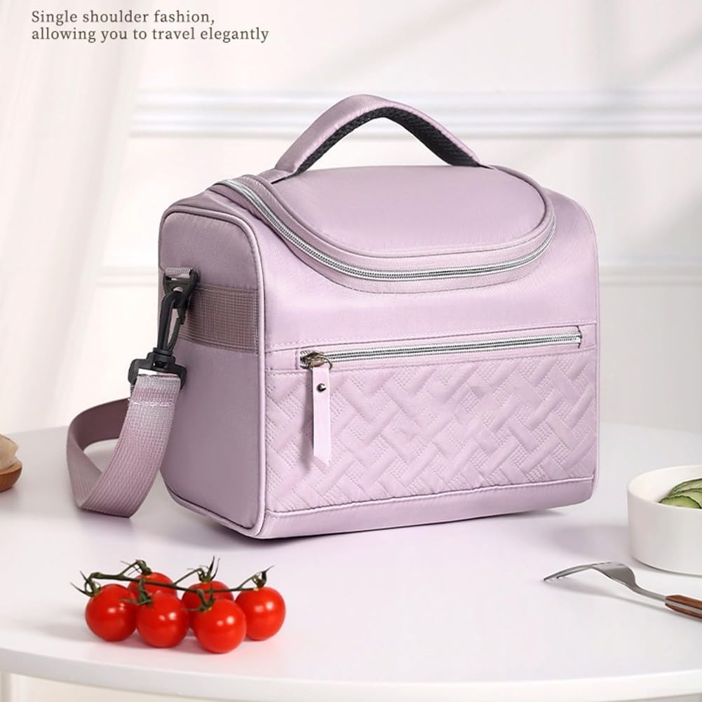 [Spazio spazioso] Con dimensioni di 7 L x 6,2 W x 8,2 H, questa borsa termica per il pranzo offre ampio spazio per pranzo, bevande e snack, il tutto in una posizione comoda. [Triplo isolamento] Progettato per mantenere il cibo alla giusta temperatura fino a 8 ore, rendendolo per gite come picnic e pranzi di lavoro. Fodera impermeabile: la robusta struttura in poliestere presenta una fodera in PEVA a tenuta stagna che garantisce pulizia e protezione contro le fuoriuscite. Multiuso: leggera con una tracolla regolabile, questa borsa funziona come contenitore per il pranzo, refrigeratore o borsa per la spesa. Design alla moda: una miscela di stile e praticità, questo portapranzo migliora la tua esperienza culinaria servendo anche come regalo premuroso.