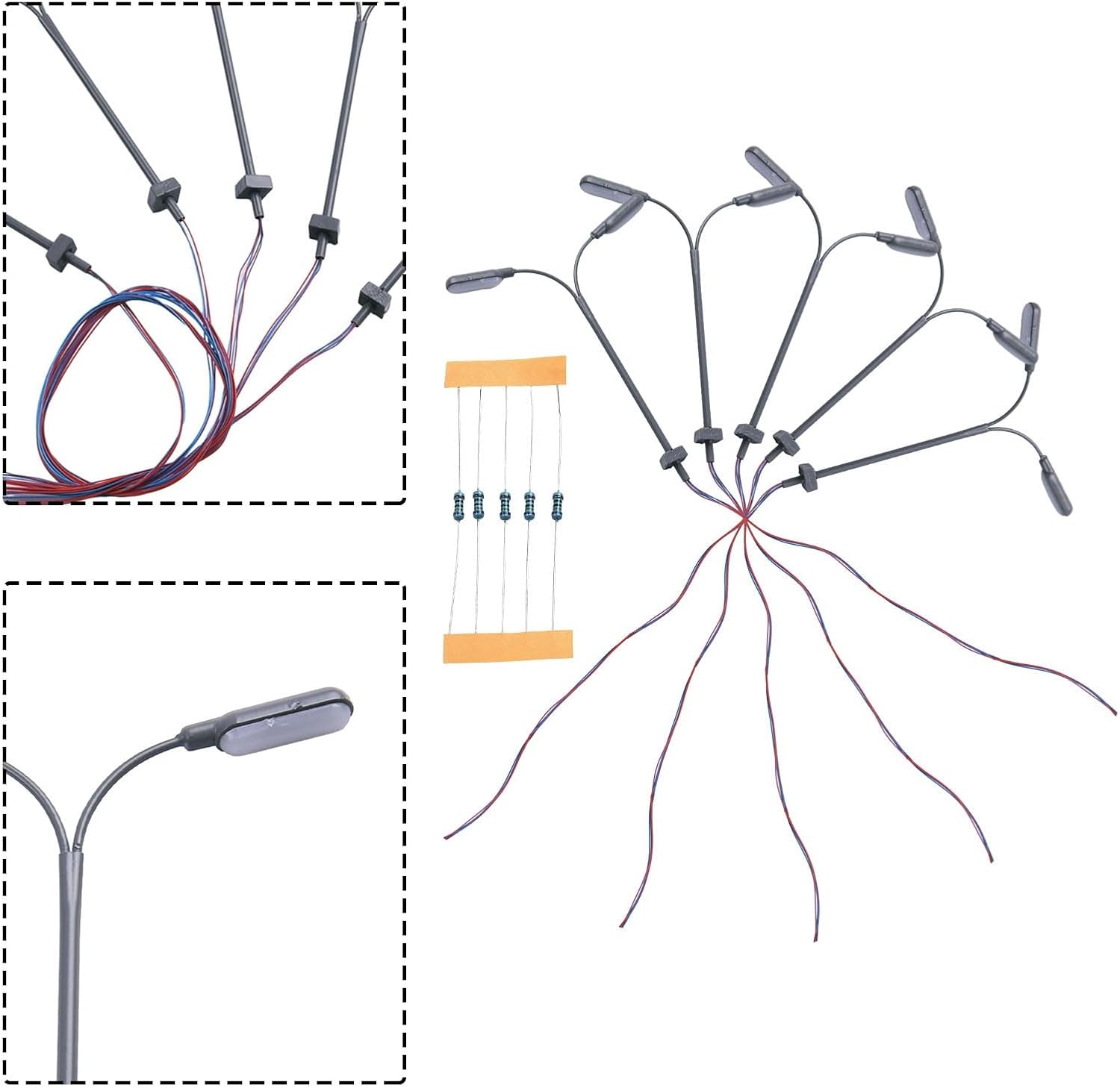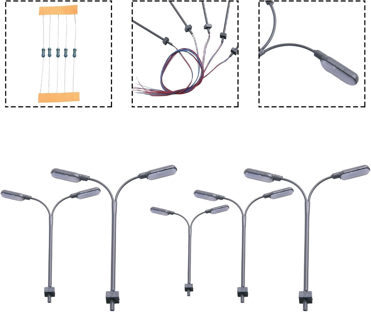 [AUTENTICHE LAMPADE MODELLI]: questi lampioni stradali a LED in scala 1:160 sono ideali per migliorare il layout dei modellini di treni e costruire dioram. Ogni set include 5 luci realizzate con cura per aggiungere un tocco di realismo al tuo mondo in miniatura. Splendida illuminazione a LED: con i LED luminosi, questi lampioni donano ai tuoi modelli una luce calda e realistica. I LED sono a risparmio energetico e di lunga durata per un'illuminazione costante del display. [OPZIONI FORTI VERSATILI]: queste lampade sono compatibili con entrambe le fonti di alimentazione CC e CA da 3 V e sono dotate di resistenze di collegamento in serie da 12-16 V. Questa flessibilità consente di integrarsi perfettamente con diverse configurazioni di alimentazione per il vostro modello ferroviario. [Scala e design di precisione]: questi lampioni sono realizzati in scala 1:160 e sono adatti per modellini di ferrovie N e diorami architettonici. La struttura tubolare in acciaio e i paralumi dettagliati offrono un aspetto realistico. [FACILE INSTALLAZIONE E UTILIZZO]: ogni lampada è pronta per essere utilizzata immediatamente nei tuoi layout. Con la corrente di funzionamento consigliata di 20 mA per LED, queste lampade sono progettate per un funzionamento sicuro e affidabile. Attenzione: non adatto ai bambini di età inferiore a 14 anni.