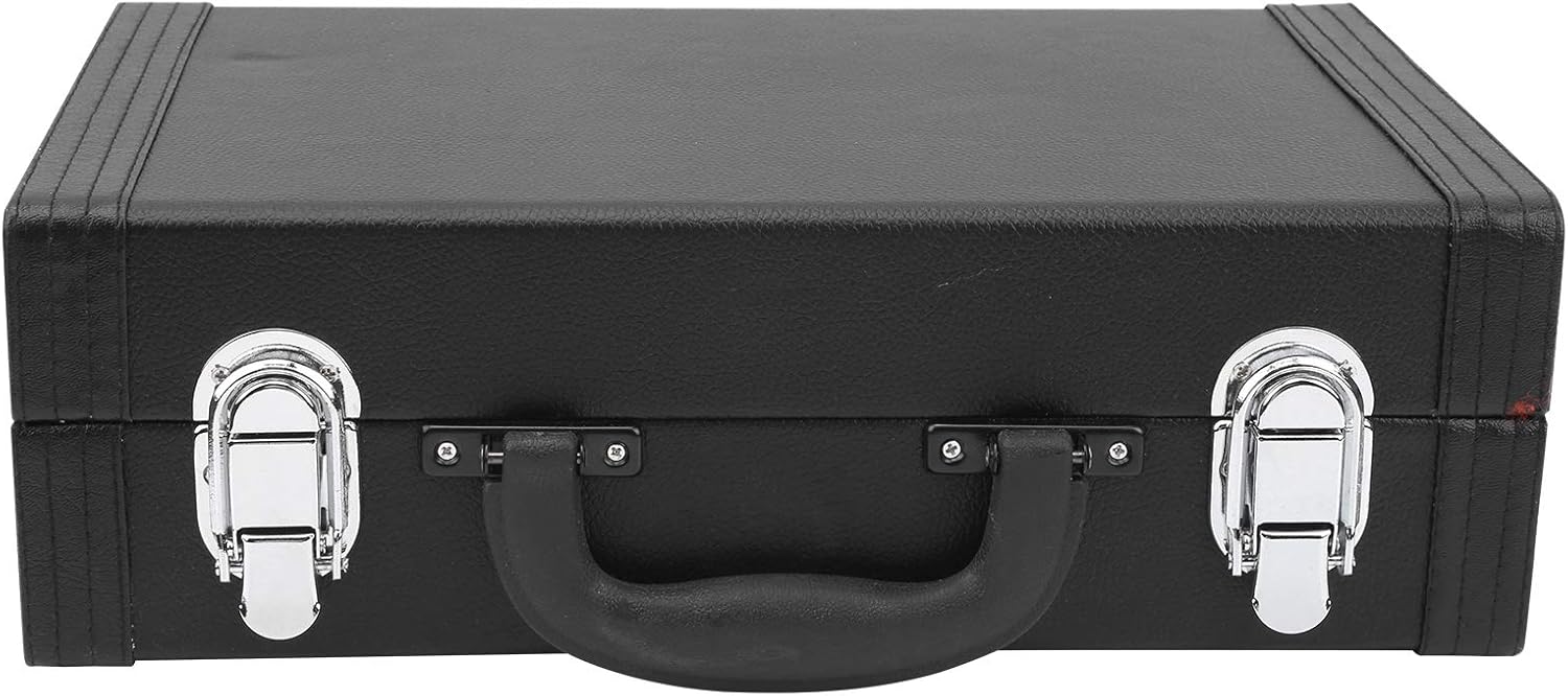 L'aspetto è semplice ed elegante, lo speciale design interno è resistente agli urti e il morbido tessuto di cotone riduce i graffi quando il clarinetto viene colpito. Ci sono quattro chiodi inferiori nella parte inferiore per ridurre la polvere quando la scatola tocca il suolo. La maniglia è morbida e confortevole ed è comodo trasportare il clarinetto. La custodia che utilizza una serratura forte non cade facilmente, il che garantisce maggiore sicurezza. Il rigoroso controllo di qualità e la garanzia della qualità, un elevato fattore di sicurezza, possono essere utilizzati in tutta tranquillità.