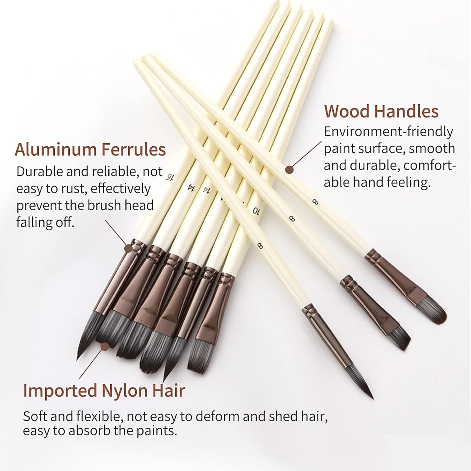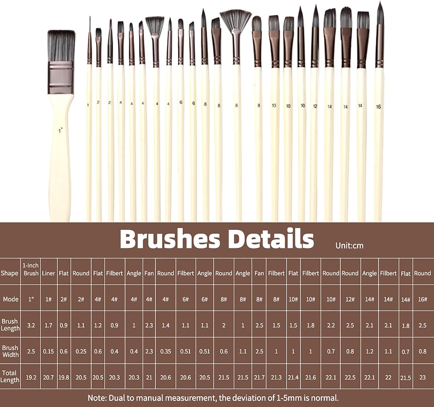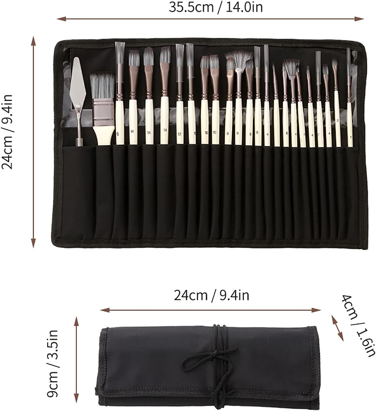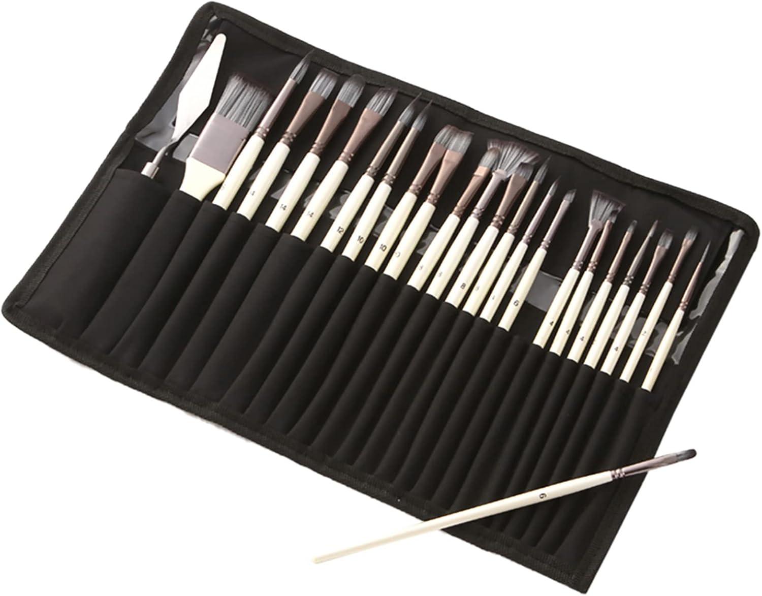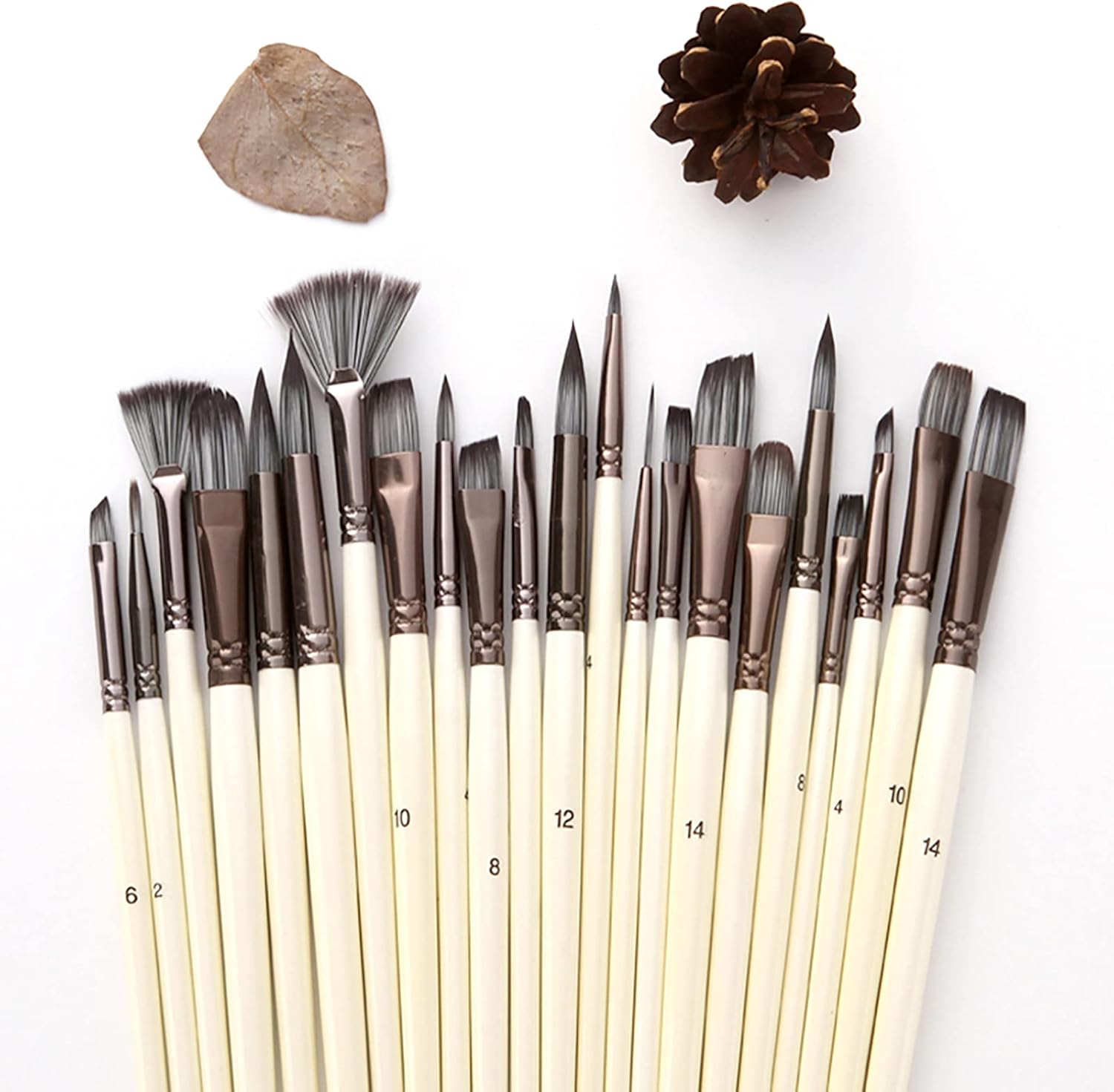 Uso multiuso: goditi la creatività con 23 diversi pennelli per varie esigenze di pittura Qualità premium: realizzato con capelli in nylon di alta qualità morbidi, flessibili e facili pulire Design ergonomico: presenta maniglie di legno bianco presa comoda e un controllo preciso Materiali durevoli: i ferruli in alluminio garantiscono un uso fermo e prevenire lo spargimento Portatile e comodo: viene fornito con una porta di stoffa utili per un facile stoccaggio e trasporto