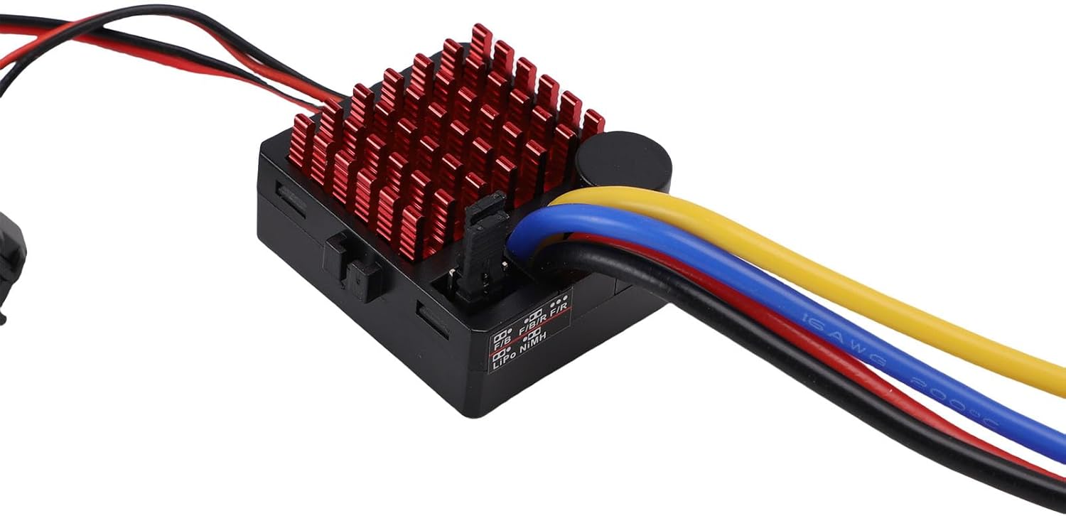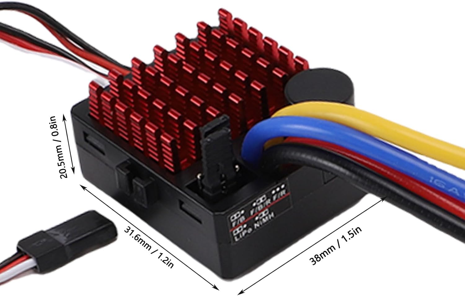 [Regolazione semplice] Semplifica la configurazione con il tappo di regolazione incluso, consentendo una regolazione semplice e veloce dei parametri per vari modelli RC tra cui auto, barche e carri armati. Questa funzionalità di facile utilizzo consente di risparmiare tempo e garantisce prestazioni ottimali su misura per le vostre esigenze specifiche. [Prestazioni elevate] Utilizzando 8 resistenze interne basse e tubi MOS ad alta corrente, questo regolatore elettronico di velocità offre un'eccezionale gestione della corrente con un'uscita continua di 60 A e una capacità di picco di 480 A. Il design efficiente riduce al minimo la generazione di calore, consentendo un uso prolungato senza surriscaldamento, anche con carichi pesanti. [Protezione avanzata] Dotato di rilevamento automatico dell'acceleratore, questo controller ha molteplici funzioni di sicurezza come la protezione della temperatura della batteria al litio e la protezione anti-fuga. Queste protezioni garantiscono prestazioni stabili e affidabili, prevengono danni alla tua attrezzatura e migliorano la tua esperienza RC complessiva. [Controllo versatile] Questo controller elettronico di velocità della spazzola da 60 A offre tre diverse modalità operative tra cui marcia avanti con freno, retromarcia avanti con freno e retromarcia avanti senza freno, fornendo una flessibilità senza pari per i tuoi veicoli o barche RC. Che tu stia gareggiando sulla terra o navigando sull'acqua, puoi facilmente cambiare modalità in base alle tue esigenze. [Design robusto] Progettato per ambienti difficili, questo controller presenta un design impermeabile e antipolvere che garantisce prestazioni affidabili in condizioni umide o polverose. Si integra perfettamente con i motori 540, 550 e 750, rendendolo versatile per vari modelli RC. La struttura robusta garantisce una lunga durata.