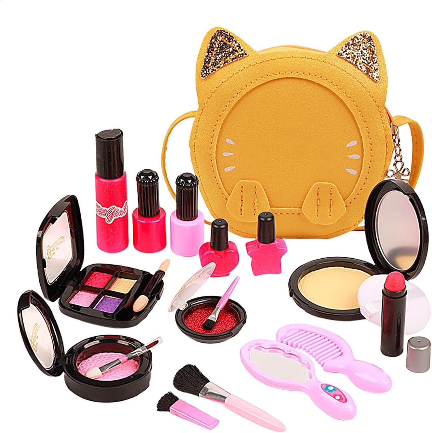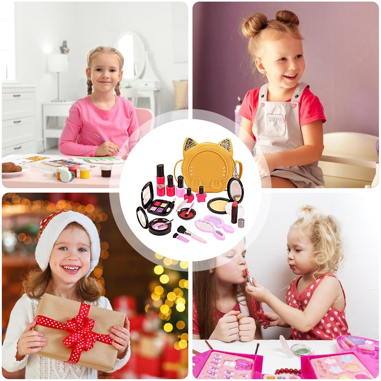 Accessori variabili: lascia correre l'immaginazione di tuo figlio con questo set di trucchi da gioco multifunzionale. Dai pennelli per il trucco al rossetto, dall'ombretto allo smalto e persino un pettine e altri accessori, questo set versatile è perfetto per ore di divertimento e creatività. 【Ampia applicazione】 Questo set di trucchi da gioco offre un mondo di possibilità creative, incoraggia le capacità motorie, il gioco fantasioso e lo sviluppo di abilità pratiche. I bambini esercitano la pazienza e sviluppano un tocco artistico ad ogni utilizzo. Sicuro da usare: il nostro set per il trucco da gioco è realizzato in robusto materiale ABS, estremamente resistente e non facile da deformare. Con bordi morbidi e arrotondati che garantiscono la sicurezza del tuo bambino mentre gioca,Facile da trasportare: il nostro set di trucchi da gioco è perfetto per bambini dai 3 anni in su e include una custodia con cinghia in modo che tutti gli accessori inclusi possano essere facilmente organizzati e trasportati. Porta il divertimento ovunque tu sia.,Incoraggia le attività sociali: il nostro set di trucchi da gioco offre ai bambini un modo divertente per trascorrere del tempo con la famiglia e gli amici, promuovendo la connessione e aumentando l'amicizia. Serve come strumento per attività di legame di qualità che uniscono tutti e creano ricordi preziosi