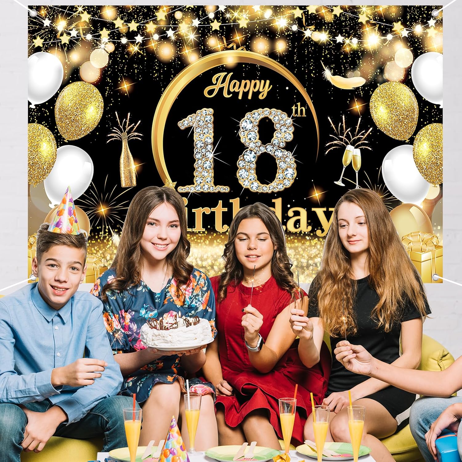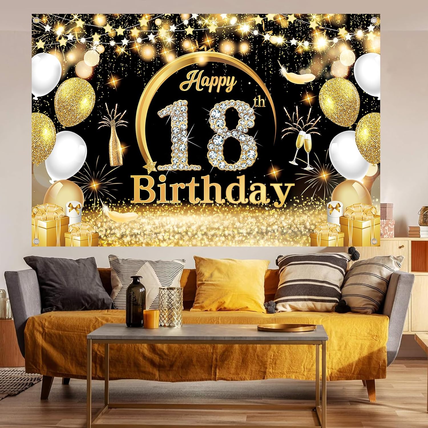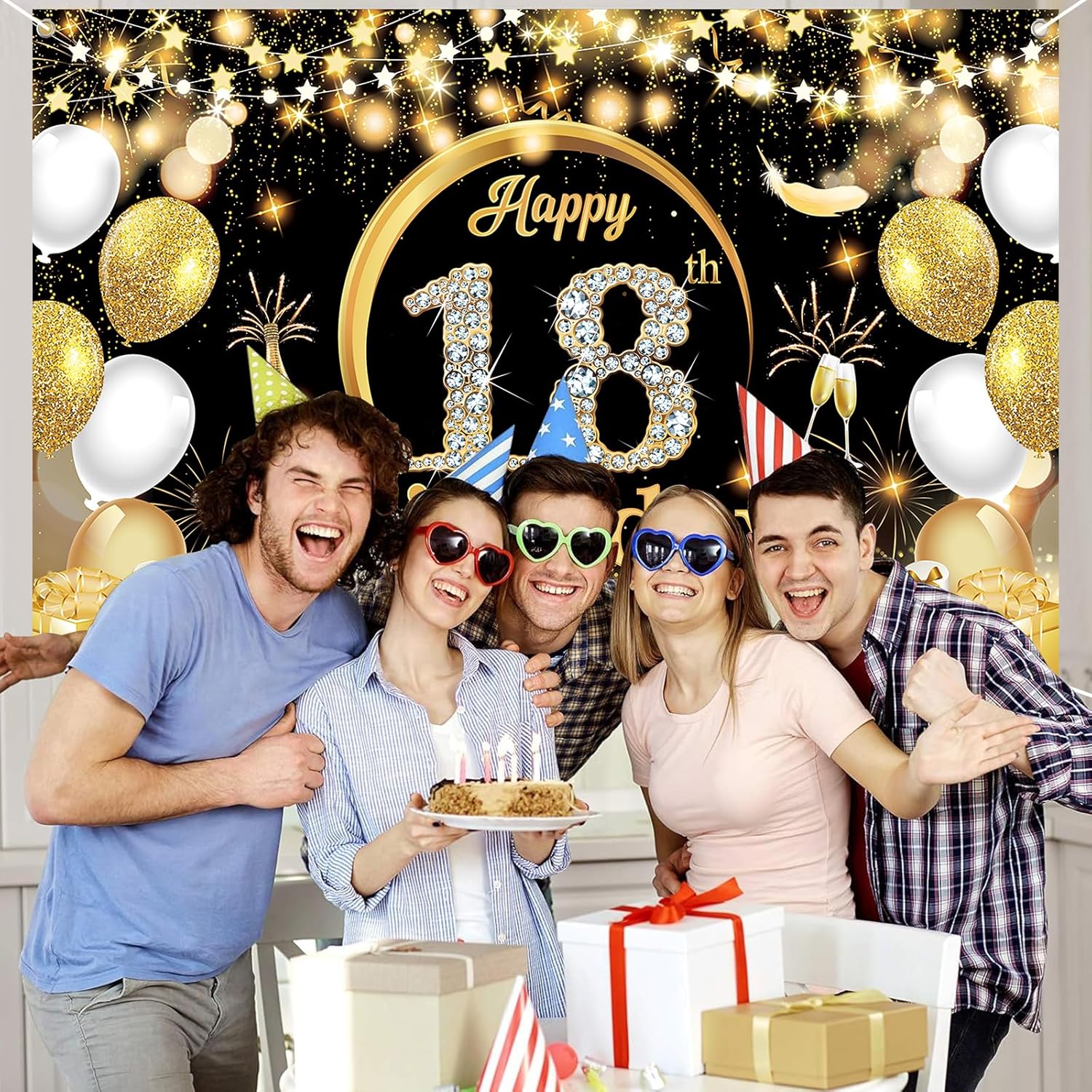 😃 [L'imballaggio Include] Il nostro 18 ° bandiera di buon compleanno comprende 1 pezzo di bandiera di buon compleanno di 18 anni, viene fornito con una corda. Le dimensioni sono 59,05 x 39,37 pollici / 150 x 100 cm, che sono abbastanza grandi per le decorazioni di compleanno e la fotografia. 😃 [Design Unico] 18° buon compleanno banner design nero e oro con palloncini scintillanti, stelle, fuochi d'artificio e streamer. La stampa digitale ad alta risoluzione crea immagini nitide per un pezzo centrale di compleanno accattivante. Il materiale resistente alle rughe garantisce una facile installazione e un impatto duraturo. Perfetto per famiglie o feste di pietra miliare. 😃 [Materiale di Qualità] Fatto di vinile, leggero ma spesso; Lo sfondo del muro di compleanno può essere piegato e facile da trasportare, lavabile e resistente alle lacrime, adatto per la tua festa di compleanno. 😃[Ampia Applicazione] Crea ricordi indimenticabili con il nostro Happy Birthday Background Banner! Progettato per trasformare istantaneamente qualsiasi spazio in un'atmosfera vibrante e pronta per feste. Questa decorazione versatile è perfetta per compleanni, feste a tema, baby shower, fotografia di prodotti, espositori a parete e molto altro ancora: semplicemente svolgetevi e guardate la magia accadere! 😃 [Facile da Usare] Dotato di una spessa corda lunga e 4 robuste fibbie in rame ad ogni angolo, può essere appenso senza sforzo in pochi minuti, adatto per feste domestiche, luoghi o eventi all'aperto.