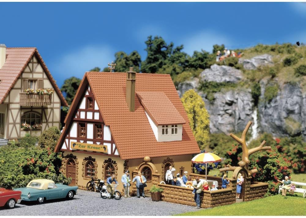 Guest house con vano: La piccola locanda di FALLER dell'epoca 3 con struttura a graticcio e annessa birreria all'aperto ricorda una locanda del sud della Germania Contenuto del kit: il kit FALLER contiene: 42 pezzi singoli in 8 colori, pellicola per finestre, 1 maschera per tende e 1 istruzioni di montaggio (lingua italiana non garantita). Estensibile con illuminazione/elettricità. Utilizzare la colla per plastica Faller per il fai da te CATEGORIA CASE PER GLI OSPITI & GASTRONOMI: FALLER ha molti accessori modellini ferroviari e numerose categorie come case a schiera, sistema auto e figure, mondo degli affari desideroso, bancarelle fiere e bancarelle, luce ed elettronica, accessori utili e molto altro ancora Livello di difficoltà: il kit FALLER ha un semplice livello di difficoltà ed è quindi molto adatto come starter set H0 FALLER: Il Gebr. FALLER GmbH è di piccole dimensioni. I kit di costruzione e gli accessori abbinati per la realizzazione di modelli sono stati prodotti da oltre 75 anni. Tutto sul treno e tutto per il tuo sistema di modellismo