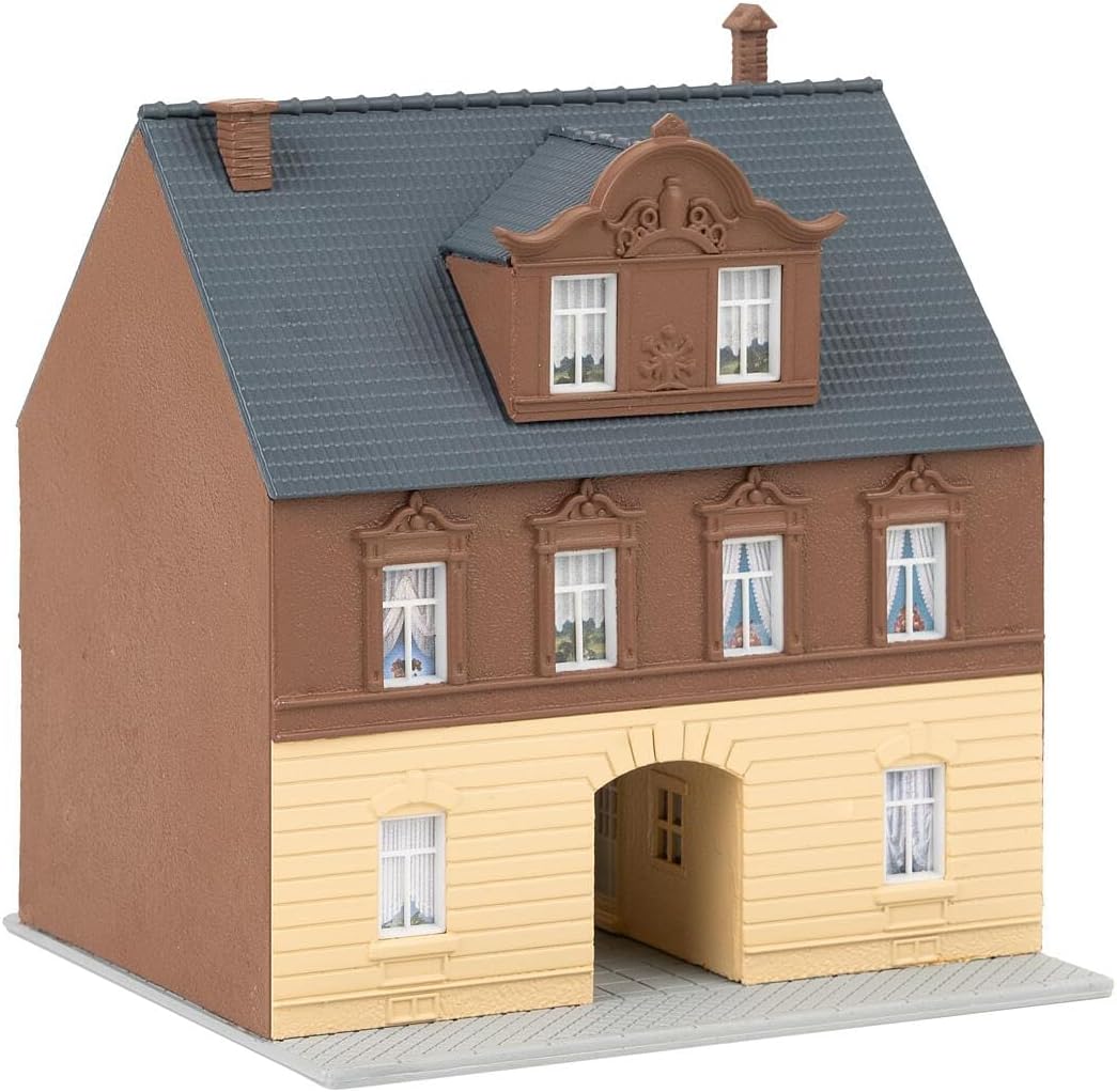 Dimensioni del modello: 93 x 88 x 101 mm Scartamento: N – Scala: 1:160 Epoca: Moderata - Livello di difficoltà: moderata Questo kit contiene: 62 pezzi in 5 colori, pellicola per finestre, 1 maschera per tende e 1 manuale di istruzioni (lingua italiana non garantita). Utilizzare colla di plastica per fai da te FALLER EXPERT.