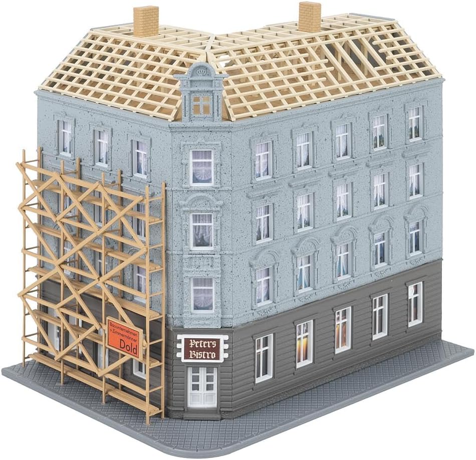 Questa casa ad angolo in ristrutturazione dà vita a qualsiasi centro città! Nel seminterrato c'è un bistrot, il tetto e la facciata sono in ristrutturazione Anche nel mondo in miniatura a volte deve essere rinnovato