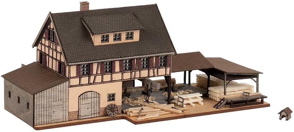 L"odore del legno appena tagliato e della segatura, il forte rumore di un ruscello insieme al tintinnio uniforme della ruota d"acqua trascinano attraverso la vecchia segatura con i loro amorevoli elementi a graticcio e persiane rosse. Una piccola cuccia per cani e tutti i tipi di elementi in legno completano il modello in miniatura e quasi si possono immaginare i lavoratori in miniatura laboriosi al lavoro. Un'occasione perfetta per dare un po 'di dettaglio storico all'impianto di modellismo.