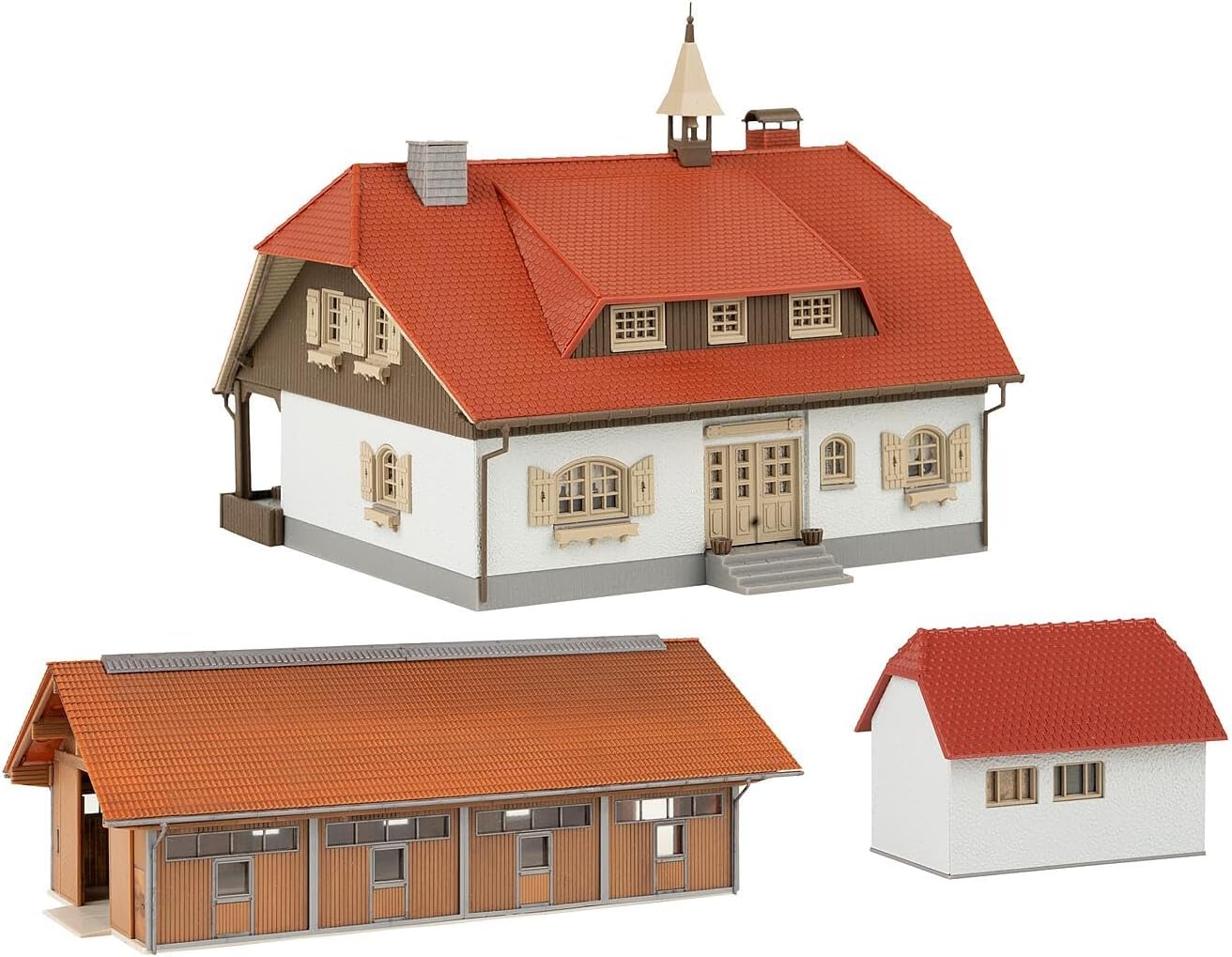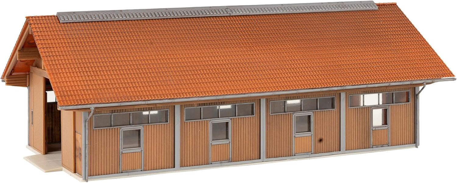 Dimensioni del modello: 162 x 152 x 130 mm, 265 x 148 x 95 mm, 65 x 46 x 47 mm Scartamento: H0, scala: 1:87 Epoca: Impegnativo - Livello di difficoltà: impegnativo Questo kit contiene: 356 pezzi in 11 colori, pellicola per finestre, 1 maschera per tende, 2 decorazioni e 2 istruzioni di costruzione. Utilizzare colla di plastica per fai da te FALLER EXPERT.