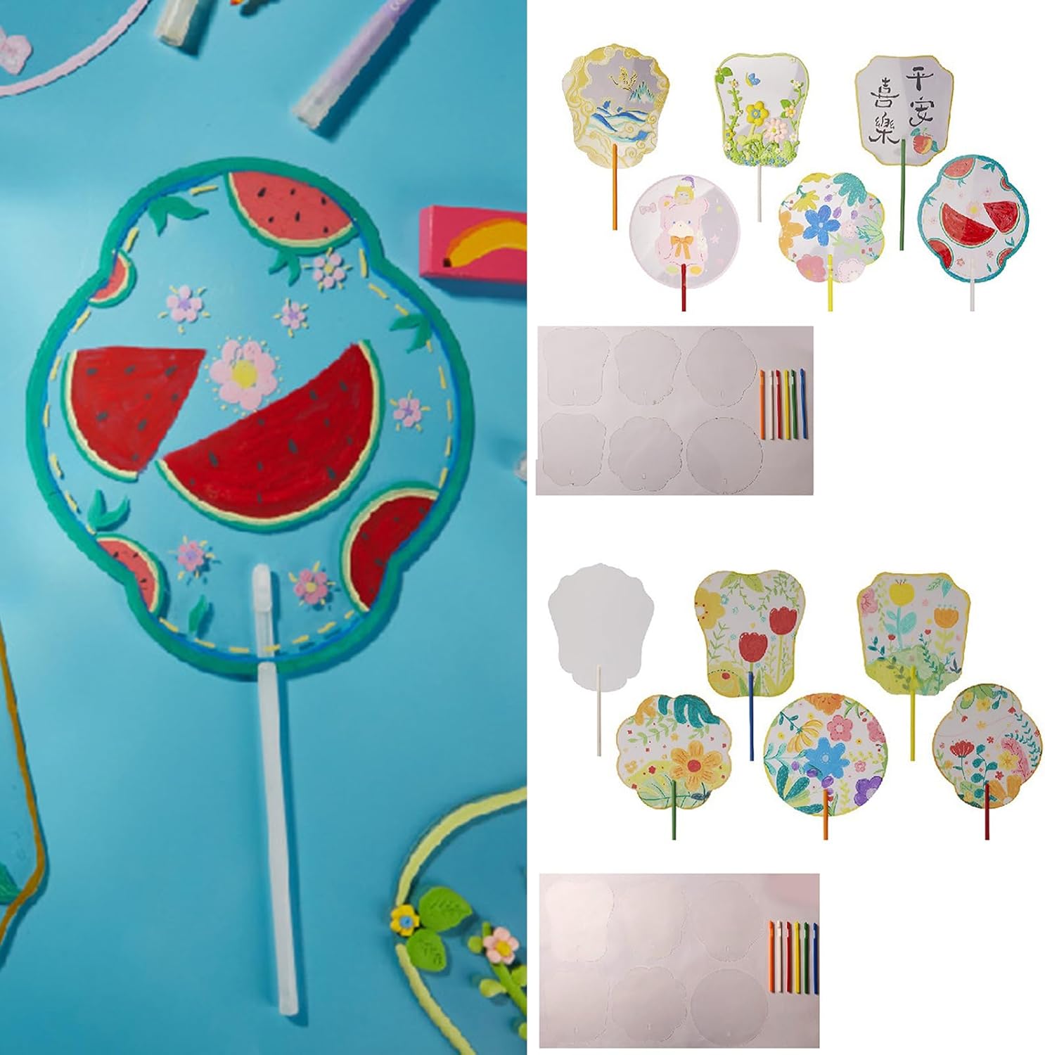 Ideale per gli appassionati di artigianato e coloro che cercano un tocco personalizzato, si rivolge sia ai principianti che agli esperti. Abbraccia la felicità di creare e aggiungere colore alla tua vita con questo squisito kit per la creazione di ventagli, trasformando un semplice accessorio in una dichiarazione di stili. Crea il tuo ventilatore dipinto a mano a casa, in studio o durante le lezioni d'arte; è anche un ottimo regalo per familiari e amici o un'aggiunta unica a matrimoni e spettacoli teatrali. Questo set completo include un ventilatore trasparente e un manico a ventaglio (vernici e pennelli non sono inclusi Scatena la tua creatività con il nostro kit di ventagli dipinti a mano, una grande miscela di arte tradizionale ed espressione personale.