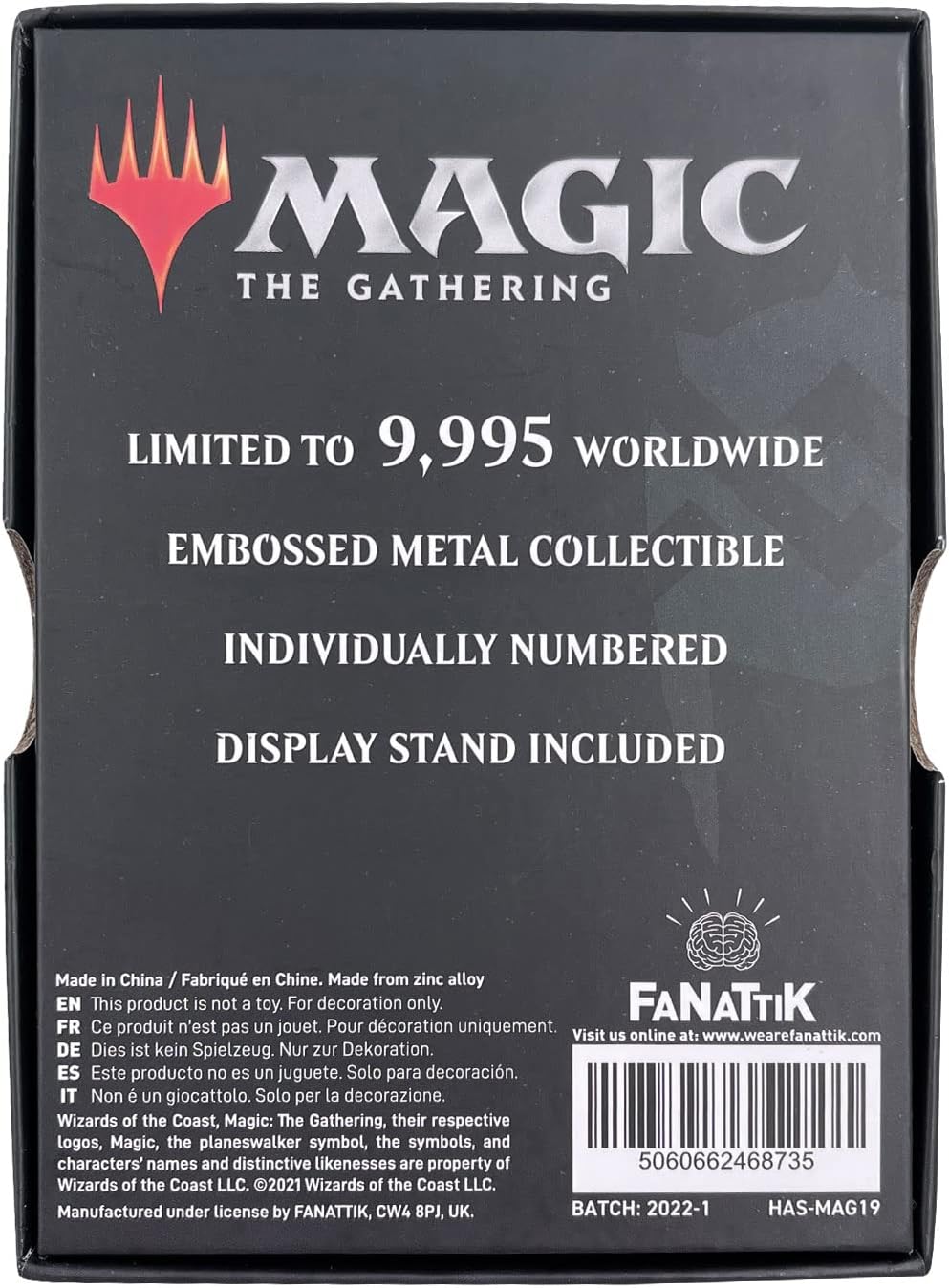 Accessori MTG - Dai vita al mondo di Magic The Gathering con questo lingotto Garruk in edizione limitata Collezionali tutti: Inizia la tua collezione qui e ora! Raccogli tutti i lingotti, medaglioni e monete da collezione dai tuoi giochi, film, programmi TV e fumetti preferiti! Masters Of Metalwork: pesantemente goffrato su entrambi i lati, con dettagli intricati e lavorazione di alta qualità "Edizione limitata - Numerato individualmente da collezione per un'aggiunta unica nel suo genere alla tua collezione. Ogni articolo è unico e speciale, rendendolo una preziosa aggiunta a qualsiasi collezione. Viene fornito in una scatola di presentazione splendidamente progettata, perfetta per esporre e regalare e include un espositore per una facile presentazione " Fanattik - la pluripremiata azienda mondiale di regali e oggetti da collezione che dà vita ai tuoi film e videogiochi preferiti. Con oltre 15 anni di esperienza lavorando a stretto contatto con i più grandi nomi dell"intrattenimento. La nostra passione per tutto ciò che riguarda la cultura pop si riflette in ogni prodotto che creiamo, da oggetti da collezione di alta qualità a regali unici che delizieranno qualsiasi fan