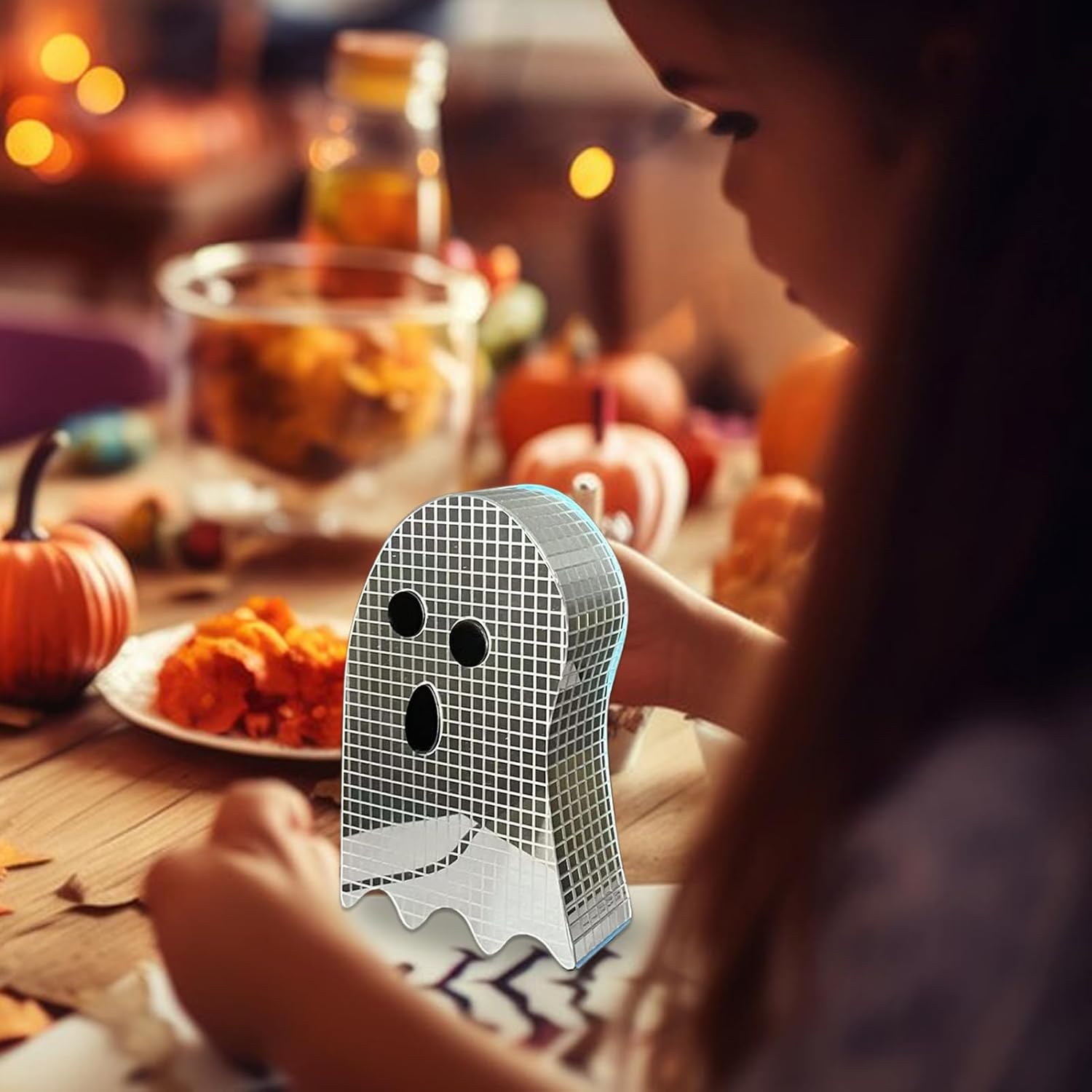 Display visivo affascinante: ottieni un coinvolgimento visivo eccezionale con riflessione dinamica della luce e rifrazione abbagliante, realizzato con superfici acriliche rivestite di luce per fornire un'esperienza decorativa affascinante in interni Stile Ghost-Disco Fusion: crea un design a specchio circostante con superfici riflettenti, decorazione interna che migliora la percezione spaziale e fornisce un accattivante stile fusion Phantom Disco, ideale per creare un impatto visivo artistico festivo in qualsiasi ambiente Ampia compatibilità: progettata per soddisfare le esigenze Per migliorare l'arredamento natalizio dell'armadio o servire come pezzo da tavolo, questa decorazione offre un posizionamento stabile con opzioni versatili, si fonde facilmente con gli espositori da scrivania e completa le impostazioni delle feste a tema DIVERSI STILI COMBINABILI - Ottieni un aspetto decorativo speciale con modelli mix-and-match che consentono diverse combinazioni di stili e set di forme di colore, adattabili a diverse composizioni estetiche Strumento di coinvolgimento dello spazio: eleva il tuo spazio con un brillante potenziatore dell'umore a specchio, ideale per esperienze coinvolgenti di Halloween e decorazioni atmosferiche, migliorando il divertimento di qualsiasi riunione di festa