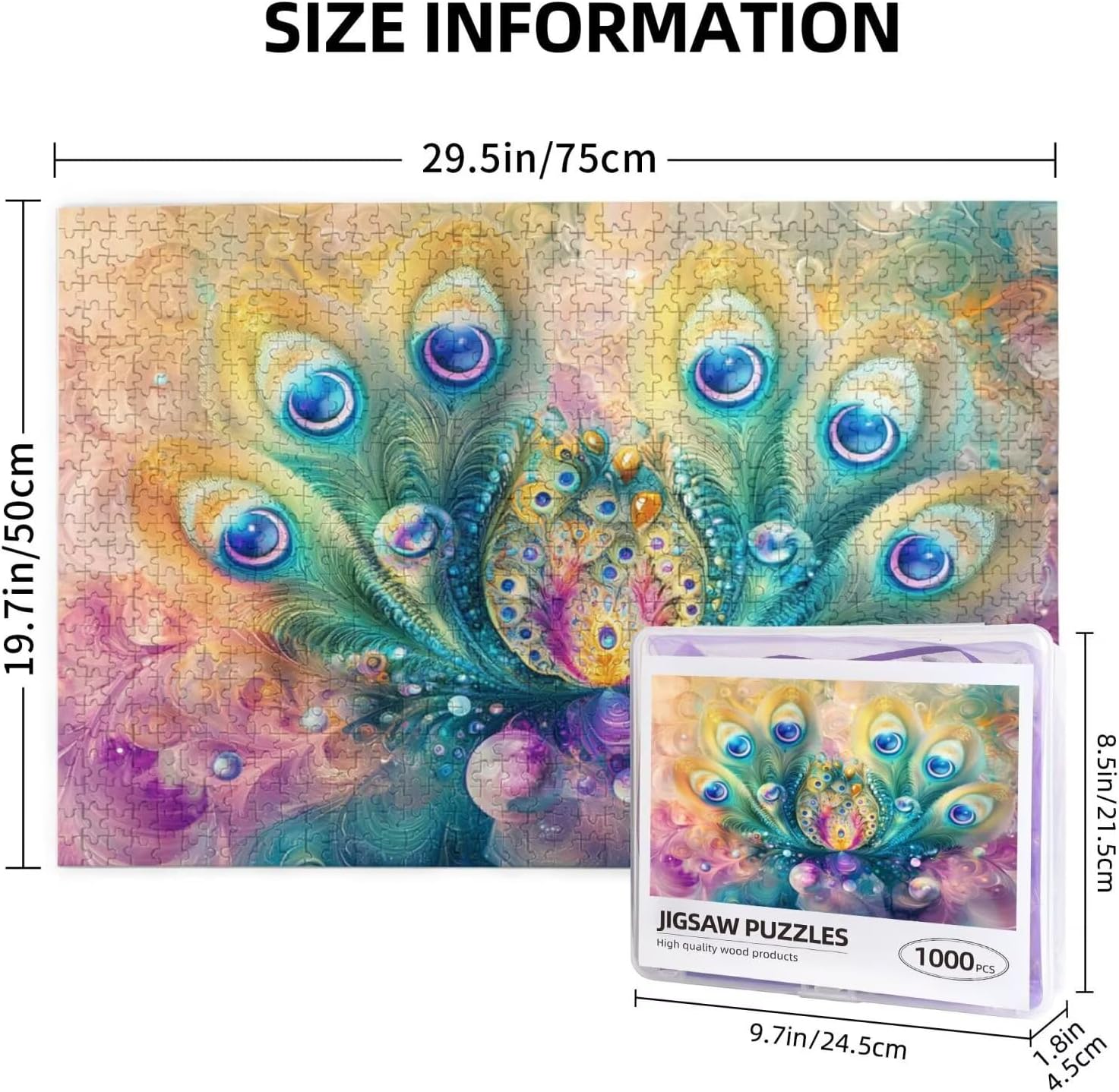 Fantastico Puzzle 5000 Pezzi Adulti,5D DIY Puzzle Pavone Pattern Design con Confezione Regalo per Regalo Donna,Attività Famiglie Impegnative Principianti per Home Wall Bedroom Decor 105 x 156 cm -928Y