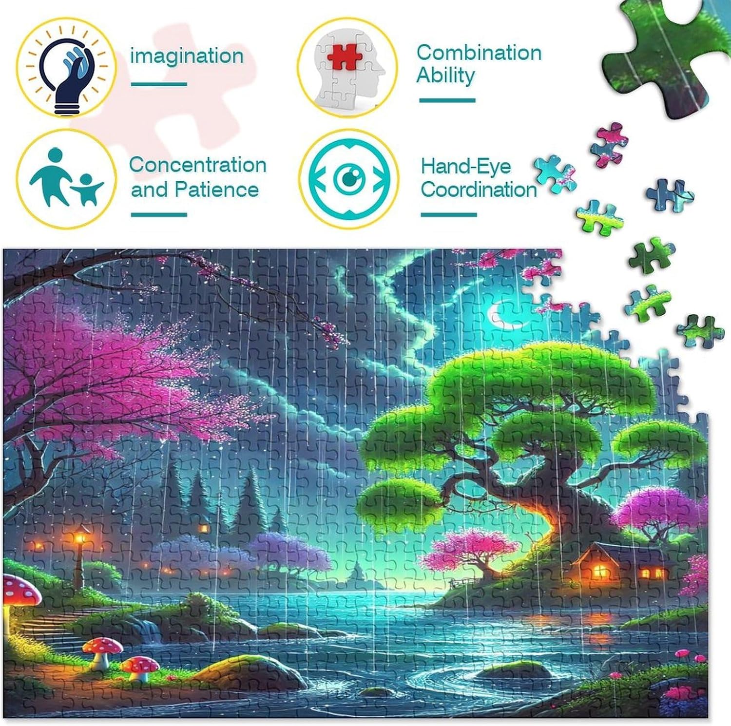 🌸GIOCHI PER ADULTI: una sfida emozionante da regalare a tutti li appassionati di puzzle e amanti dell'arte, ideale per uomo, donna o ragazzi; i puzzle aiutano a esercitare la memoria, migliorano la concentrazione e stimolano l'intuizione 🌸QUALITÀ PREMIUM: il massimo del divertimento con prodotti di altissima qualità in termini di materiali, motivi e design; realizzati in legno tagliati con fustelle fatte a mano, per un risultato impeccabile 🌸Buon regalo: il puzzle finito misura 38x26cm/1000pcs una volta completato. I migliori regali per ragazzi e ragazze dai 14 anni in su per compleanni o festività (Natale, Halloween, Ringraziamento, ecc.) 🌸Concediti una piacevole pausa relax! La nostra linea di puzzle da Fantasy Night Scene 1000 pezzi è il regalo perfetto per chi ama ritagliarsi un momento di svago e di relax mettendo alla prova le proprie abilità logiche e di concentrazione 🌸I nostri Puzzle ti offrono un'ampia scelta d'immagini capace di soddisfare i gusti di tutti: grazie alla qualità dei materiali riciclati, la robustezza e resistenza dei singoli pezzi insieme alla brillantezza dei colori, ti garantiamo un risultato impeccabile e privo di riflessi