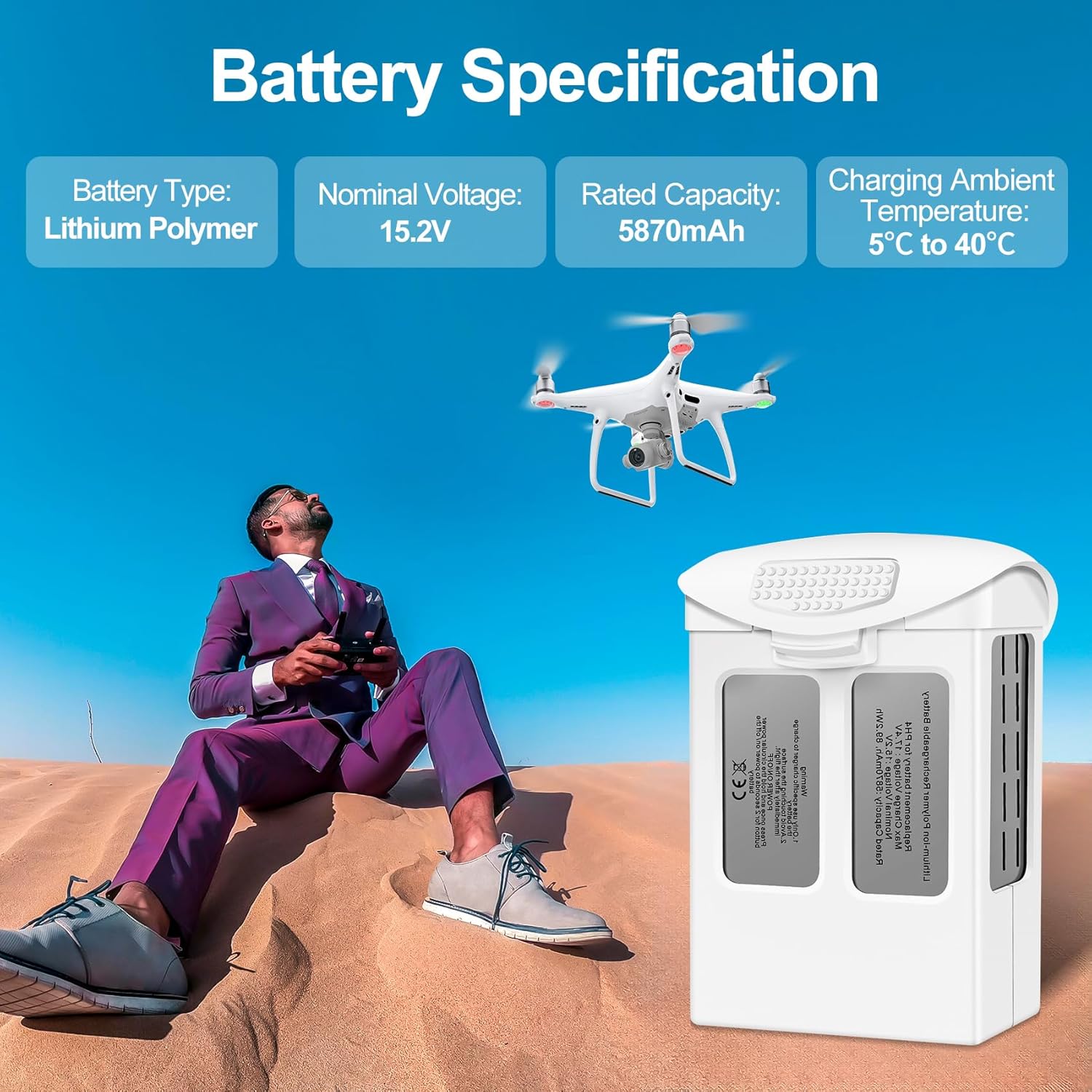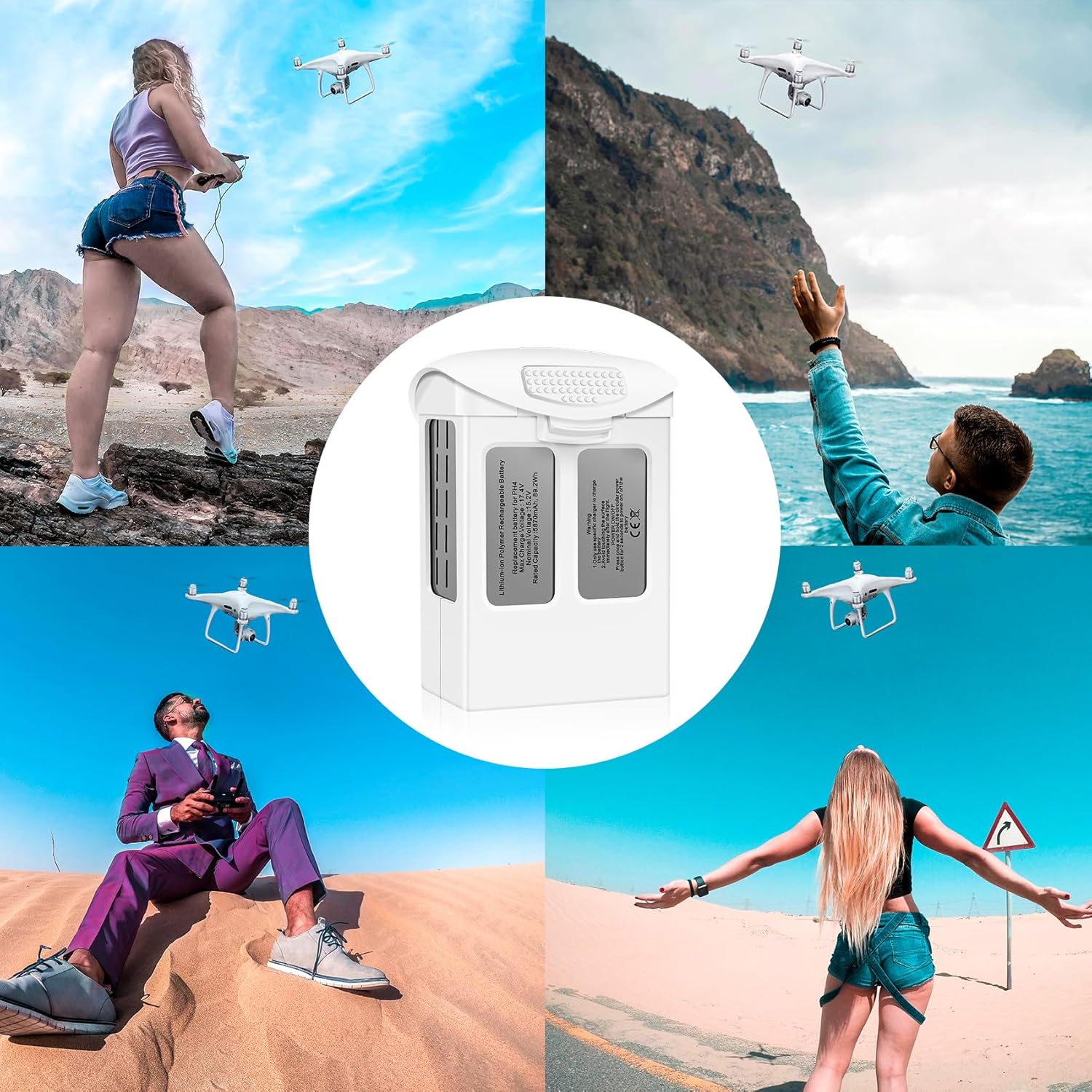 Elevata compatibilità: la batteria Phantom 4 è perfettamente compatibile con DJI Phantom 4, DJI Phantom 4 Pro, DJI Phantom 4 Pro Plus, DJI Phantom 4 Advanced, DJI Phantom 4 Pro V2.0, DJI Phantom 4 RTK e caricabatterie originale Phantom 4. E si collega perfettamente con l'app DJI GO 4, mostra lo stato della batteria in tempo reale. Batteria di volo intelligente ad alta capacità: batteria di ricambio Fantasyo Phantom 4 con una capacità di 5870 mAh e una tensione di 15,2 V. Supporta un massimo di 30 minuti di tempo di volo, a seconda di diversi fattori come velocità, tempo ventoso, temperatura, tempo di ricarica e così via. Nota: la batteria del Phantom 4 Pro è precaricata al 30%, si prega di caricare completamente prima del primo utilizzo e fare più volte la prova. Si prega di raffreddarlo a sufficienza prima di ricaricarlo nuovamente e caricarlo meglio con il caricabatterie OEM per evitare problemi. Connessione APP: questa batteria per droni può essere collegata all'app per droni, che può visualizzare lo stato della batteria, compreso il tempo di utilizzo, il tempo rimanente e altre informazioni. Quando la carica della batteria è inferiore al 30%, è possibile impostare un allarme per ricordare agli utenti di sostituire la batteria in tempo. Contenuto della confezione: 1 batteria di ricambio per DJI Phantom 4. Offriamo un servizio clienti 24 ore su 24, e una politica di restituzione gratuita di 30 giorni.